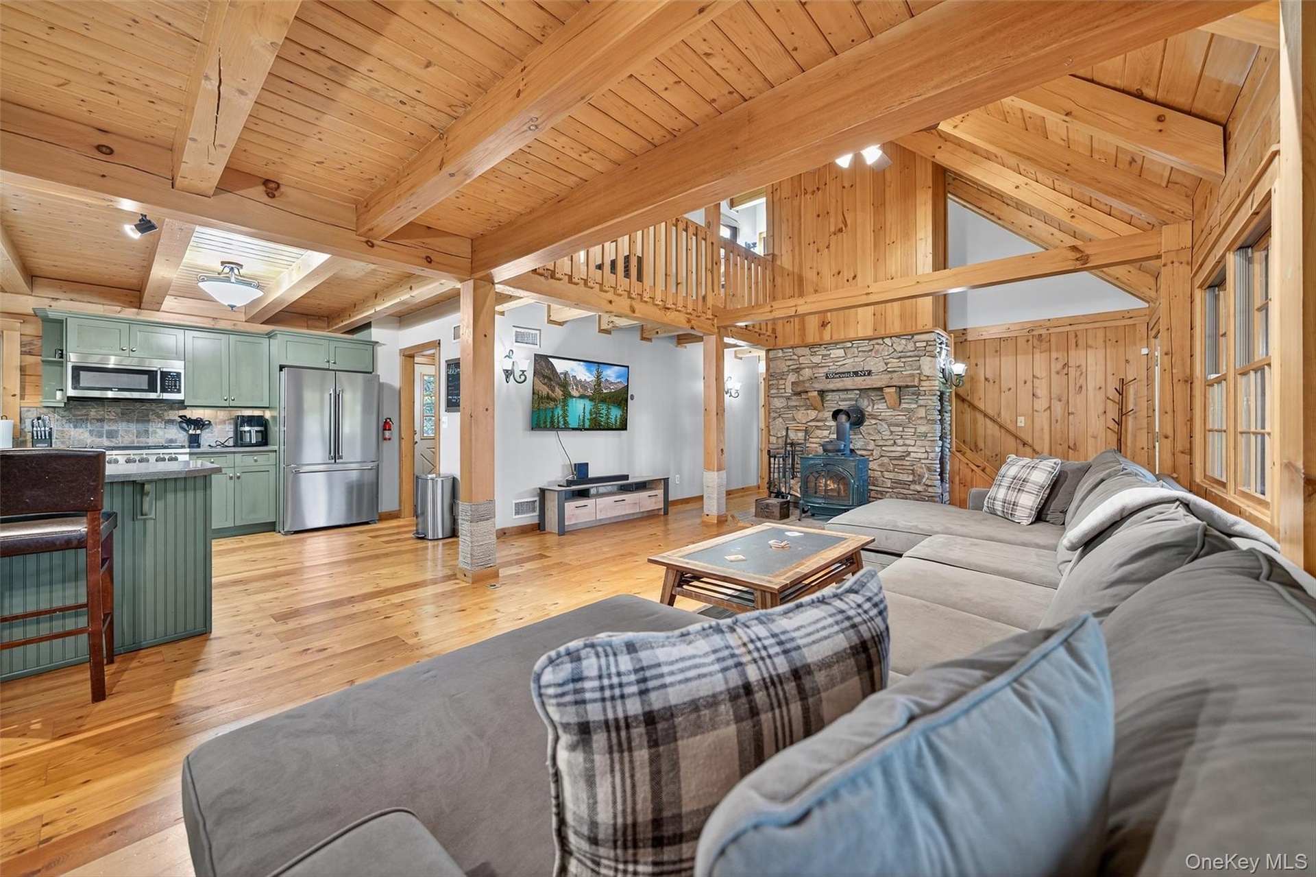Experience the best of Hudson Valley living in this extraordinary, privacy-forward property. Set on 8 wooded acres, this custom-built log cabin designed by Fred Krol of Log Chip Homes blends rustic charm with modern convenience, delivering a lifestyle that discerning buyers seek and investors value.