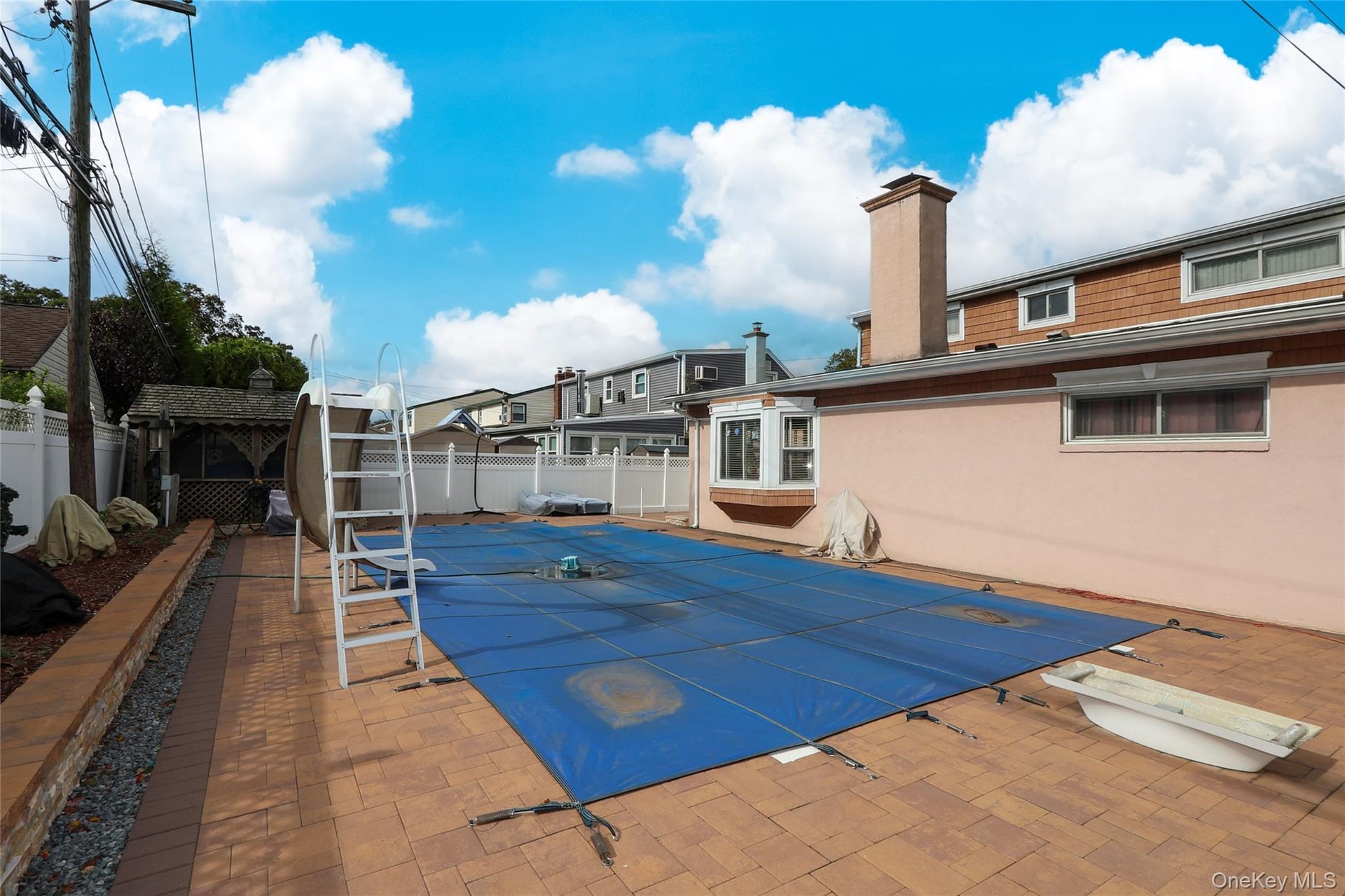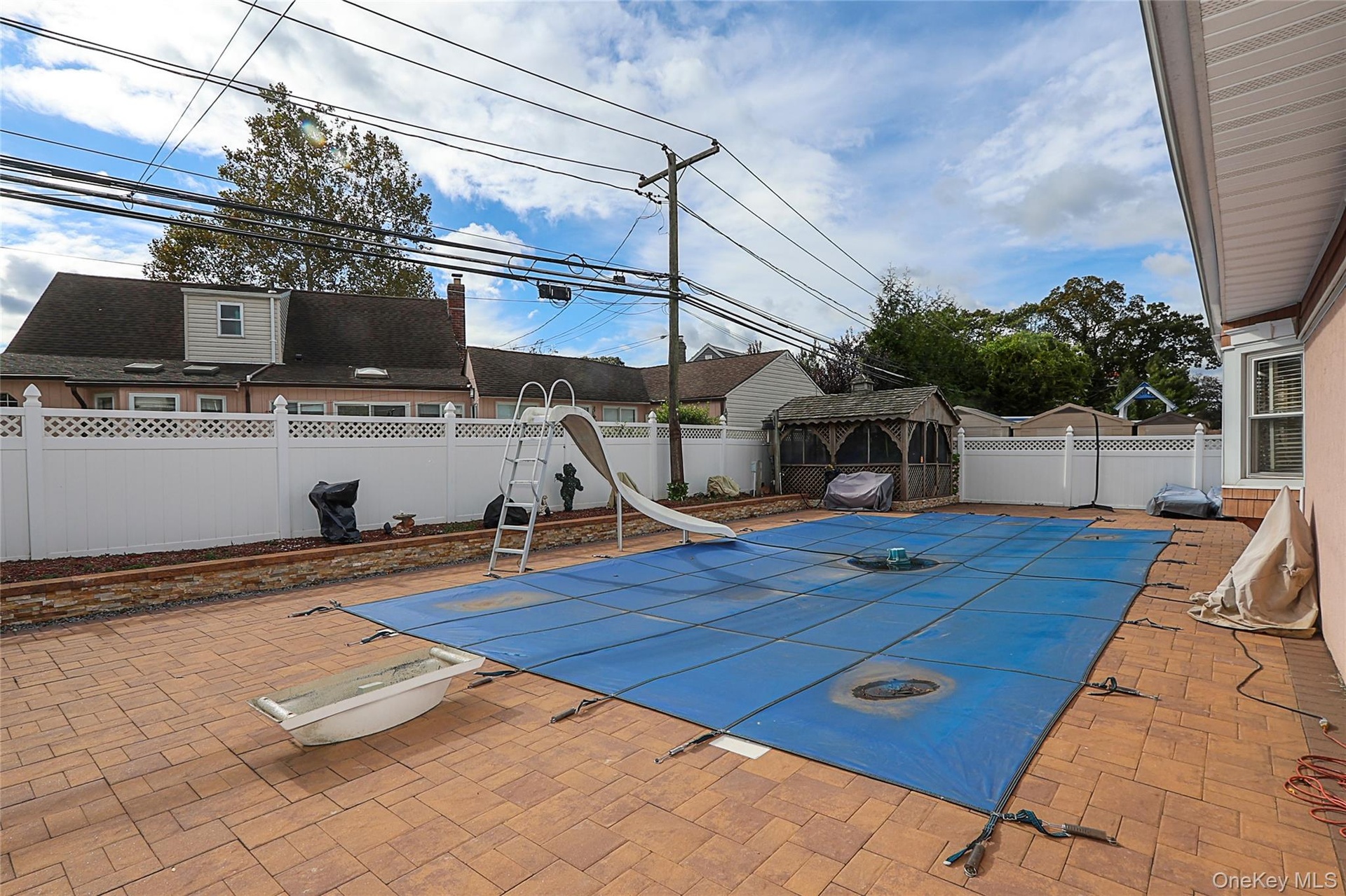 Welcome to 993 Ferngate Drive in Franklin Square , the first time on the market in almost 50 years! This custom designed expanded cape located mid block on a quiet street has beautiful curb & yard appeal and unique features. Set on a 60 x 100 lot, this spacious three bedroom, two full bathroom residence features two extensions, an inviting front porch, and gorgeous pavers and stonework throughout the property. Turf front lawn is maintenance free! Enjoy outdoor living with a large in-ground solar heated pool complete with diving board and slide, 2 year old pool filter, new privacy fence and a charming gazebo—perfect for entertaining. There is also an electronic awning, shed and sun visor in this custom designed fenced in yard. Open concept kitchen with stainless appliances, large family room, finished basement. This home has large rooms, many closets and a lot of storage. 8 year old roof. Updated 200AMP electric, young hot water heater, boiler and CAC unit. Forced heat and a thoughtfully designed layout for year-round comfort. Attached garage with new custom door. Sprinkler/ alarm. Conveniently located near restaurants, shops and parkways. Motivated seller.