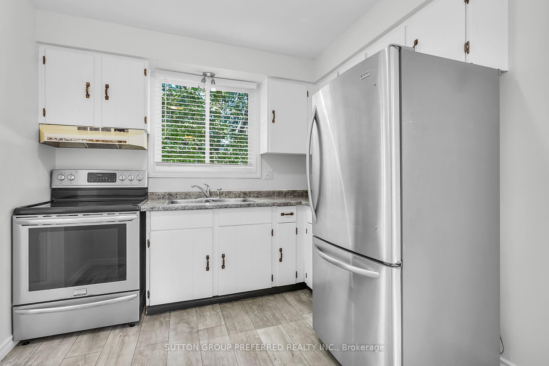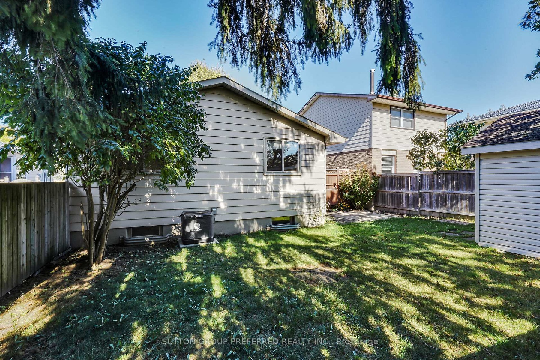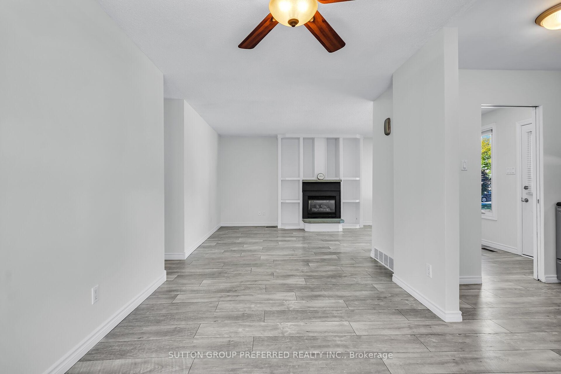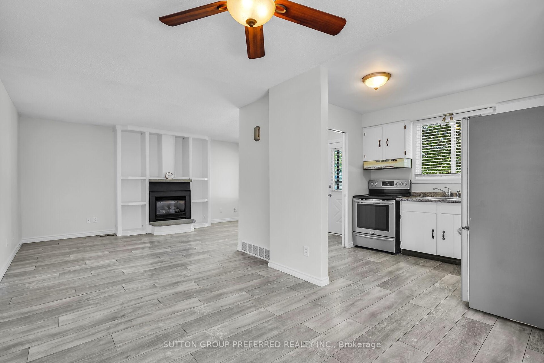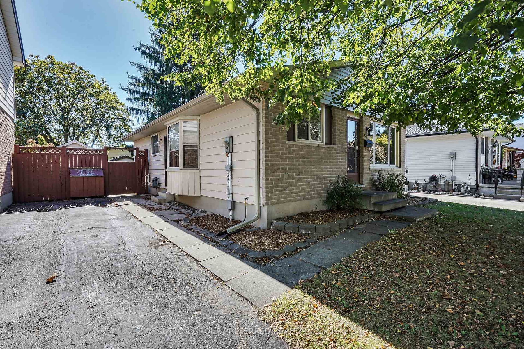 Welcome to this charming 3 bedroom, 1 bath bungalow nestled on a quiet court location in family friendly Ronleigh Village in East London. Step inside to a partially open concept main floor, freshly painted, where wide vinyl plank laminate flooring flows throughout. The bright living room features a cozy gas fireplace with custom built-in shelving, creating the perfect gathering spot. The white kitchen comes with two appliances, while the roomy dining area, with side door entrance, offers a bay window that fills the space with natural light. Three well-sized bedrooms and a 4 piece bathroom complete the main level, making this home both practical and comfortable. Enjoy summer evenings on the patio while the kids and pets play in the fully fenced yard. A 12 x 9 vinyl sided shed with concrete floor provides ample storage for garden tools and outdoor equipment. The unspoiled lower level offers endless possibilities for a future living space as there is a side door entry. Notable updates include: windows on main floor (2014), shingles (2014), soffits and fascia (2020). This home is ideally located close to schools, shopping, bus routes, and offers quick access to Hwy 401, a perfect fit for commuters, families, downsizers or investors. Do not miss this opportunity to settle into a well-kept home in a welcoming community. Some photos are virtually staged.