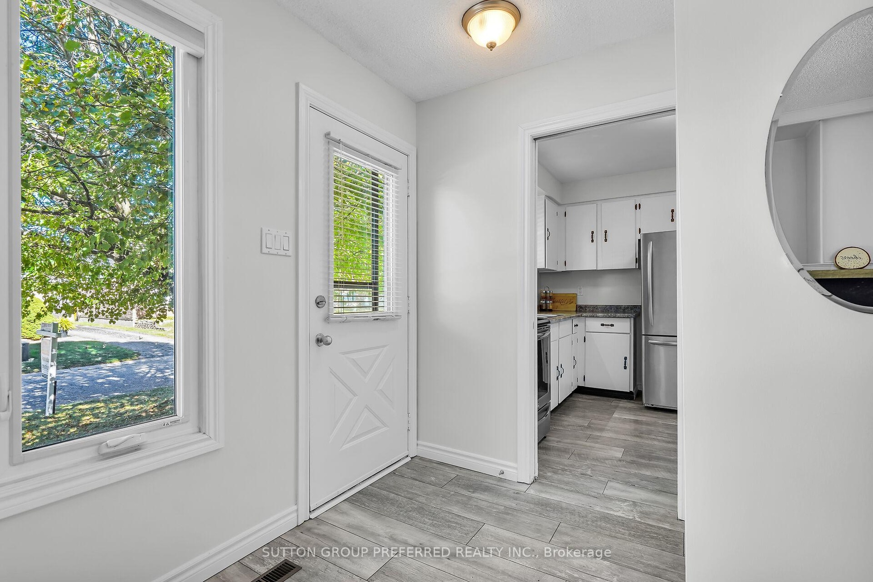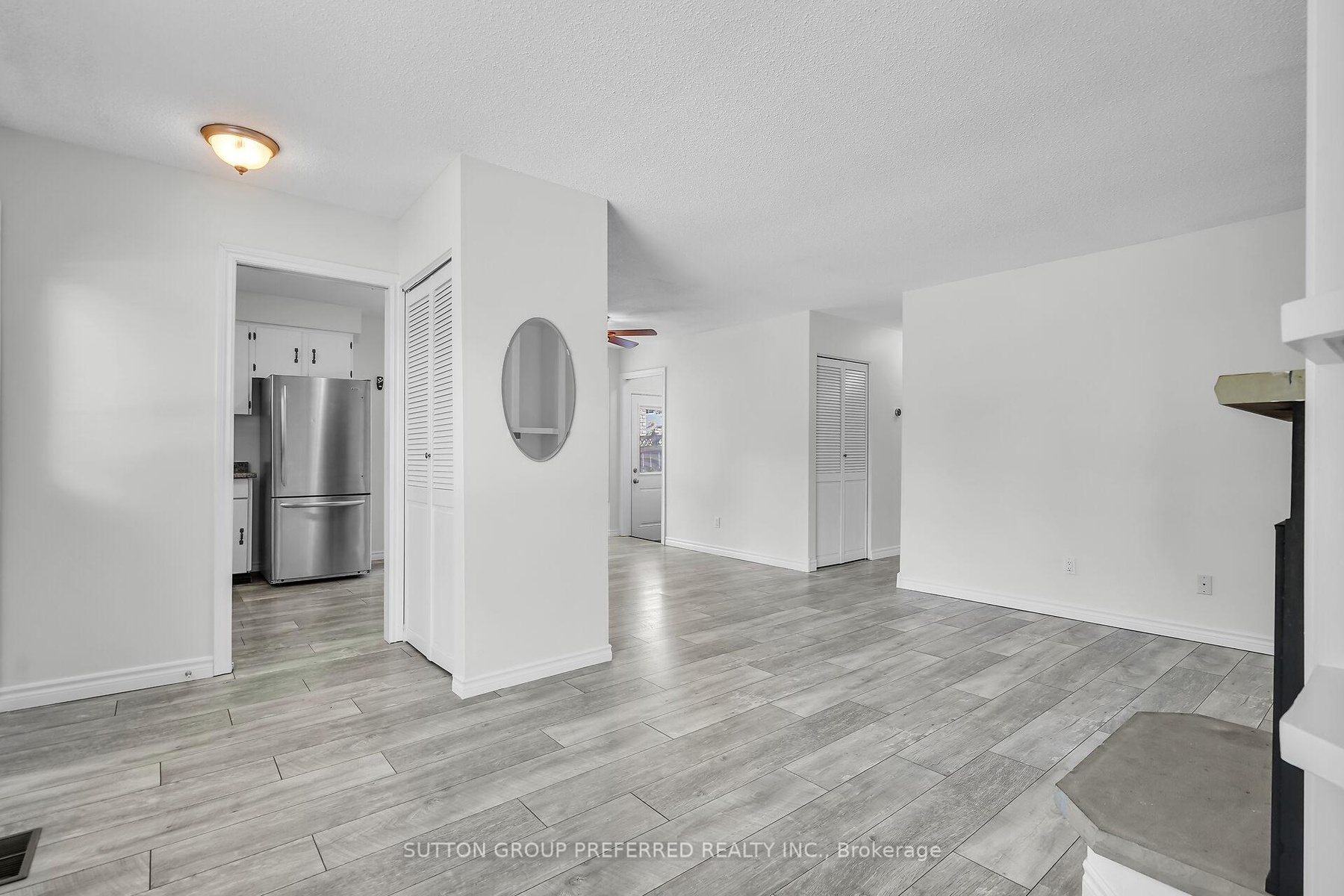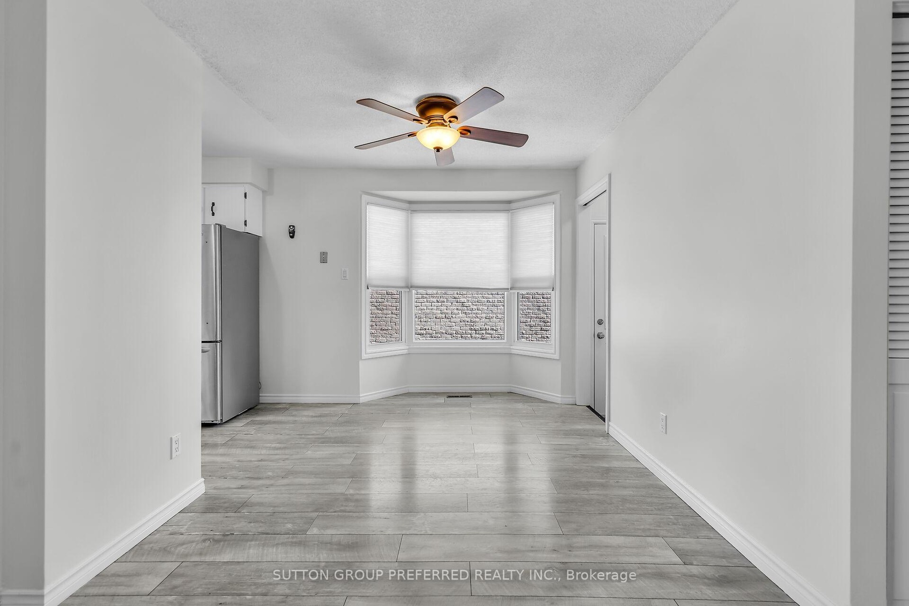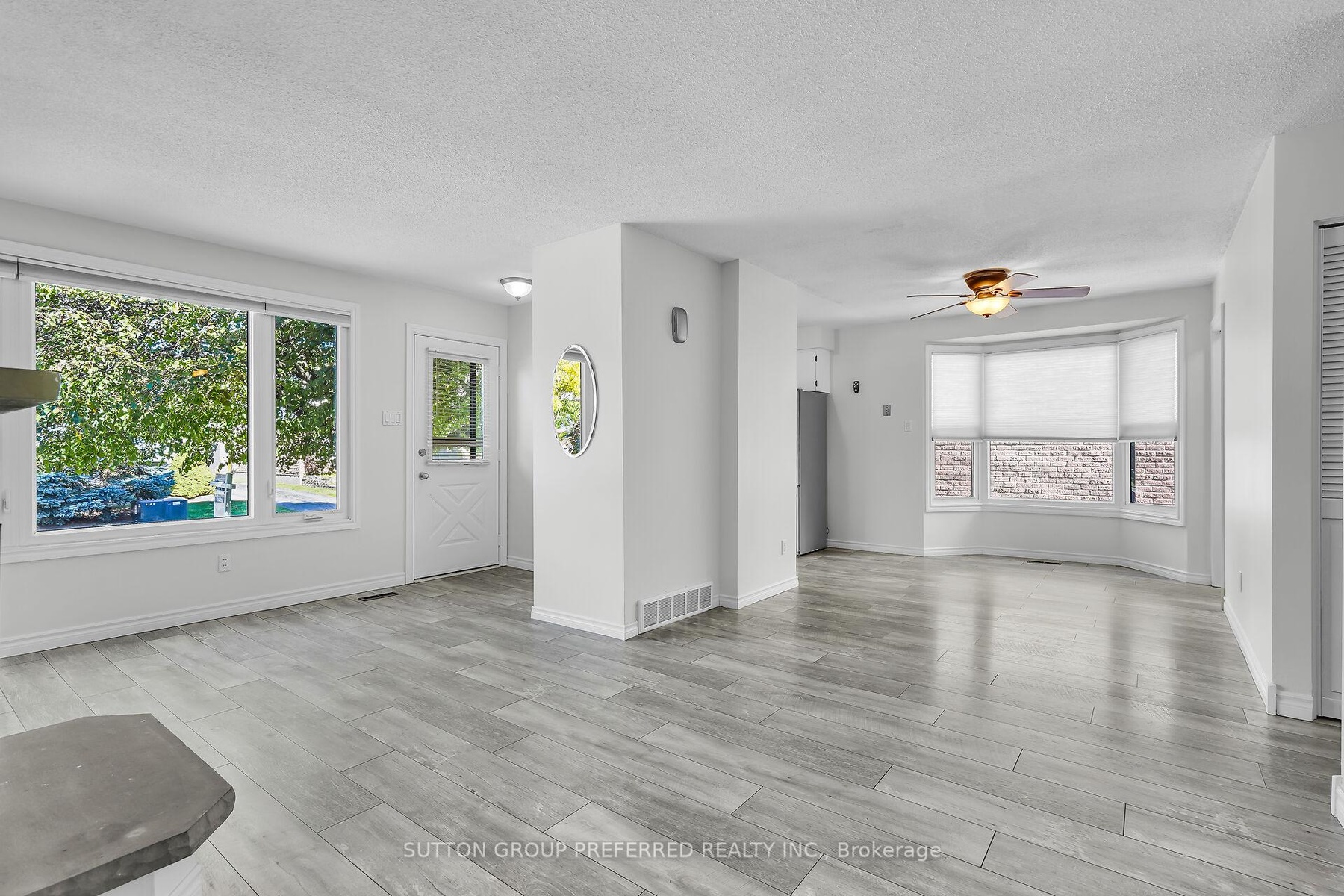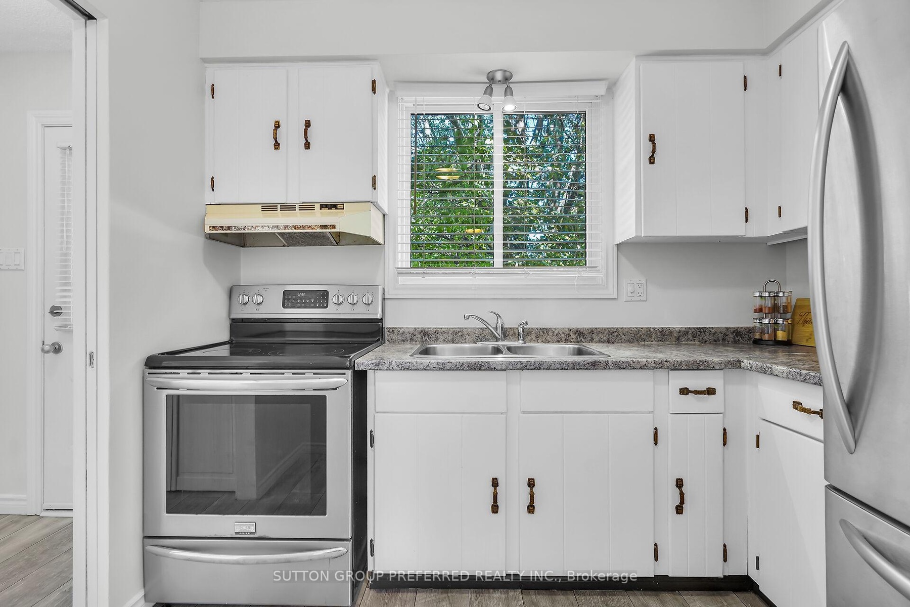 Welcome to this charming 3 bedroom, 1 bath bungalow nestled on a quiet court location in family friendly Ronleigh Village in East London. Step inside to a partially open concept main floor, freshly painted, where wide vinyl plank laminate flooring flows throughout. The bright living room features a cozy gas fireplace with custom built-in shelving, creating the perfect gathering spot. The white kitchen comes with two appliances, while the roomy dining area, with side door entrance, offers a bay window that fills the space with natural light. Three well-sized bedrooms and a 4 piece bathroom complete the main level, making this home both practical and comfortable. Enjoy summer evenings on the patio while the kids and pets play in the fully fenced yard. A 12 x 9 vinyl sided shed with concrete floor provides ample storage for garden tools and outdoor equipment. The unspoiled lower level offers endless possibilities for a future living space as there is a side door entry. Notable updates include: windows on main floor (2014), shingles (2014), soffits and fascia (2020). This home is ideally located close to schools, shopping, bus routes, and offers quick access to Hwy 401, a perfect fit for commuters, families, downsizers or investors. Do not miss this opportunity to settle into a well-kept home in a welcoming community. Some photos are virtually staged.