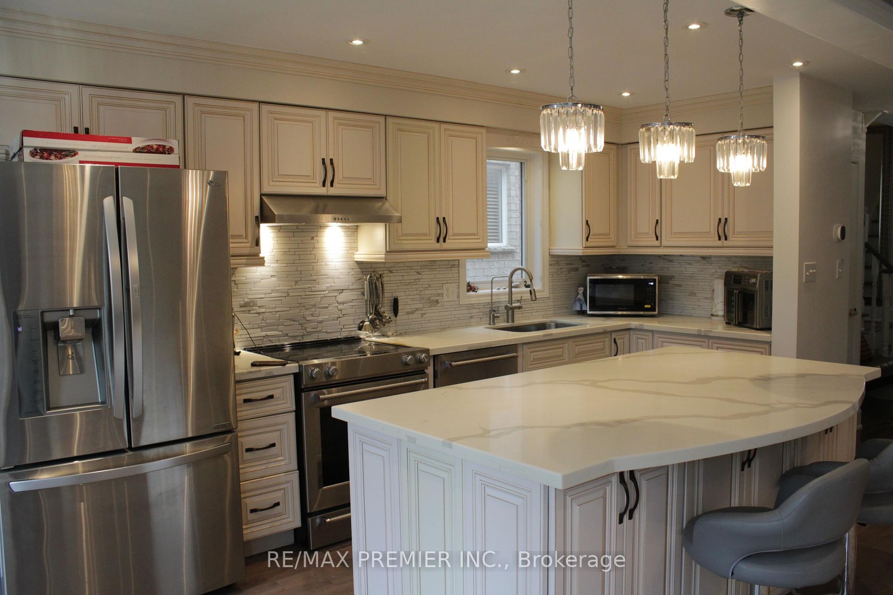 Welcome to this stunning semi-detached home offering approximately 1,581 sq. ft. main FL. Enjoy a modern, open-concept main floor featuring a custom front door with glass inserts and a digital keyless lock, hardwood floors, and pot lights throughout. The bright kitchen includes a Centre island, stainless steel appliances, backsplash, granite countertops, and an eat-in breakfast area with a walk-out to a fully fenced, landscaped backyard-perfect for entertaining. Freshly painted throughout (main and second floors).Additional highlights include an extended interlocked driveway, proximity to transit, Maple GO Station, schools, parks, and just minutes to Vaughan Mills, Canada's Wonderland, Highway 400,and shopping plazas.Move-in ready and available for rent now!