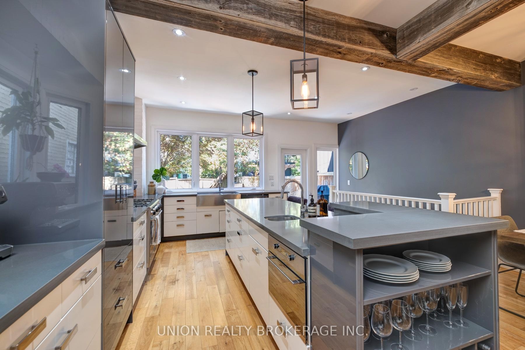 A rare find in the Beach! This large, detached 3-storey home offers exceptional space with 4+1 bedrooms, 4 bathrooms, a sunroom and a perfect blend of timeless character and modern luxury throughout. Light oak floors, reclaimed wood beams, and custom trim bring warmth and style throughout. The open-concept main floor features a chef's kitchen with stainless steel appliances, wine fridge, and a 10.5-ft island with built-in wine rack, plus a walkout to a brand-new deck overlooking a sunny, private west-facing yard, perfect for entertaining. The lower level impresses with 7.5-ft ceilings, a flexible layout ideal for a gym, media room, or guest suite, and a large, beautifully organized storage area (a rare find in the Beach) easily converted back to a bedroom or office. Upstairs offers 3 generous bedrooms and a full laundry room, while the third-floor retreat boasts skylights, a massive walk-in closet, and a spa-like ensuite with serene treetop views. Steps to Queen, Kew Beach PS, parks & transit. City approval for front pad parking - homes of this size and quality rarely come up in the Beach, so don't wait to see it! OPEN HOUSE SAT/ SUN OCT 18/19, 2-4pm