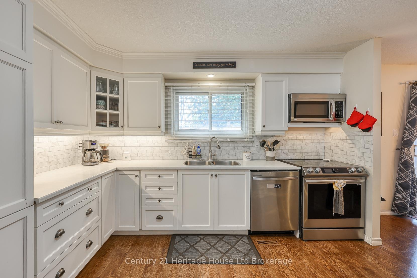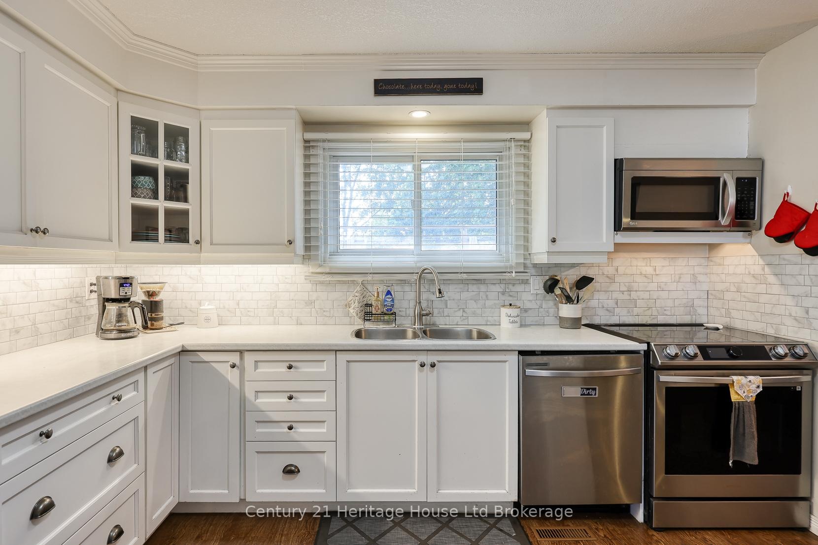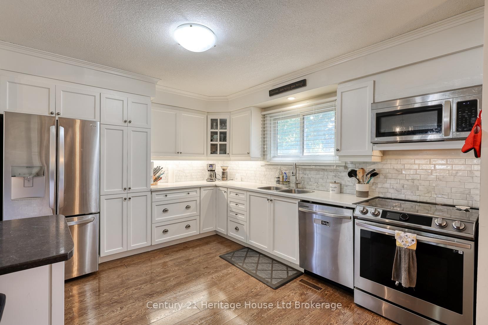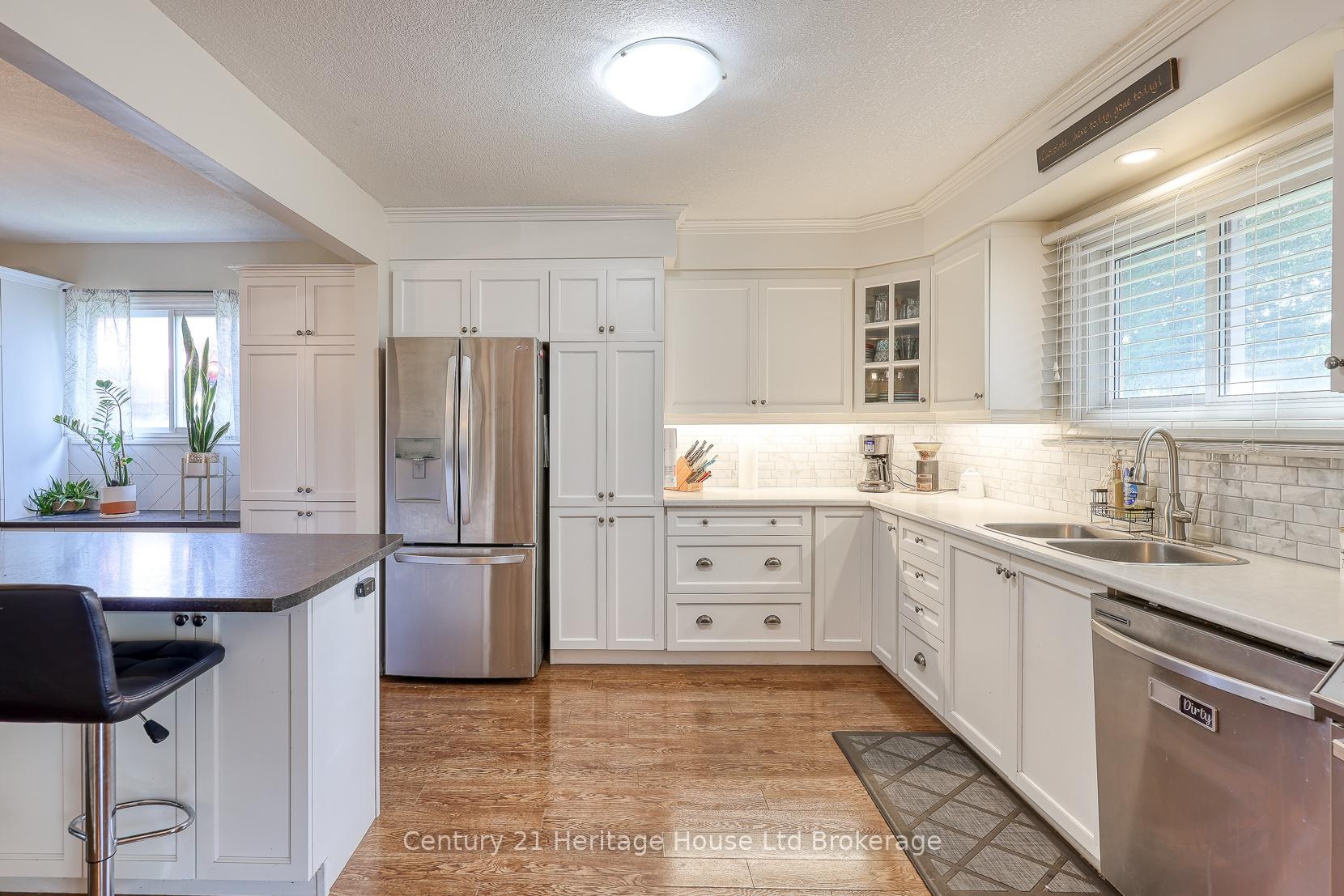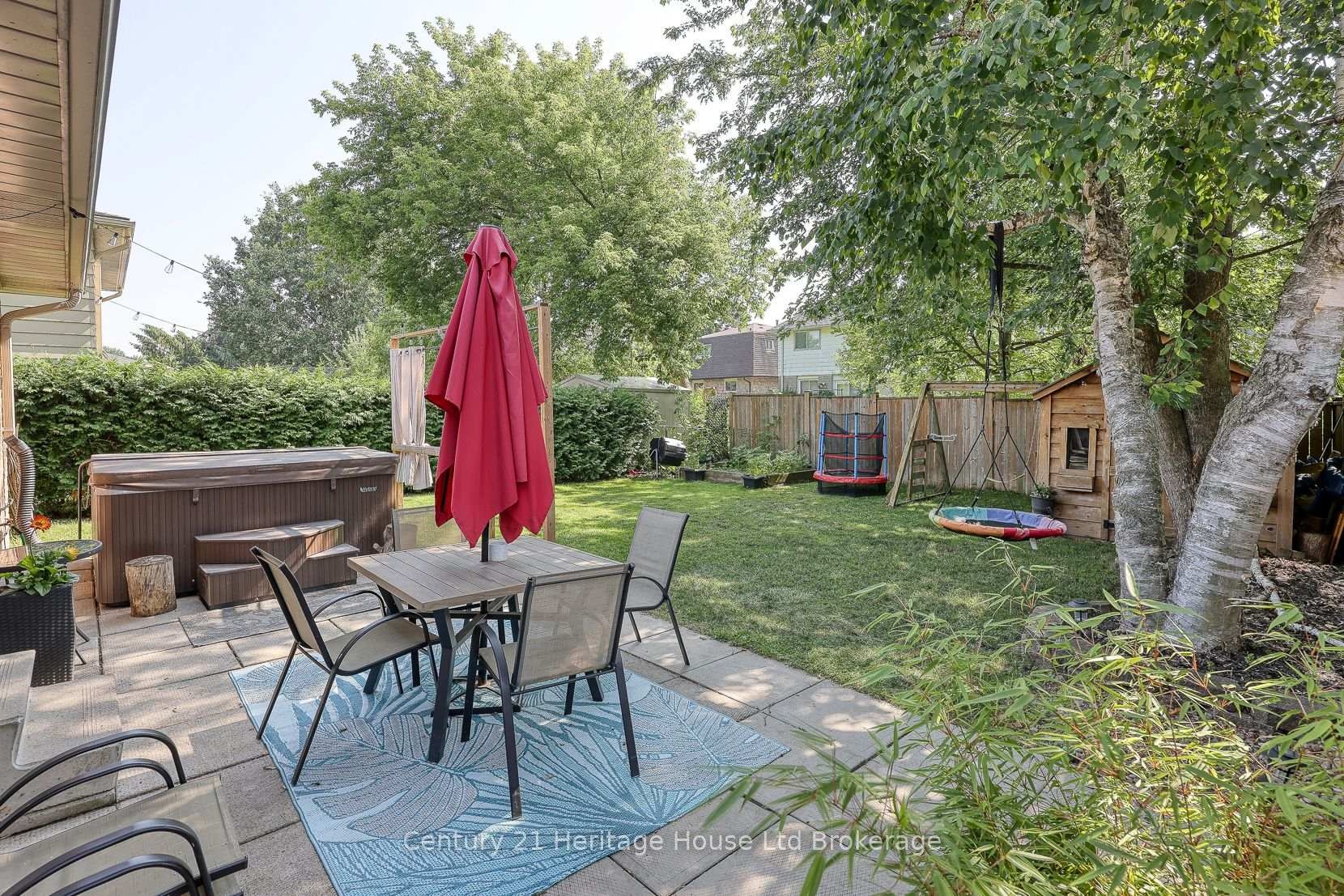 You don't want to miss this beauty in South East London! Offering tremendous value, this lovely two storey home sits on a quiet crescent with easy access to parks, splash pads, hiking trails, Westminster Ponds, shopping, and the401, making it an ideal location for families and commuters alike. Step inside to a bright and welcoming foyer with convenient access to the attached garage. The spacious living room features a large bay window that floods the space with natural light, while the open-concept layout flows beautifully into the updated kitchen, complete with white cabinetry, a large island, stainless steel appliances, and ample cupboard and counter space. The kitchen opens to a generous dining area with sliding doors leading to a fully fenced backyard featuring a patio, perfect for relaxing or entertaining. Upstairs, you'll find four large bedrooms and a renovated full bathroom, offering plenty of room for a growing family. The lower level boasts a spacious recreation room ideal for movie nights or a play area, plus a bonus flex room perfect for a home office, gym, or guest space. Additional highlights include a double driveway, newer roof (2019), central air (2018), and stylish updates throughout. This home truly checks all the boxes and is a wonderful place to call home!