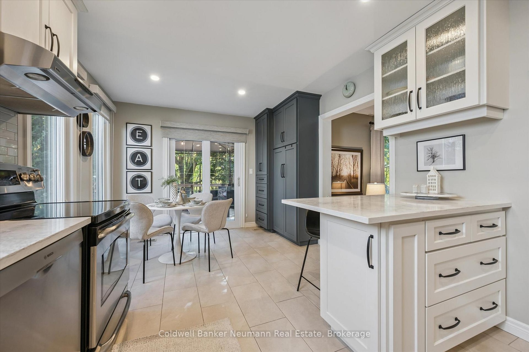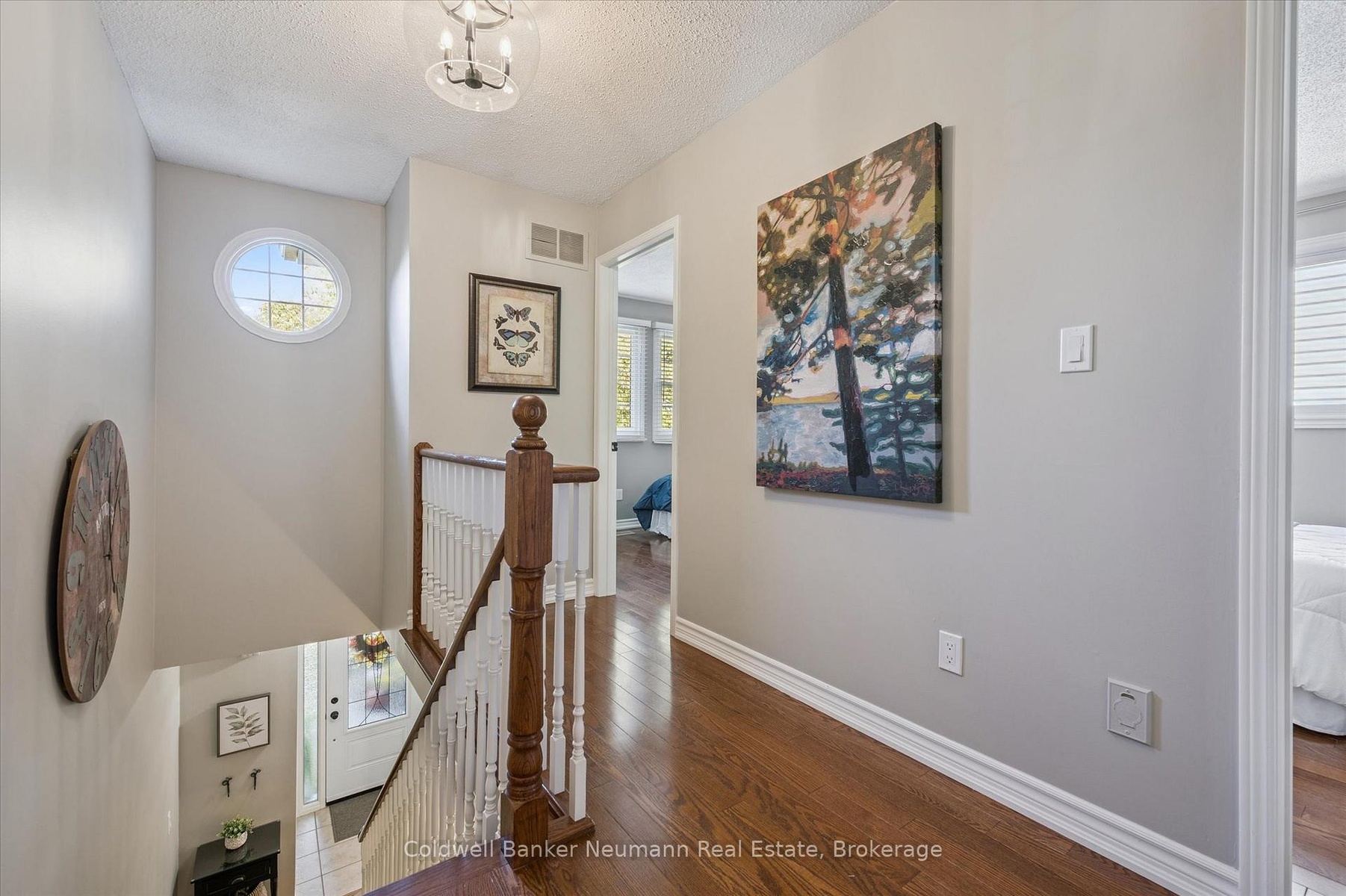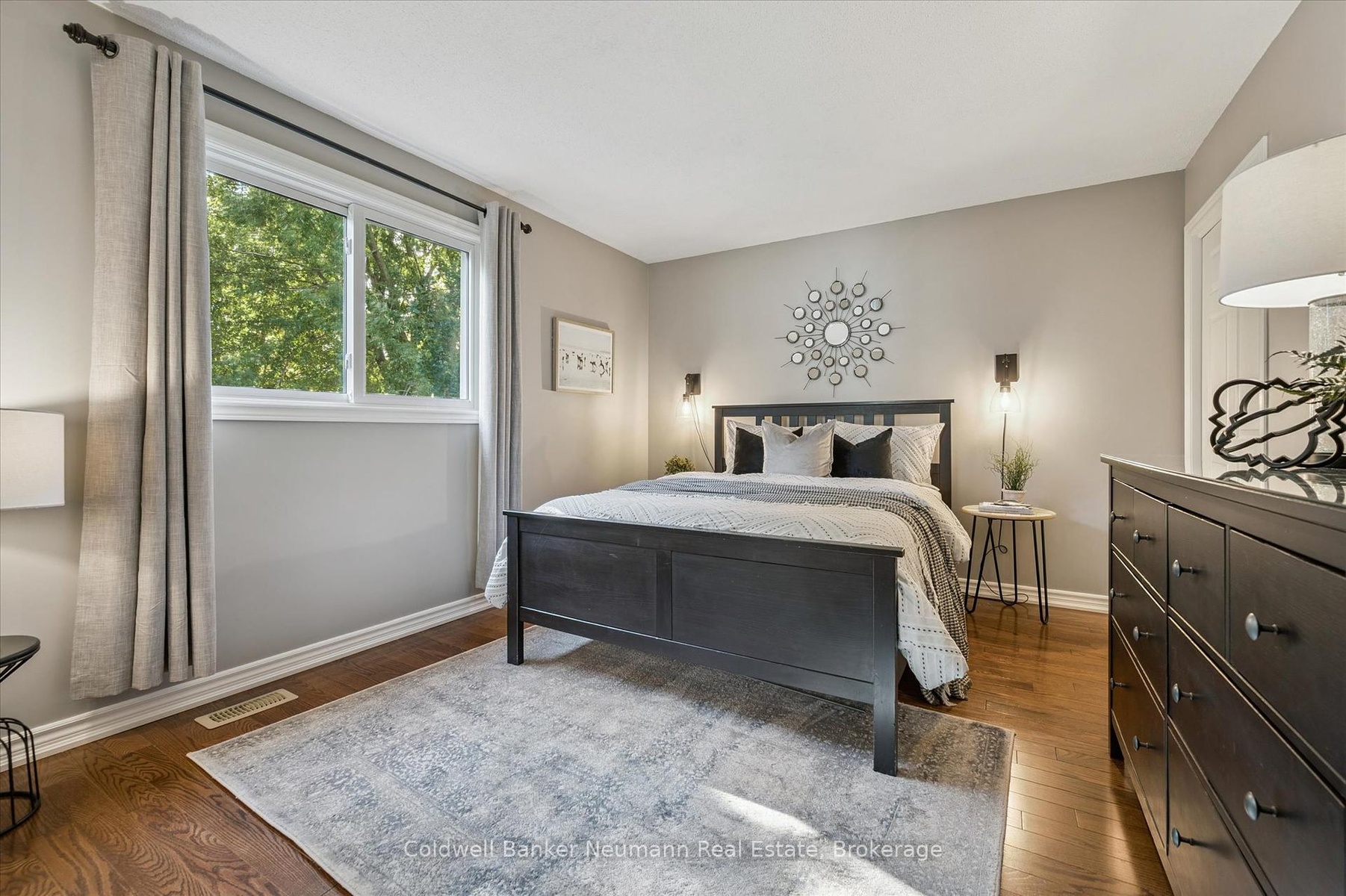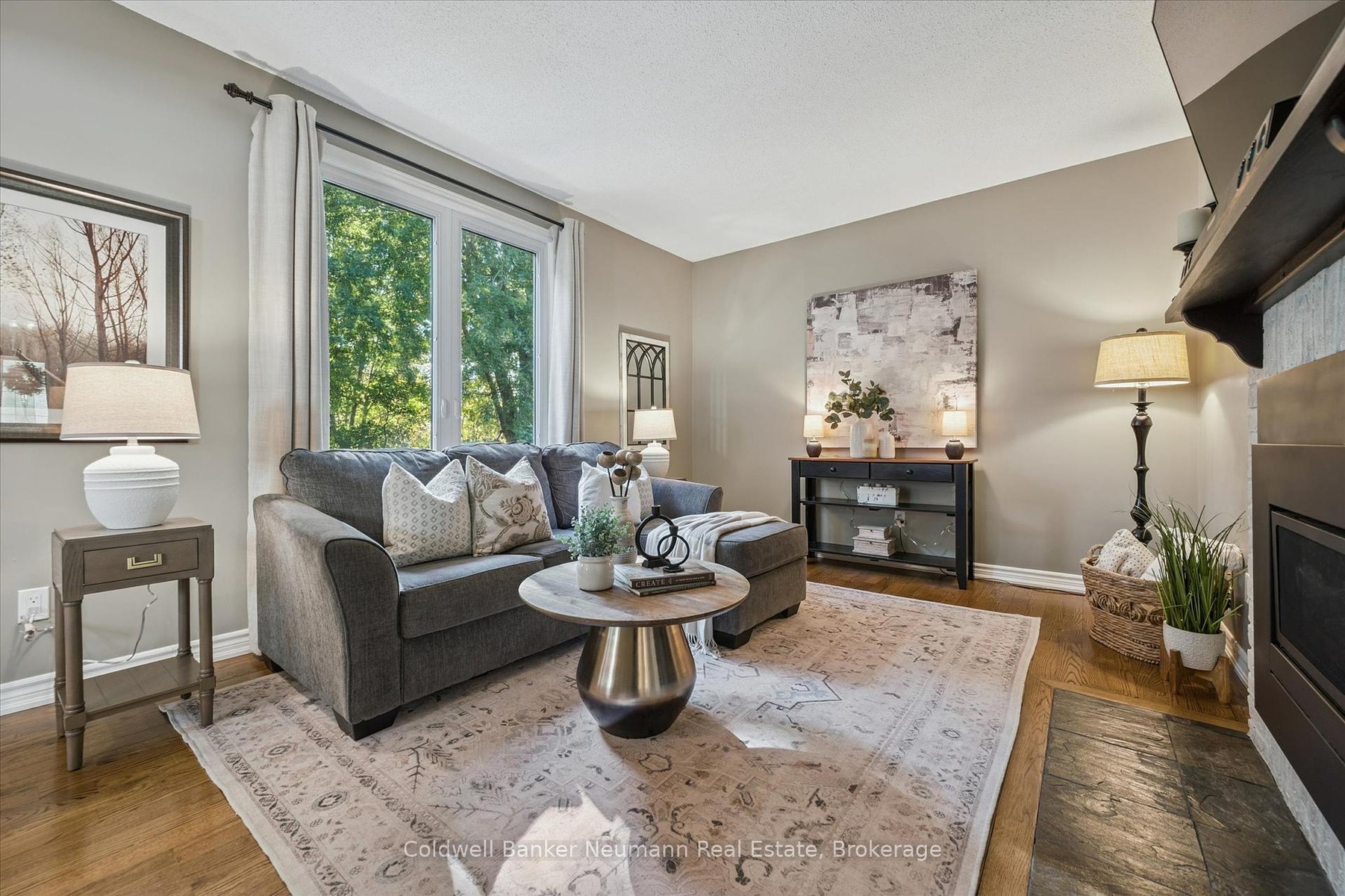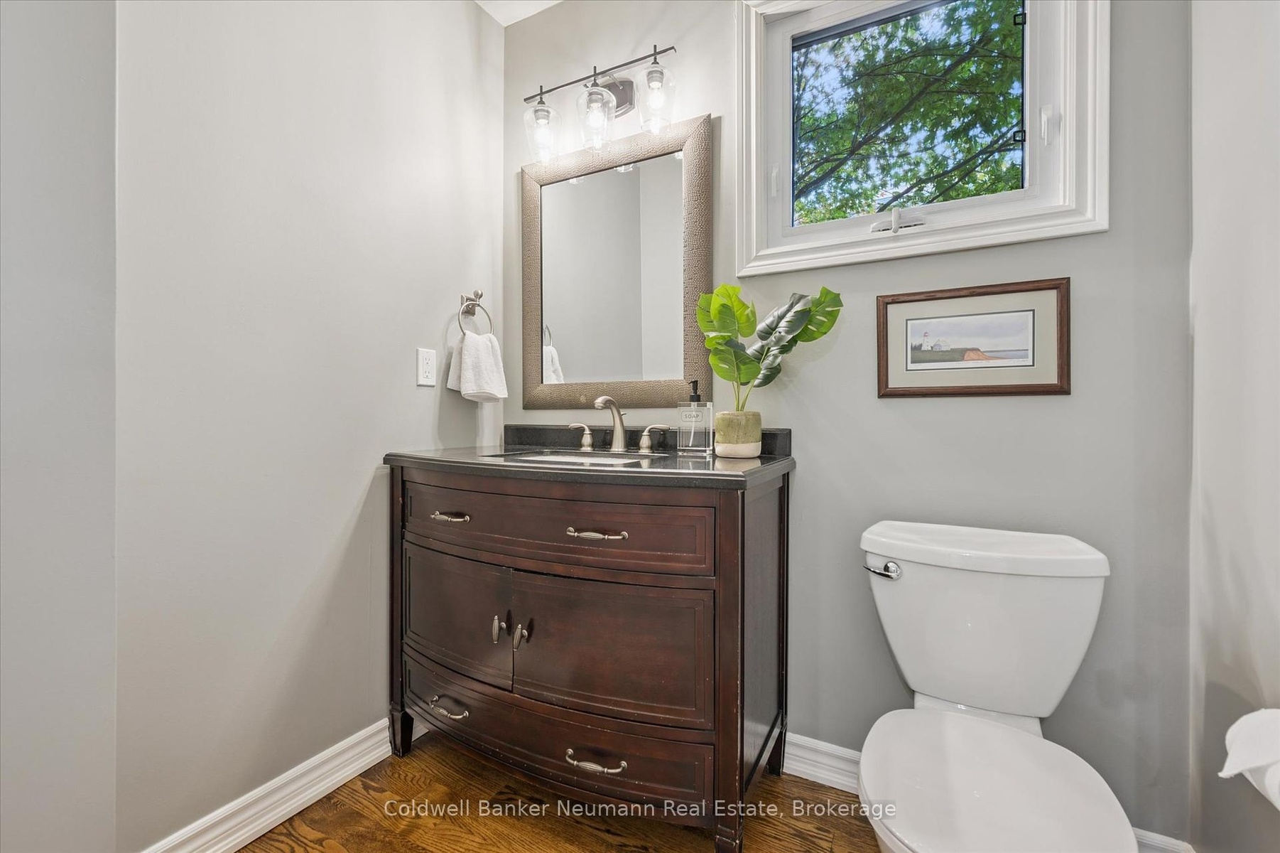 Exceptional Quality Family Home Backing Onto Conservation! Prepare to be impressed by this completely updated 2-storey, 3-bedroom family home, showcasing outstanding craftsmanship and elevated finishes throughout. Set against the backdrop of a tranquil treed conservation area with creek access, this home offers the perfect blend of luxury, comfort, and nature. Step inside to find a carpet-free interior with oak hardwood flooring, a bright, airy layout, and a gorgeous kitchen featuring quartz countertops, custom cabinetry, sleek fixtures, and quality appliances. The formal living and dining rooms provide elegant entertaining space, while the cozy family room with a new gas fireplace insert is perfect for relaxing. Upstairs, you'll find three generous bedrooms, including a spacious primary retreat with a walk-in closet and an ensuite complete with a separate shower and soaker tub. The finished basement adds even more value, offering a large rec room, versatile flex space for a home office or den, a 2-piece bath, and abundant storage. Enjoy outdoor living on the private deck surrounded by mature trees and perennials in your beautifully landscaped yard. This is a home where every detail has been thoughtfully upgraded with lasting quality in mind. Just move in and enjoy! (Notable dates: kitchen 2021, shingles 2021, furnace and AC 2022, gas fireplace 2023....and more, just ask your Realtor)