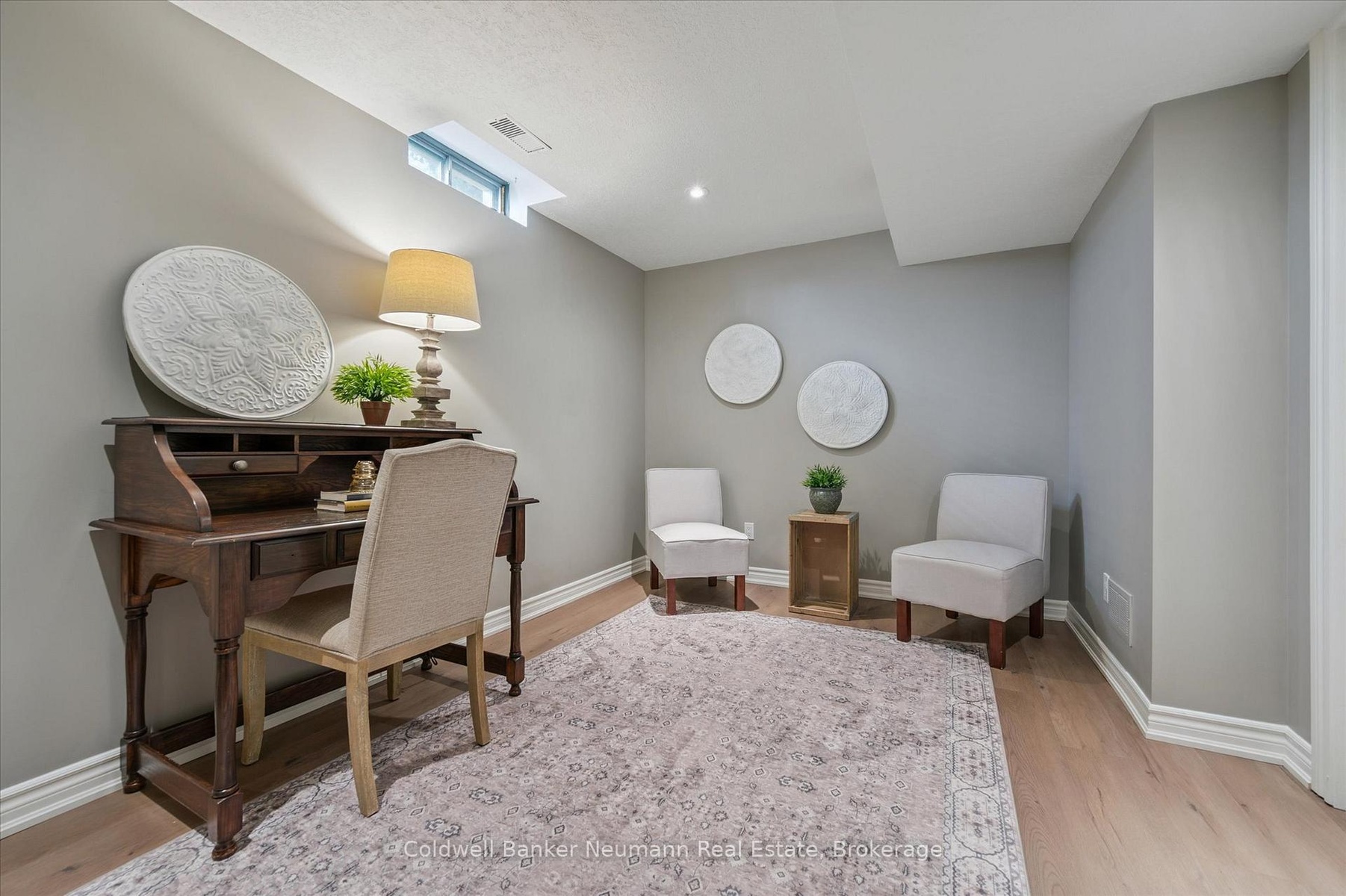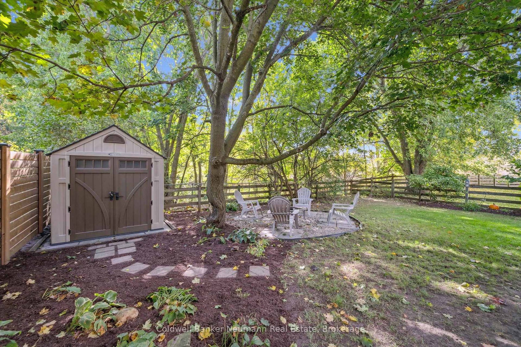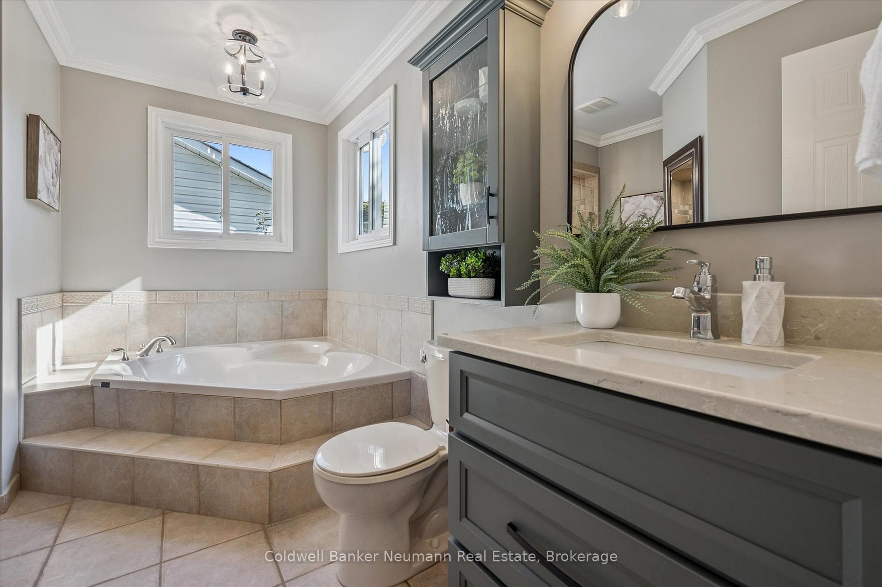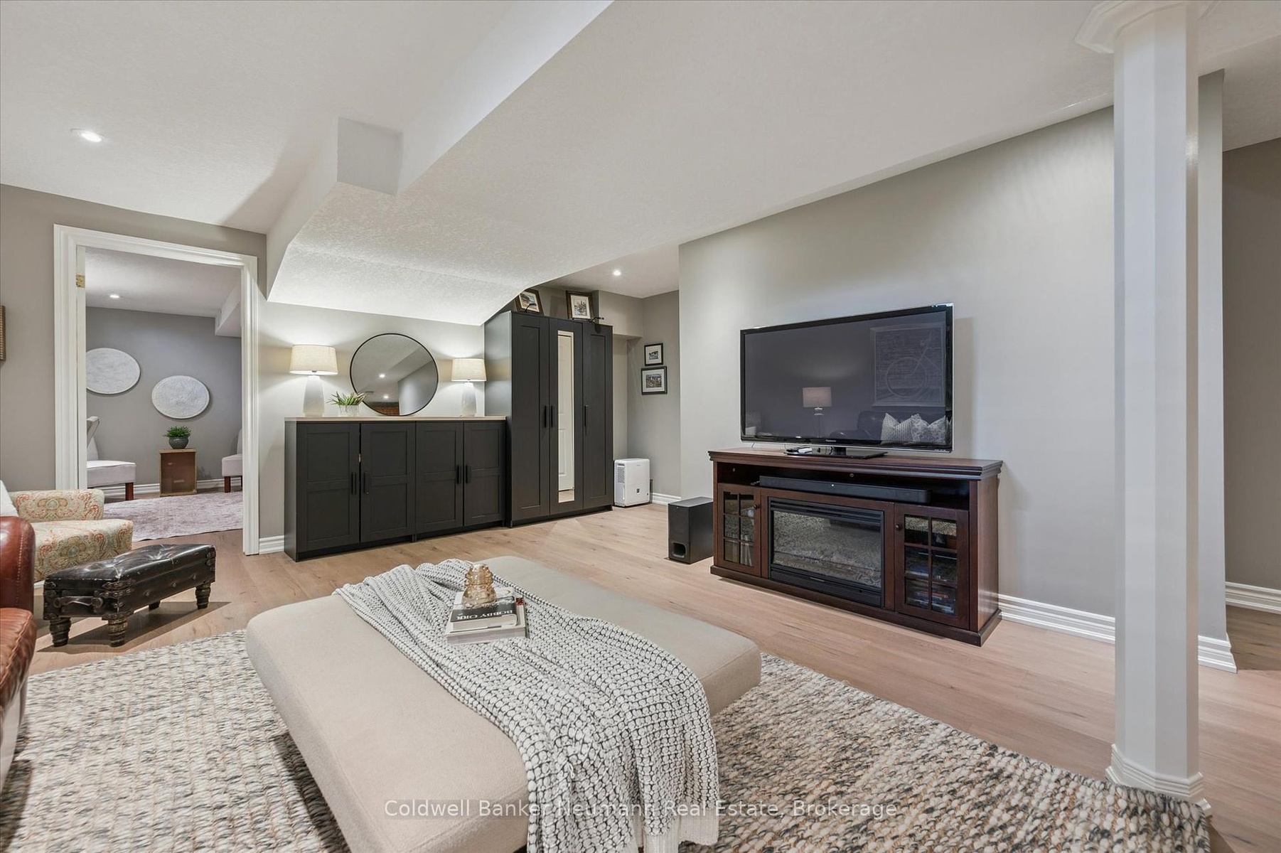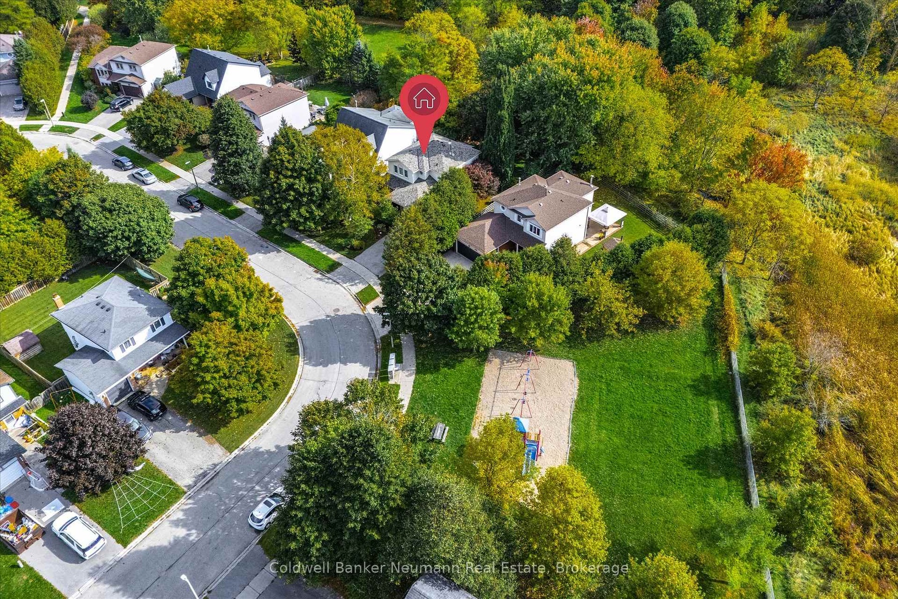 Exceptional Quality Family Home Backing Onto Conservation! Prepare to be impressed by this completely updated 2-storey, 3-bedroom family home, showcasing outstanding craftsmanship and elevated finishes throughout. Set against the backdrop of a tranquil treed conservation area with creek access, this home offers the perfect blend of luxury, comfort, and nature. Step inside to find a carpet-free interior with oak hardwood flooring, a bright, airy layout, and a gorgeous kitchen featuring quartz countertops, custom cabinetry, sleek fixtures, and quality appliances. The formal living and dining rooms provide elegant entertaining space, while the cozy family room with a new gas fireplace insert is perfect for relaxing. Upstairs, you'll find three generous bedrooms, including a spacious primary retreat with a walk-in closet and an ensuite complete with a separate shower and soaker tub. The finished basement adds even more value, offering a large rec room, versatile flex space for a home office or den, a 2-piece bath, and abundant storage. Enjoy outdoor living on the private deck surrounded by mature trees and perennials in your beautifully landscaped yard. This is a home where every detail has been thoughtfully upgraded with lasting quality in mind. Just move in and enjoy! (Notable dates: kitchen 2021, shingles 2021, furnace and AC 2022, gas fireplace 2023....and more, just ask your Realtor)