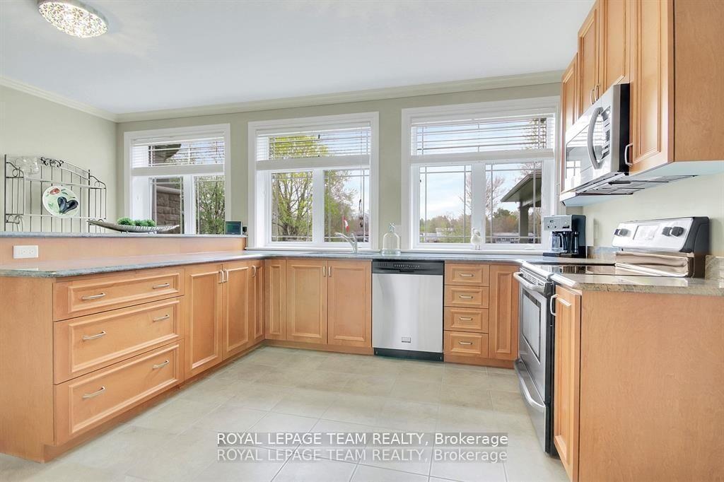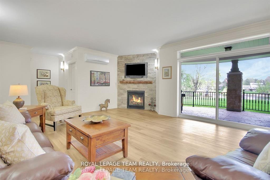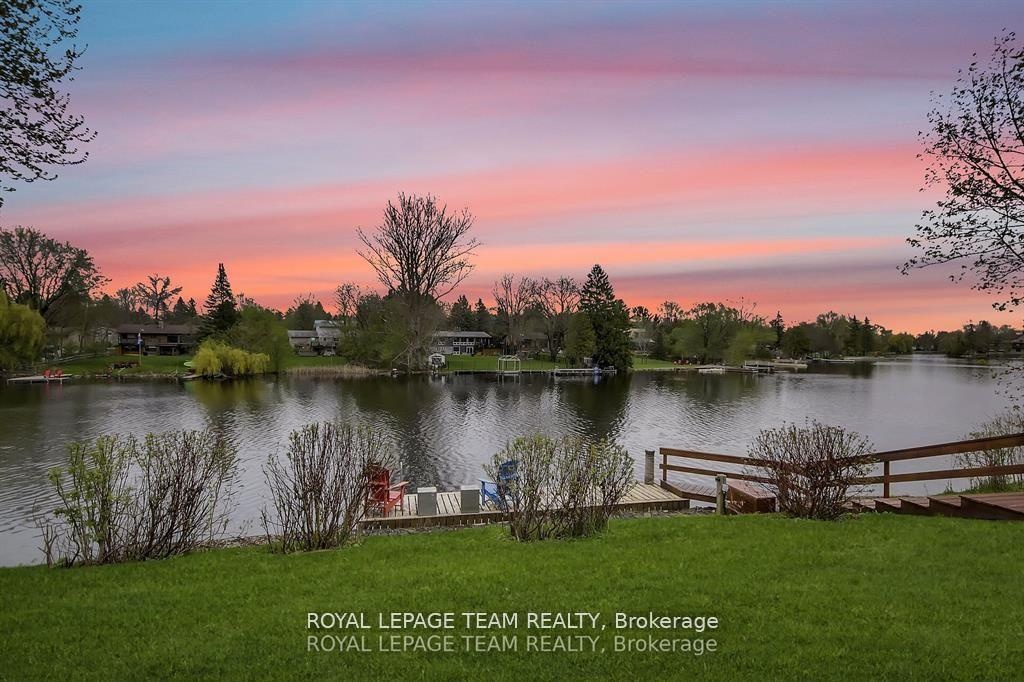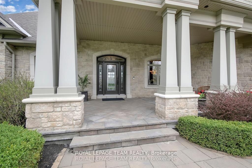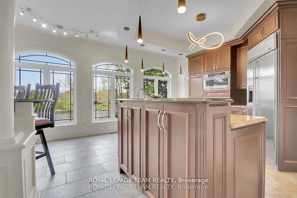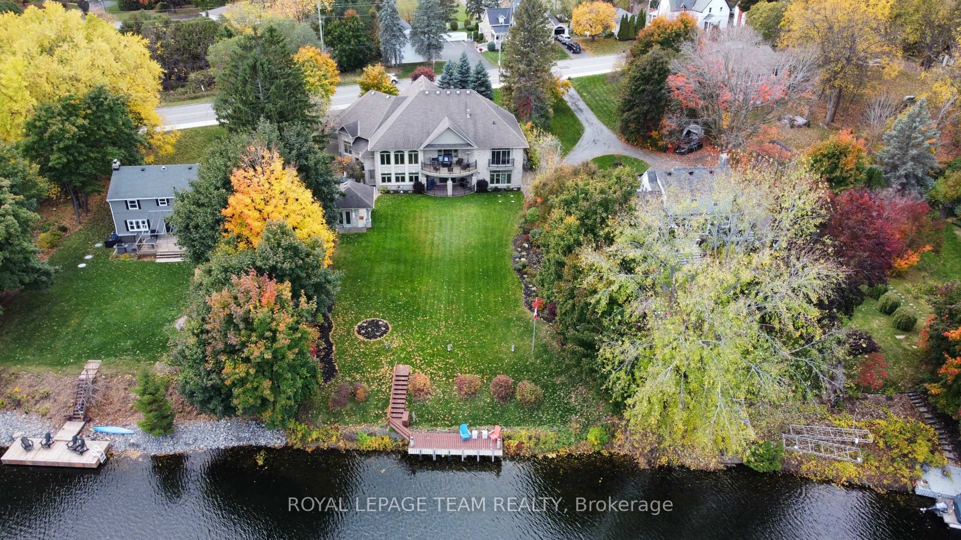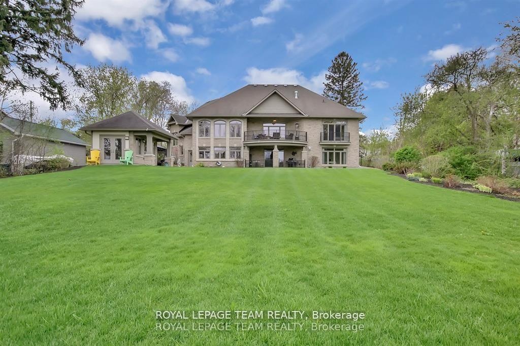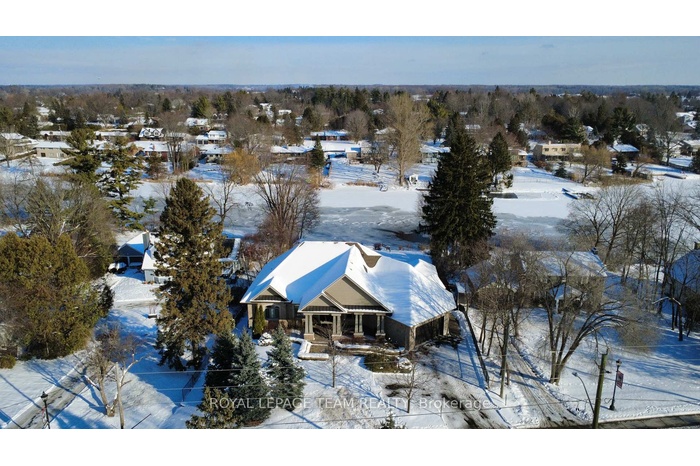 Exquisite Waterfront Estate in the Heart of Manotick on the Rideau River. This custom-built stone bungalow is a masterpiece of craftsmanship and design, nestled on a prestigious waterfront lot in the heart of Manotick. Offering unparalleled luxury and lifestyle, this residence boasts 6-star quality construction & a permanent private dock, with access to 26 miles of scenic boating between locks. Cruise to fine dining, paddle at sunrise, or unwind with a sunset swim all from your own backyard. Step inside to discover timeless elegance and refined finishes throughout. The main level features gleaming oak hardwood, a marble-clad gas fireplace, and gourmet open-concept kitchen adorned with granite countertops & premium fixtures. Two expansive bedrooms on the main floor each offer private spa-inspired ensuites, perfect for indulgent everyday living.The fully finished walkout lower level is equally impressive, featuring two additional bedrooms, spacious and luxurious bathroom. The second designer kitchen offers direct access to an outdoor entertainment area with natural gas BBQ hookup ideal for hosting guests or accommodating extended family in style. The grounds are professionally landscaped and enhanced with an in-ground irrigation system, ensuring lush lawns and pristine gardens. A newly finished stone exterior adds architectural elegance, while a cedar-lined, heated bunkhouse offers a luxurious retreat for guests or a sophisticated studio space. All of this, just steps from Manoticks charming boutiques, award-winning restaurants, and vibrant community life.A lifestyle of waterfront luxury awaits. This is truly a once-in-a-lifetime opportunity.
