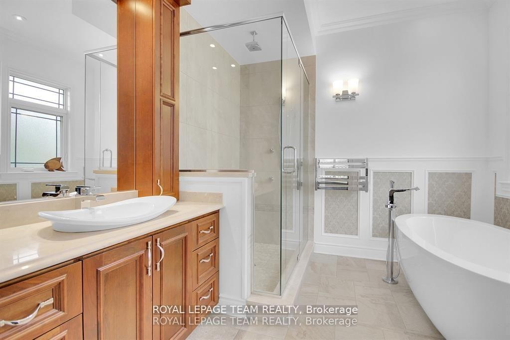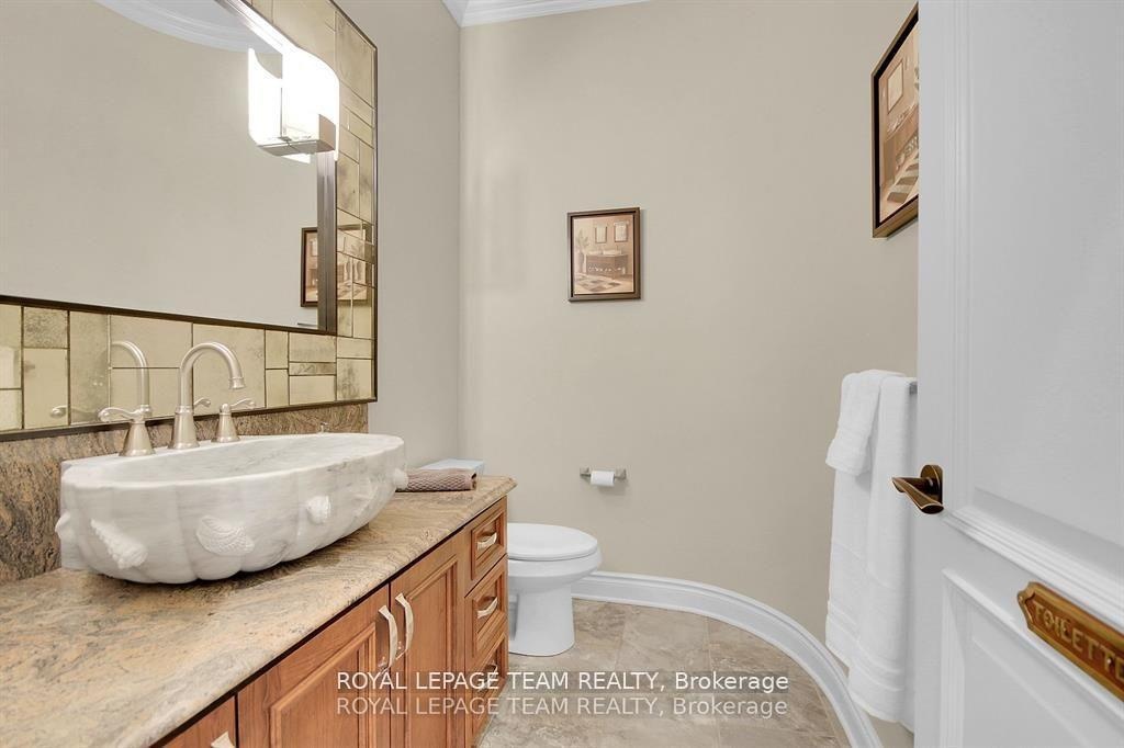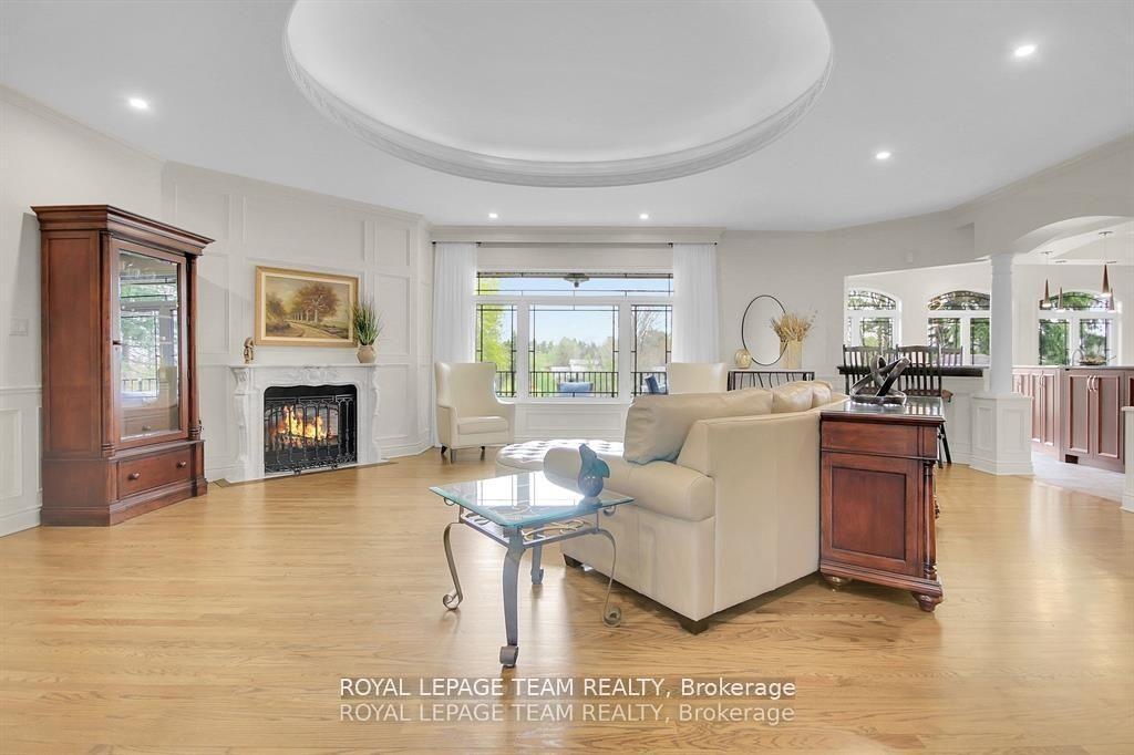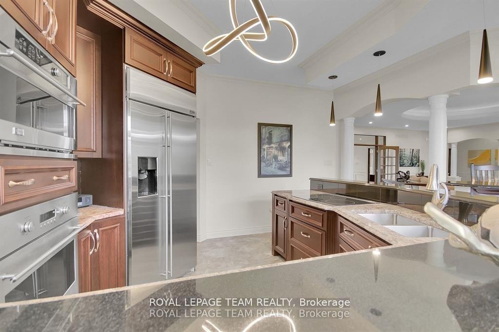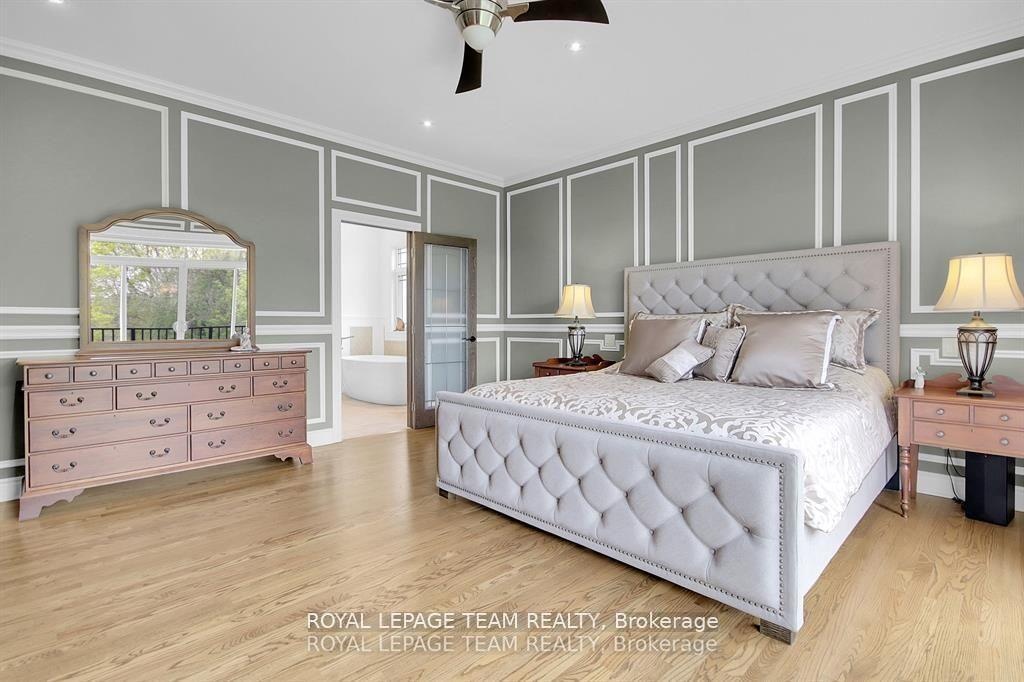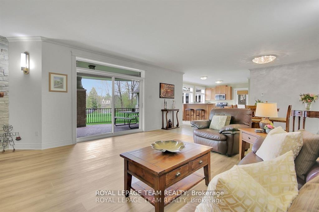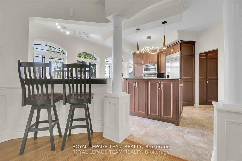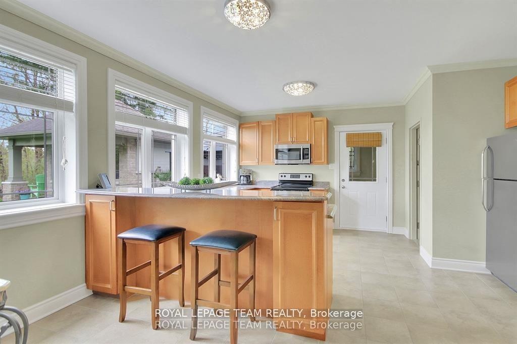 Exquisite Waterfront Estate in the Heart of Manotick on the Rideau River. This custom-built stone bungalow is a masterpiece of craftsmanship and design, nestled on a prestigious waterfront lot in the heart of Manotick. Offering unparalleled luxury and lifestyle, this residence boasts 6-star quality construction & a permanent private dock, with access to 26 miles of scenic boating between locks. Cruise to fine dining, paddle at sunrise, or unwind with a sunset swim all from your own backyard. Step inside to discover timeless elegance and refined finishes throughout. The main level features gleaming oak hardwood, a marble-clad gas fireplace, and gourmet open-concept kitchen adorned with granite countertops & premium fixtures. Two expansive bedrooms on the main floor each offer private spa-inspired ensuites, perfect for indulgent everyday living.The fully finished walkout lower level is equally impressive, featuring two additional bedrooms, spacious and luxurious bathroom. The second designer kitchen offers direct access to an outdoor entertainment area with natural gas BBQ hookup ideal for hosting guests or accommodating extended family in style. The grounds are professionally landscaped and enhanced with an in-ground irrigation system, ensuring lush lawns and pristine gardens. A newly finished stone exterior adds architectural elegance, while a cedar-lined, heated bunkhouse offers a luxurious retreat for guests or a sophisticated studio space. All of this, just steps from Manoticks charming boutiques, award-winning restaurants, and vibrant community life.A lifestyle of waterfront luxury awaits. This is truly a once-in-a-lifetime opportunity.