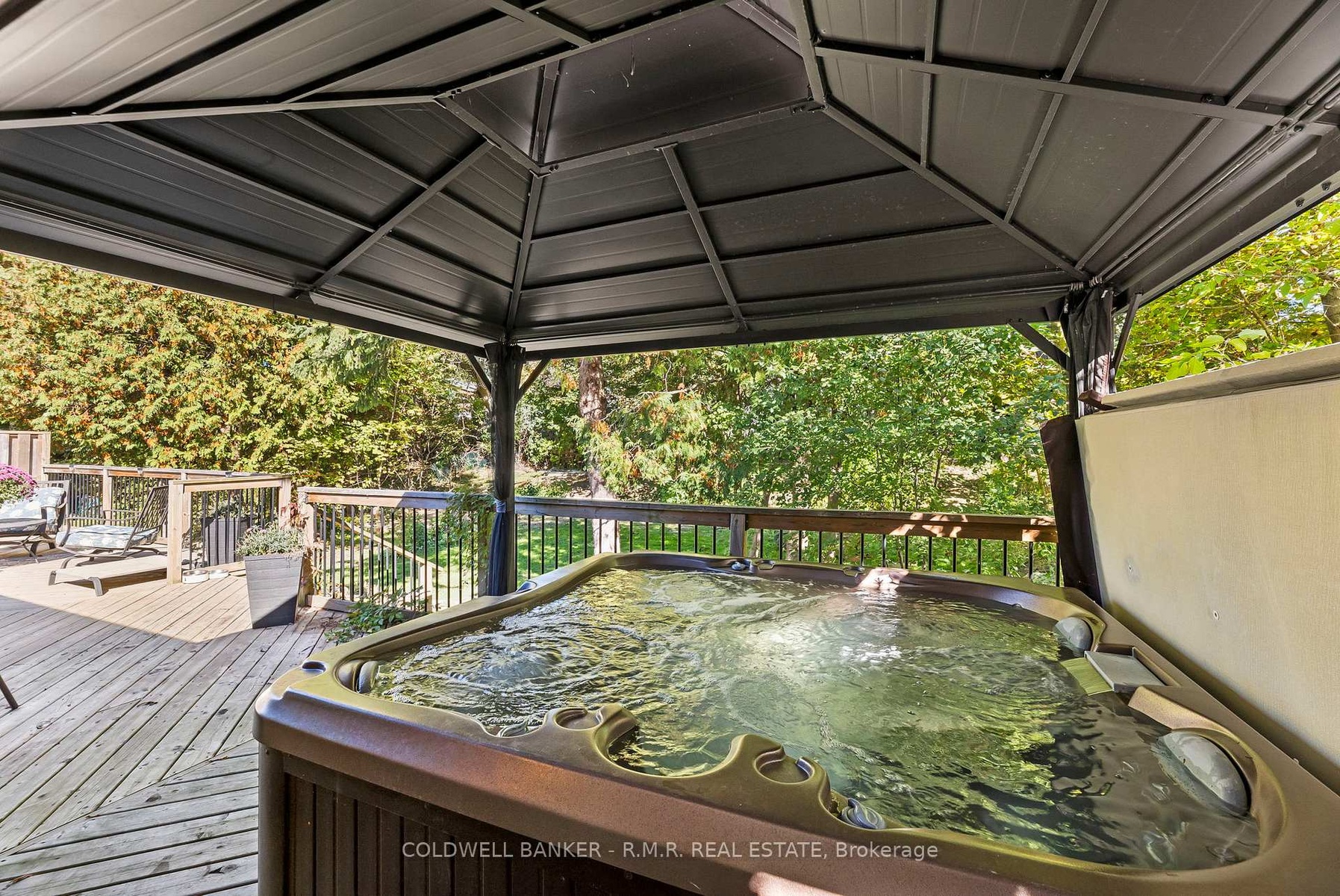 Welcome to 77 Main St N, Uxbridge, a beautifully renovated raised solid brick bungalow set on a generous 66 ft x 165 ft lot in a prime location. Professionally updated between 2017 and 2019, this move-in ready home blends modern elegance with everyday comfort. The open-concept living and dining area features pot lights, a large window, and a walkout to the deck, perfect for entertaining. At the heart of the home, the gourmet kitchen impresses with maple cabinetry, quartz countertops, a sleek glass tile backsplash, and stainless steel appliances. The main level offers three bedrooms, including a primary with direct access to the backyard, along with a spa-like bathroom complete with a glass-enclosed shower and separate soaking tub.The finished lower level expands the living space and is ideal for a nanny or in-law suite, offering an above-grade window, fireplace, second kitchen, bonus room with walk-in closet, full bathroom, and laundry room with garage access. Extensive upgrades include newer windows, luxury vinyl plank flooring, interior doors, trim, lighting, fireplace, entrance system, garage door, HVAC and water softener. Step outside to enjoy a private backyard oasis featuring a deck, hot tub and gazebo, a perfect setting for gatherings or quiet evenings. With a paved driveway, inviting front porch, and armor stone landscaping, this home delivers fantastic curb appeal. Conveniently located within walking distance to downtown Uxbridges shops, restaurants, recreation, and scenic trails, and offering easy access to the 407 (20 minutes) and 401 (30 minutes), this property is an ideal blend of style, comfort, and location. SORRY, OPEN HOUSE ON NOVEMBER 22 HAS BEEN CANCELLED.