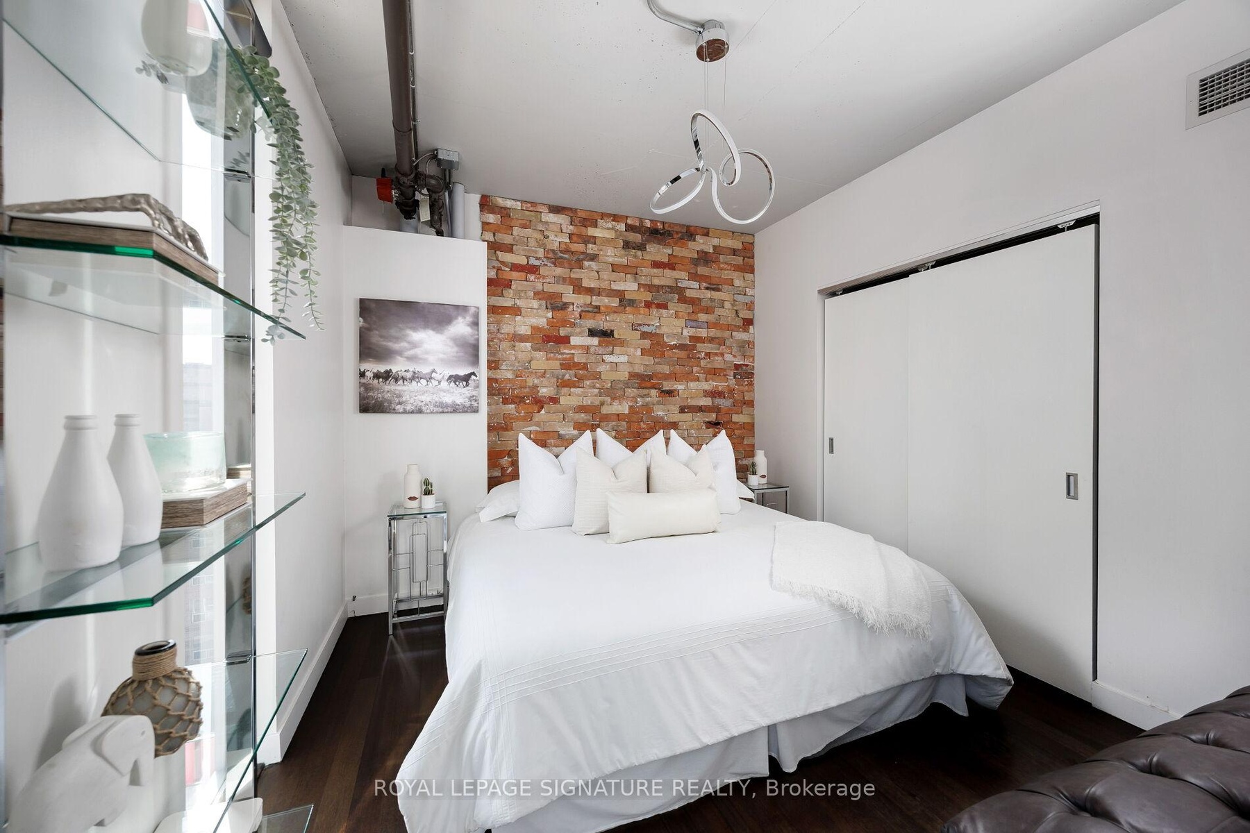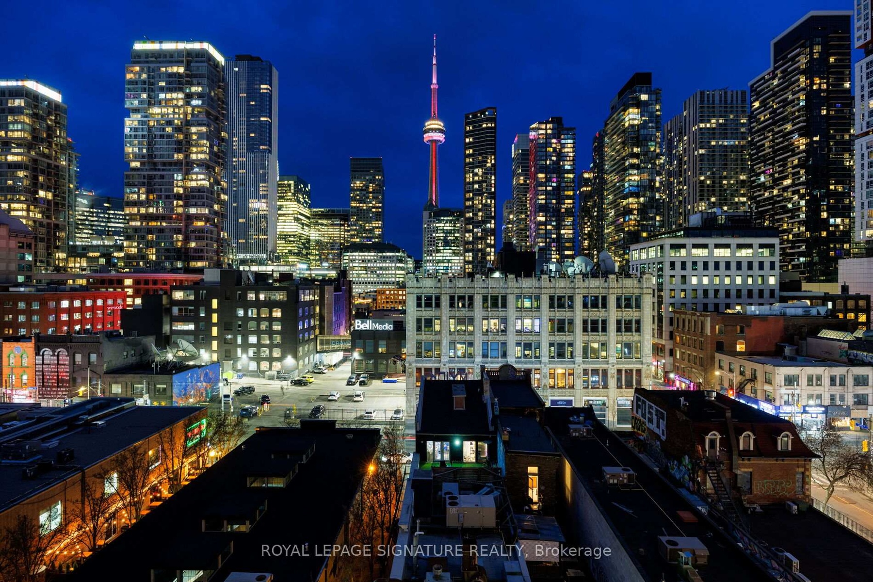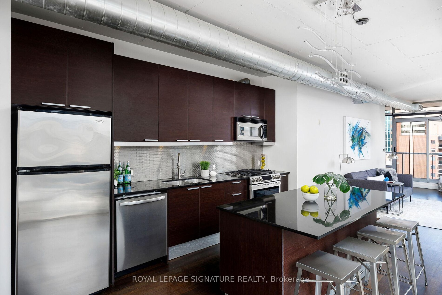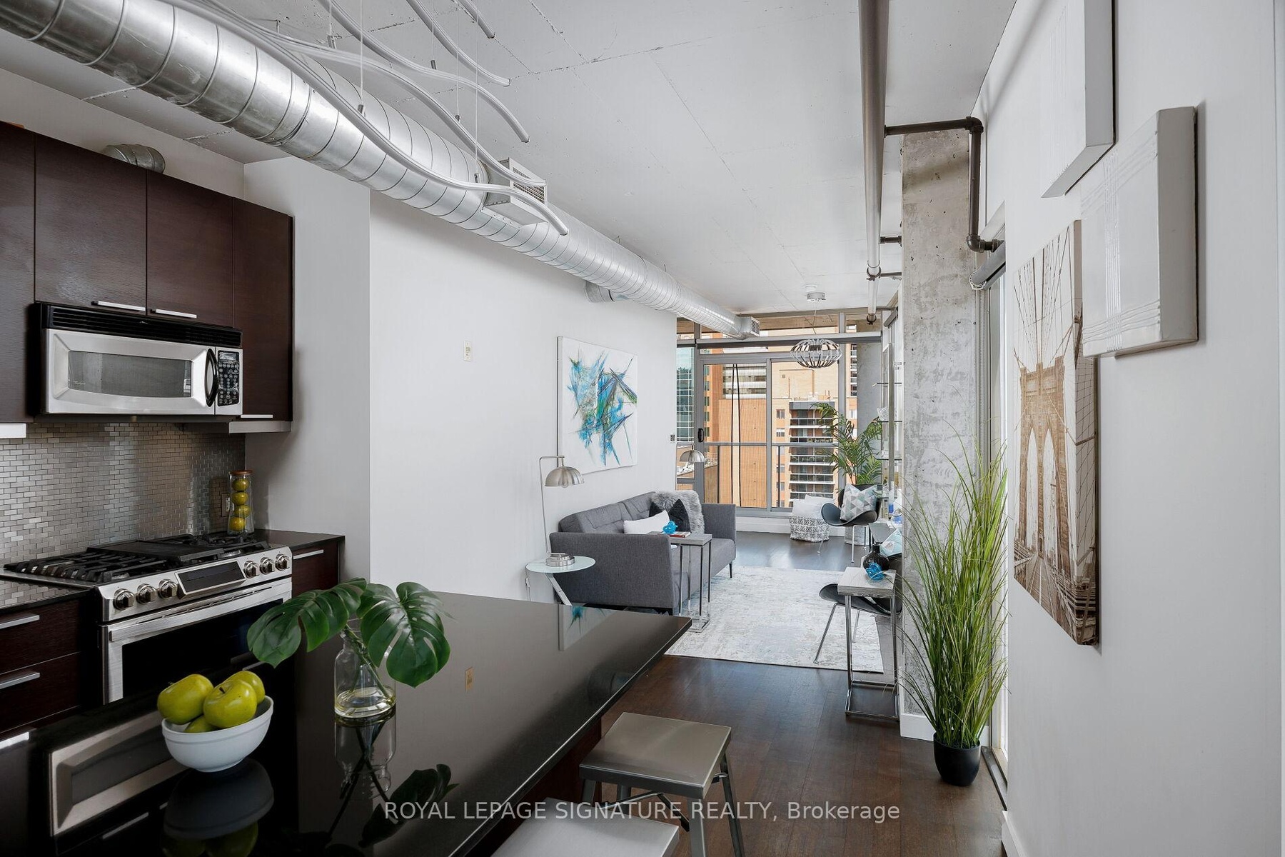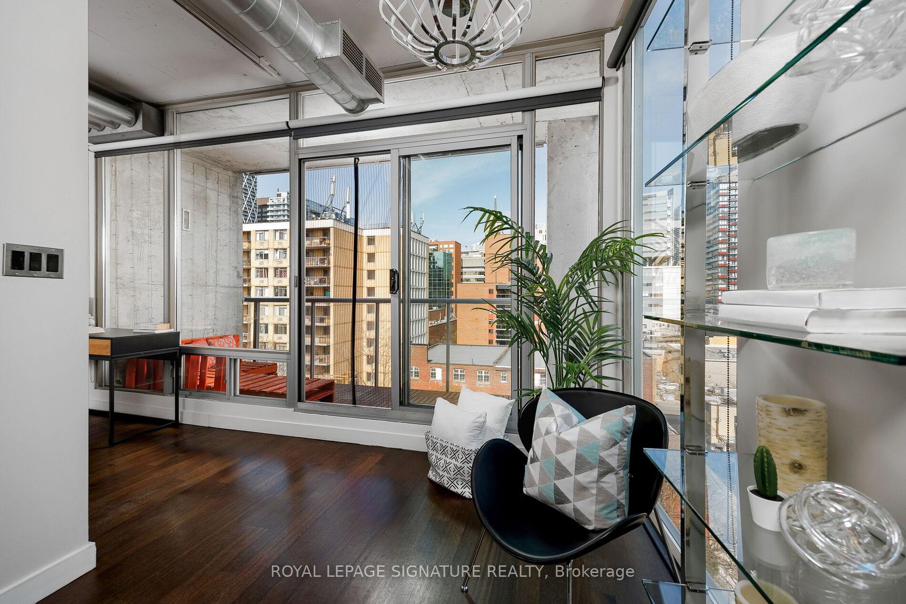 Elevate your everyday in this jaw-dropping 2-bedroom, 2-bathroom designer loft at One Six Nine Lofts where luxury meets art in the heart of downtown Toronto. With 1,047 square feet of impeccably curated space, this rare offering delivers the ultimate in modern urban living. Massive full-length windows frame stunning, unobstructed views of the CN Tower and city skyline, flooding the home with natural light. Step inside and be captivated by industrial-chic elements: exposed concrete ceilings, rich hardwood floors, and sleek imported Italian cabinetry. Brand-new tiles, modern cabinetry, upgraded fixtures, and upscale designer lighting elevate the space with a fresh, modern edge. The open-concept layout, soaring 10-foot ceilings, and chef-inspired kitchen make entertaining effortless and unforgettable. Plus, a fully refurbished HVAC system (completed in 2023) ensures year-round comfort and efficiency. The expansive primary suite offers a true urban retreat, complete with a spa-like ensuite, custom-designed closets, and a stunning mural by internationally acclaimed artist Alex Turco. The spacious 2nd bedroom easily fits a king size bed, while the large balcony provides practical outdoor space. All these features creates a bold, sophisticated backdrop that makes this loft truly one-of-a-kind. Innovation meets convenience with a cutting-edge parking stacker system exclusive to residents. Set within a boutique building of just 45 unique suites, this address places you steps from Toronto's cultural pulse TIFF Bell Lightbox, premier dining, boutique shopping, and vibrant nightlife are all at your doorstep.This is more than a loft its a statement. Secure your place among Toronto's finest.