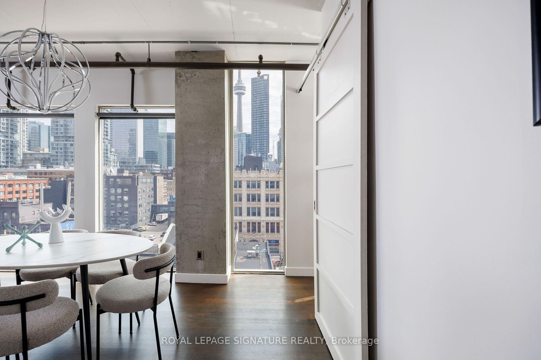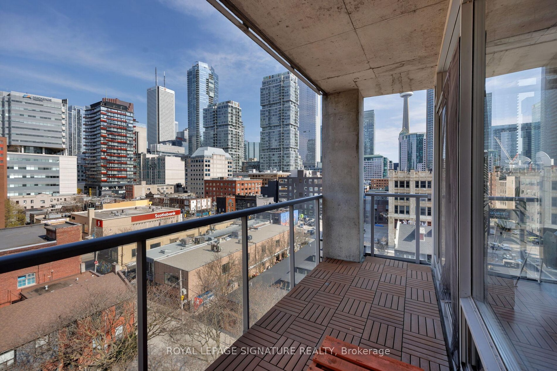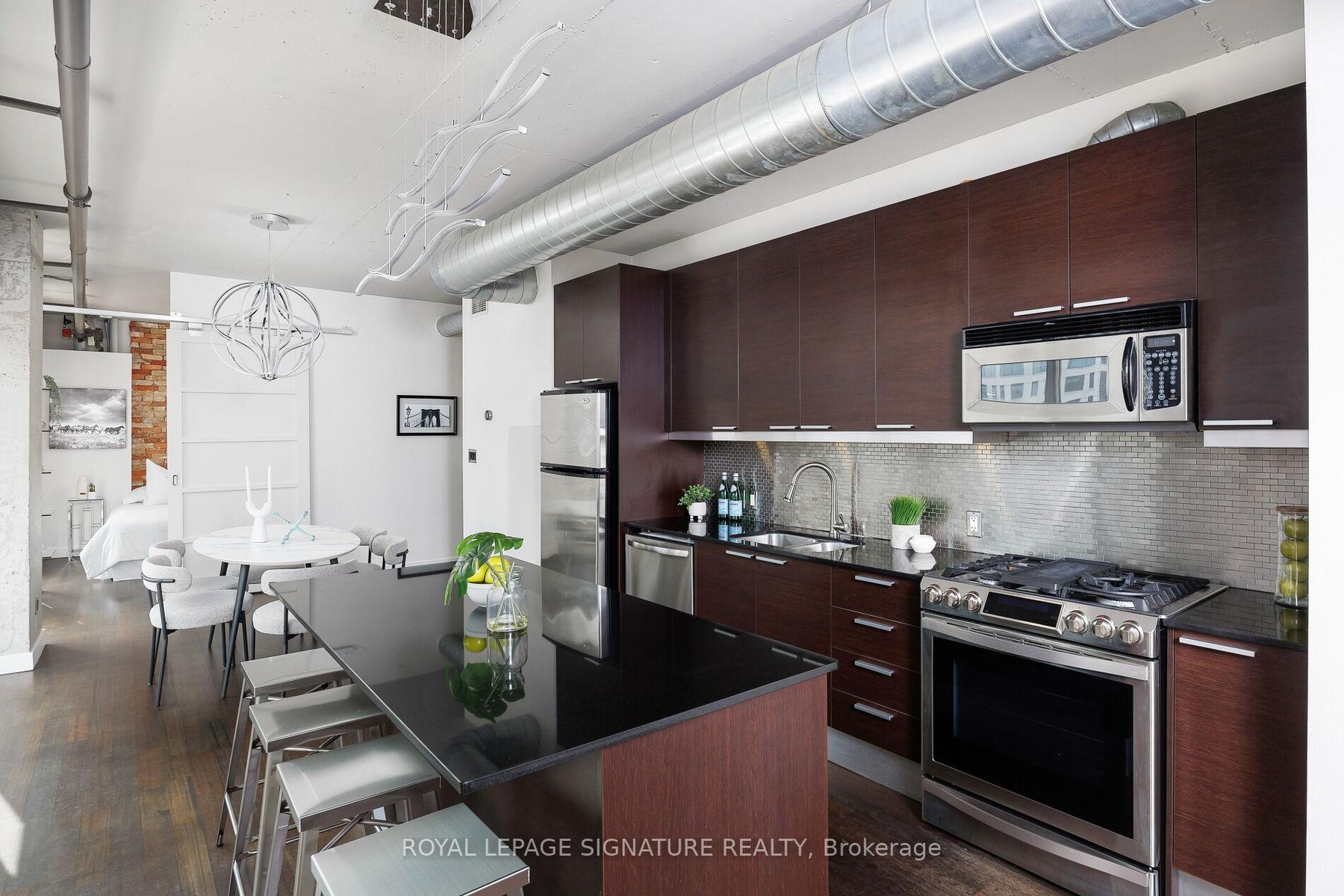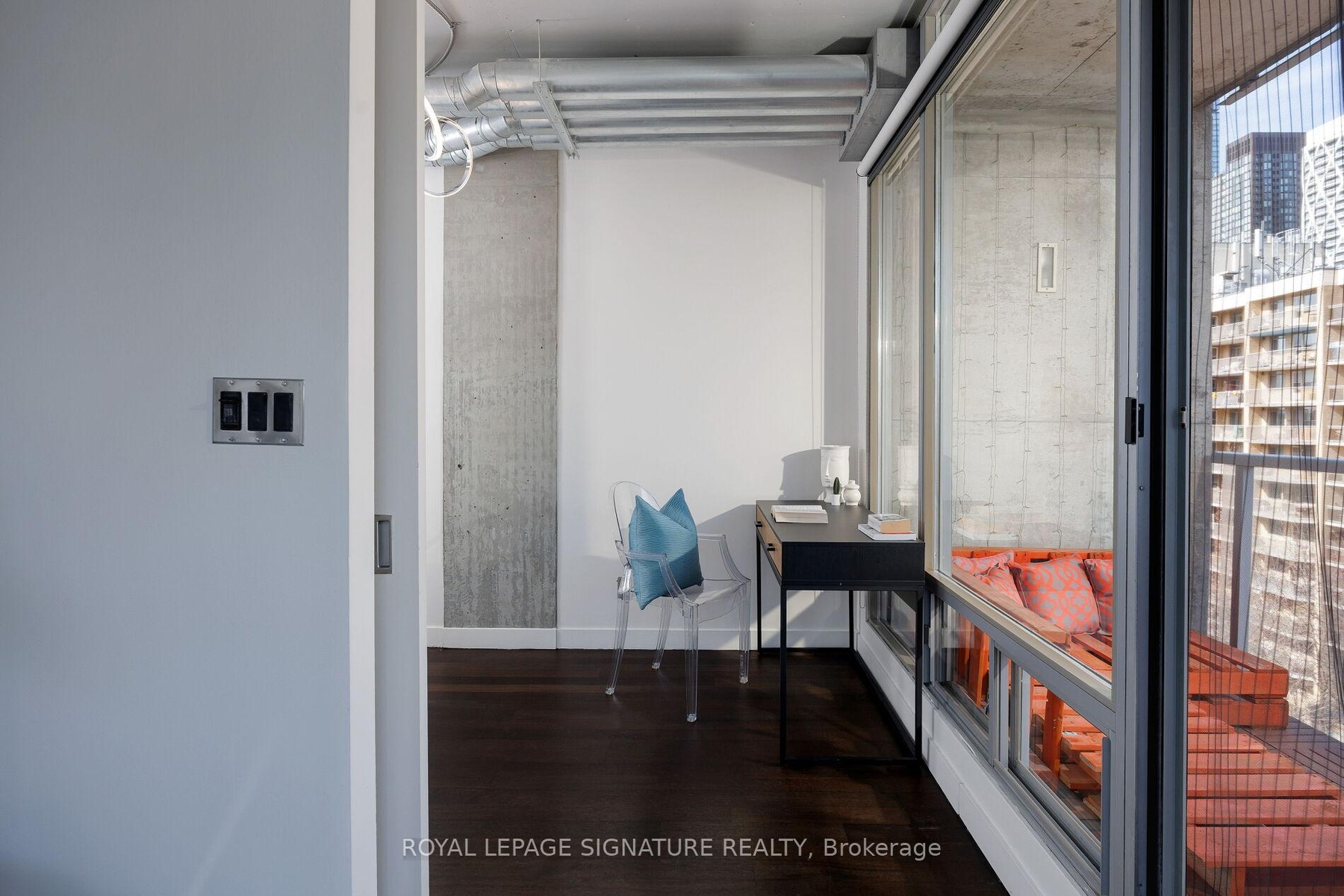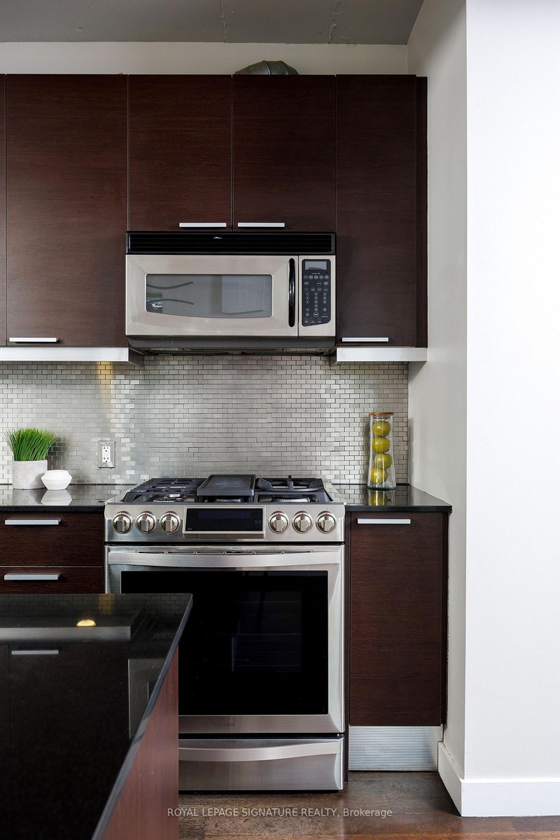 Elevate your everyday in this jaw-dropping 2-bedroom, 2-bathroom designer loft at One Six Nine Lofts where luxury meets art in the heart of downtown Toronto. With 1,047 square feet of impeccably curated space, this rare offering delivers the ultimate in modern urban living. Massive full-length windows frame stunning, unobstructed views of the CN Tower and city skyline, flooding the home with natural light. Step inside and be captivated by industrial-chic elements: exposed concrete ceilings, rich hardwood floors, and sleek imported Italian cabinetry. Brand-new tiles, modern cabinetry, upgraded fixtures, and upscale designer lighting elevate the space with a fresh, modern edge. The open-concept layout, soaring 10-foot ceilings, and chef-inspired kitchen make entertaining effortless and unforgettable. Plus, a fully refurbished HVAC system (completed in 2023) ensures year-round comfort and efficiency. The expansive primary suite offers a true urban retreat, complete with a spa-like ensuite, custom-designed closets, and a stunning mural by internationally acclaimed artist Alex Turco. The spacious 2nd bedroom easily fits a king size bed, while the large balcony provides practical outdoor space. All these features creates a bold, sophisticated backdrop that makes this loft truly one-of-a-kind. Innovation meets convenience with a cutting-edge parking stacker system exclusive to residents. Set within a boutique building of just 45 unique suites, this address places you steps from Toronto's cultural pulse TIFF Bell Lightbox, premier dining, boutique shopping, and vibrant nightlife are all at your doorstep.This is more than a loft its a statement. Secure your place among Toronto's finest.