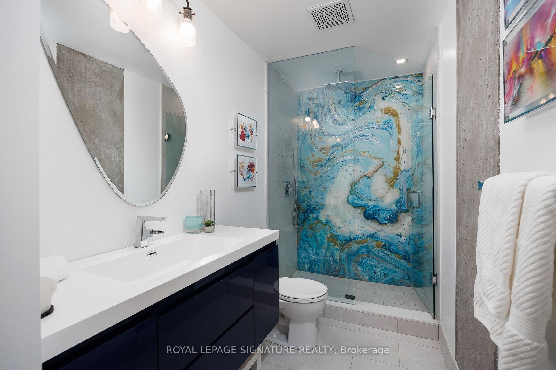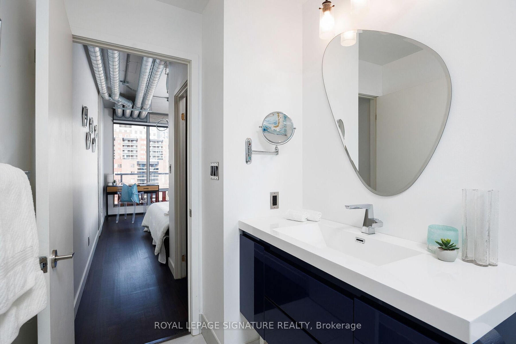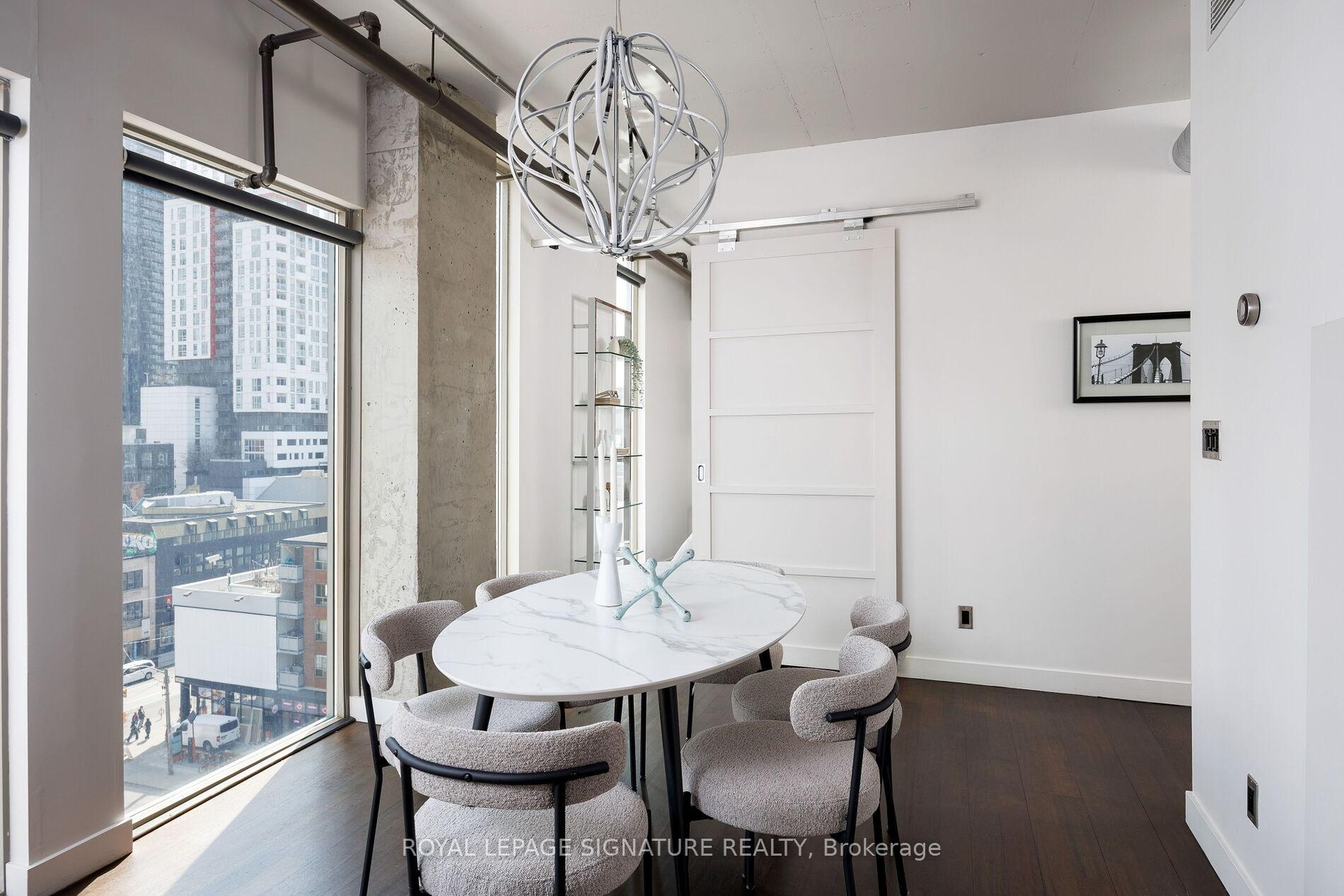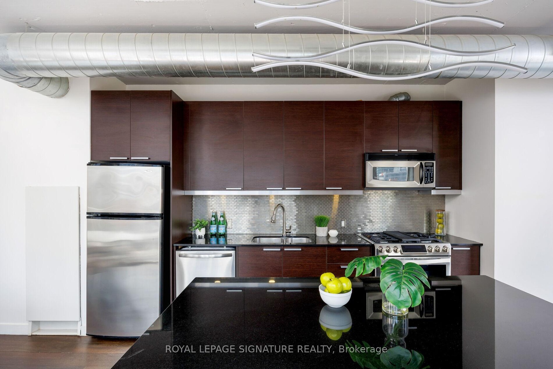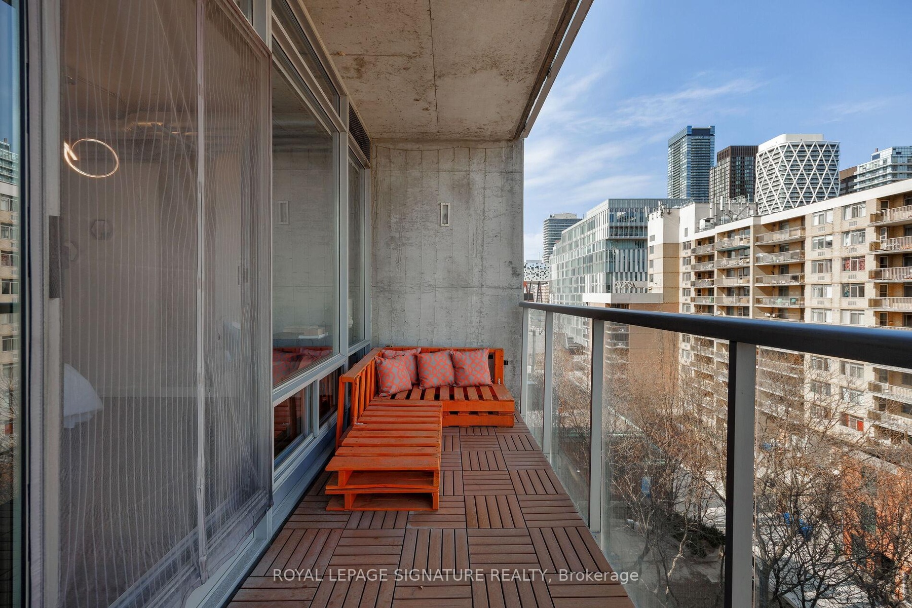 Elevate your everyday in this jaw-dropping 2-bedroom, 2-bathroom designer loft at One Six Nine Lofts where luxury meets art in the heart of downtown Toronto. With 1,047 square feet of impeccably curated space, this rare offering delivers the ultimate in modern urban living. Massive full-length windows frame stunning, unobstructed views of the CN Tower and city skyline, flooding the home with natural light. Step inside and be captivated by industrial-chic elements: exposed concrete ceilings, rich hardwood floors, and sleek imported Italian cabinetry. Brand-new tiles, modern cabinetry, upgraded fixtures, and upscale designer lighting elevate the space with a fresh, modern edge. The open-concept layout, soaring 10-foot ceilings, and chef-inspired kitchen make entertaining effortless and unforgettable. Plus, a fully refurbished HVAC system (completed in 2023) ensures year-round comfort and efficiency. The expansive primary suite offers a true urban retreat, complete with a spa-like ensuite, custom-designed closets, and a stunning mural by internationally acclaimed artist Alex Turco. The spacious 2nd bedroom easily fits a king size bed, while the large balcony provides practical outdoor space. All these features creates a bold, sophisticated backdrop that makes this loft truly one-of-a-kind. Innovation meets convenience with a cutting-edge parking stacker system exclusive to residents. Set within a boutique building of just 45 unique suites, this address places you steps from Toronto's cultural pulse TIFF Bell Lightbox, premier dining, boutique shopping, and vibrant nightlife are all at your doorstep.This is more than a loft its a statement. Secure your place among Toronto's finest.