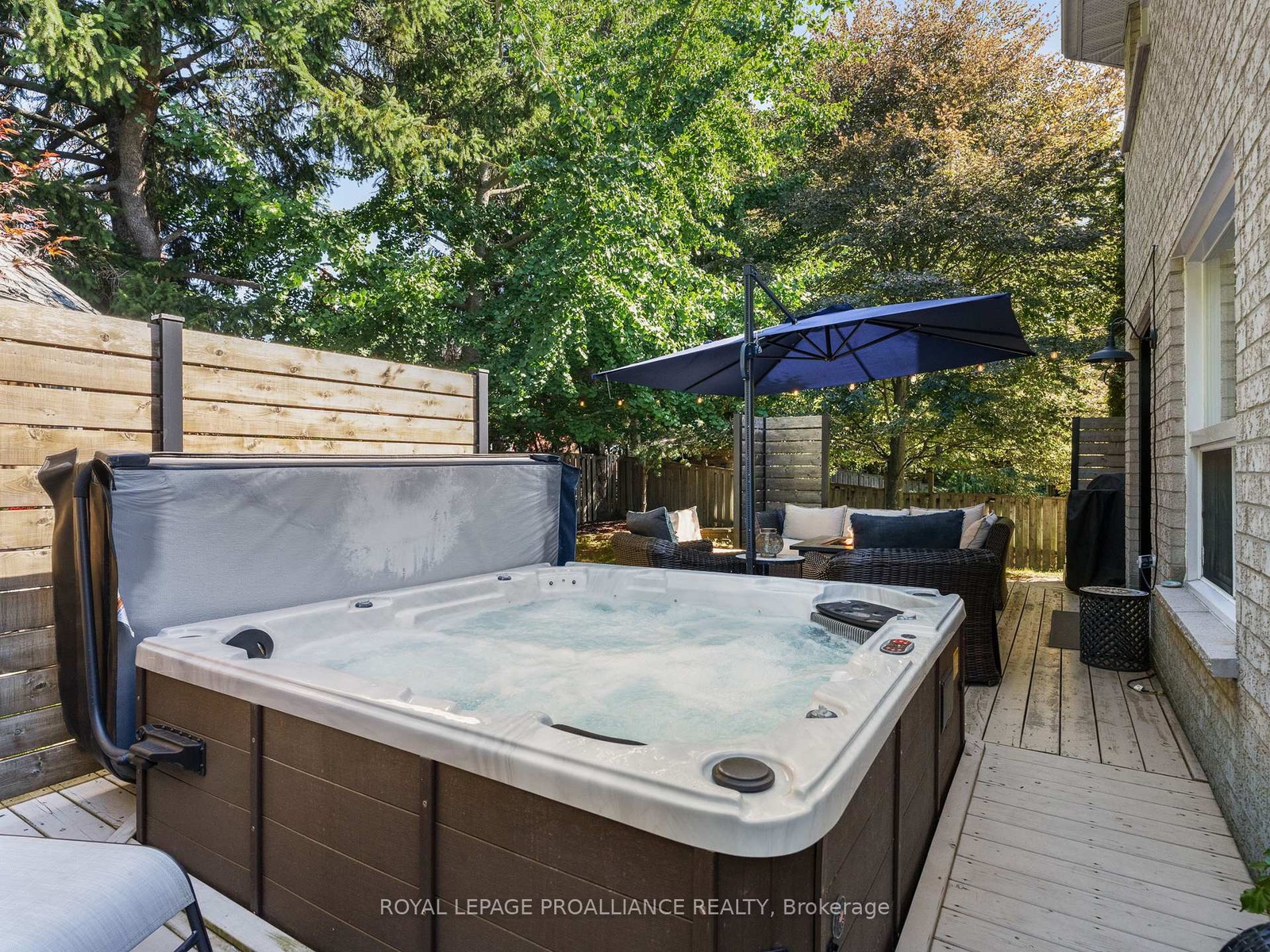 Welcome to 1024 Frei Street in Cobourg, a detached brick home offering 4 bedrooms and 2.5 bathrooms. Built in 1994 and set on a quiet, mature street, this two-storey features a functional layout with a mix of cork, luxury vinyl plank, and hardwood flooring. Freshly painted with a bright, modern feel, the home includes separate family and living rooms for flexible space and a large dining room for gathering together. Upstairs, the primary bedroom features a refreshed ensuite, while the other two bathrooms have also been renovated, including the main bath with heated floors. The completely renovated eat-in kitchen (2023) is the highlight of the main floor, showcasing a custom island with bar fridge, quartz counters, and stylish finishes, and overlooking the spacious family room with a cozy gas fireplace. From the kitchen, walk out to a private backyard retreat complete with an extended deck, hot tub, and garden shed. Additional highlights include an attached two-car garage and an unfinished basement with cold cellar, adding convenience and potential for future living space. Ideally located within walking distance to schools, Cobourg Creek and Arboretum, this home perfectly balances family living with everyday ease. **Recent updates: powder room + ensuite & laundry renos 2025, kitchen remodel 2023, main floor flooring 2022**
