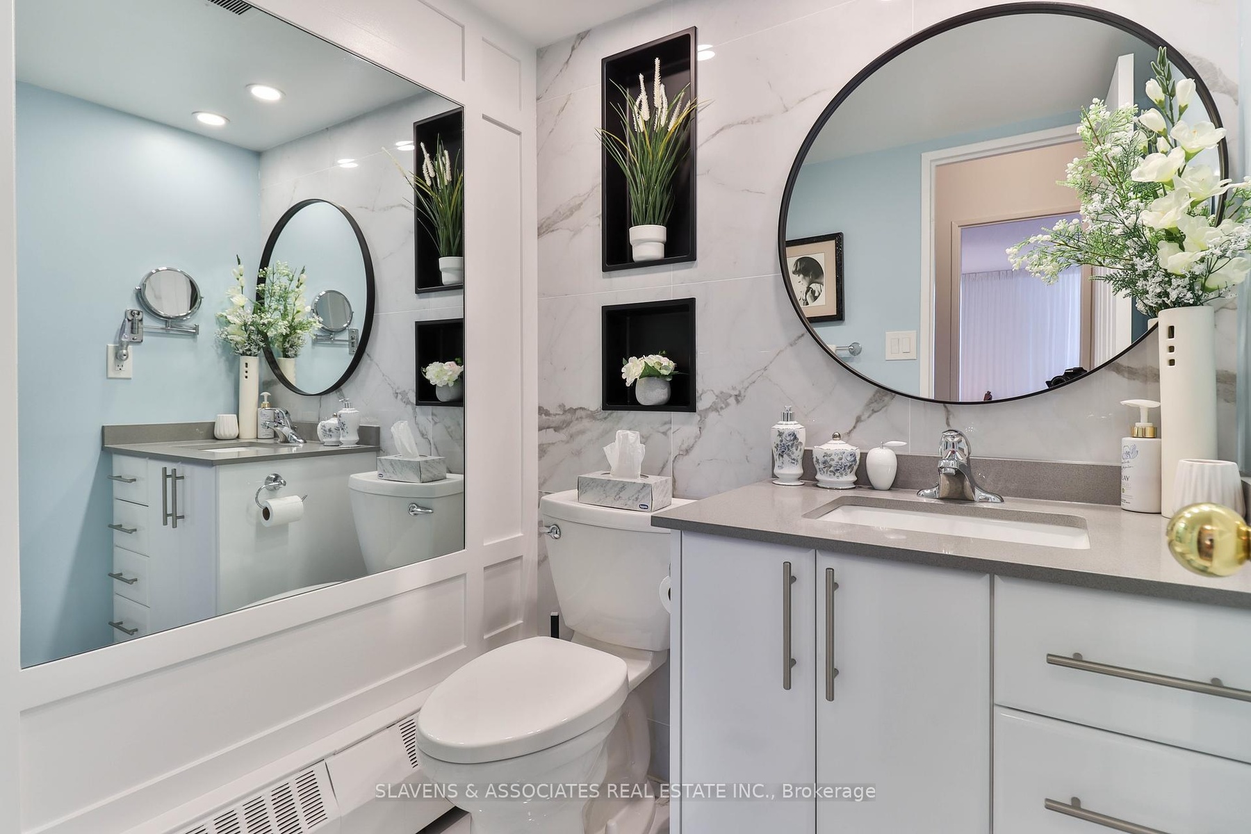 Stunning Renovated Condo in a Tridel Residence. Welcome to Unit 403 at 3300 Don Mills Rd, a beautifully renovated 2-bedroom, 2-bathroom corner suite. Immaculately maintained by its original owner, this condo boasts over $120,000 in professional renovations, blending modern elegance with exceptional craftsmanship. From the moment you step into the foyer, you are welcomed by custom wall paneling that flows into the kitchen and dining area, creating a sophisticated and inviting space. The kitchen (2023) features fresh white cabinetry, quartz countertops, a custom backsplash, and an integrated wine rack wall, perfectly suited for both everyday living and entertaining. The white appliances add a sleek, modern touch. The expansive open-concept living and dining area offers ample space for two distinct seating areas and is bathed in natural light from the oversized floor to ceiling windows. The space leads to a huge private balcony, providing an ideal setting for relaxing. The primary bedroom includes a walk-in closet and spa-inspired ensuite (2022), while the main bathroom (2021) features a curbless walk-in shower, combining style and accessibility. A unique benefit of this home is the inclusive maintenance fees, covering water, heat, electricity, cable TV, and internet, making it truly hassle-free. Enjoy the amenities such as an outdoor pool, fitness centre, tennis courts, sauna, party room, and security guard. Located just minutes from Fairview Mall, Don Mills subway, public transit, top schools, and with quick access to Highways 404 & 401, this condo offers an unbeatable combination of quality, location, and a hassle free lifestyle.