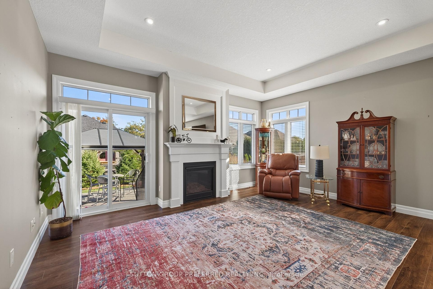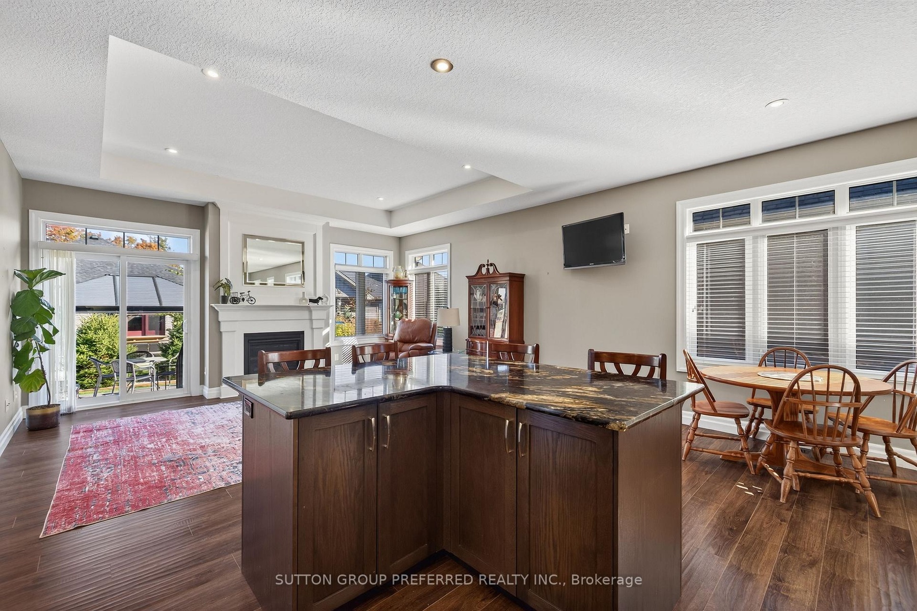 This impressive upgraded bungalow in desirable Village on the Thames in Dorchester provides an open-concept main floor featuring a chef's dream kitchen with an oversized granite island, gas stove, and pot lights, opening to a family room with tray ceiling and gas fireplace. The primary bedroom includes two double closets and a private ensuite, while a second bedroom and full bathroom provide additional space. Enjoy main floor laundry, 9-ft ceilings, and a fully finished basement with a large rec room, two bedrooms, a three-piece bath, and ample storage. Outside, a spacious concrete patio with a gazebo, gas BBQ line, makes this home perfect for entertaining. Located just 10 minutes from London and 2 minutes to the 401, this Vacant Land condo offers low-maintenance living with a $235 monthly fee covering lawn care, snow removal and common elements.