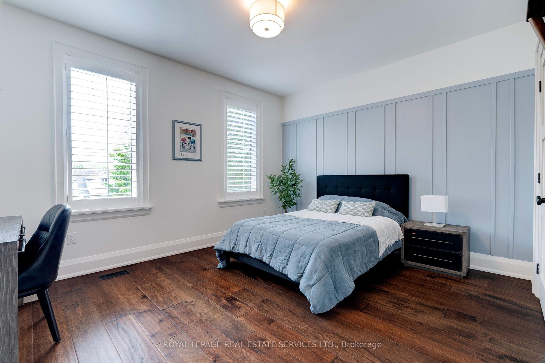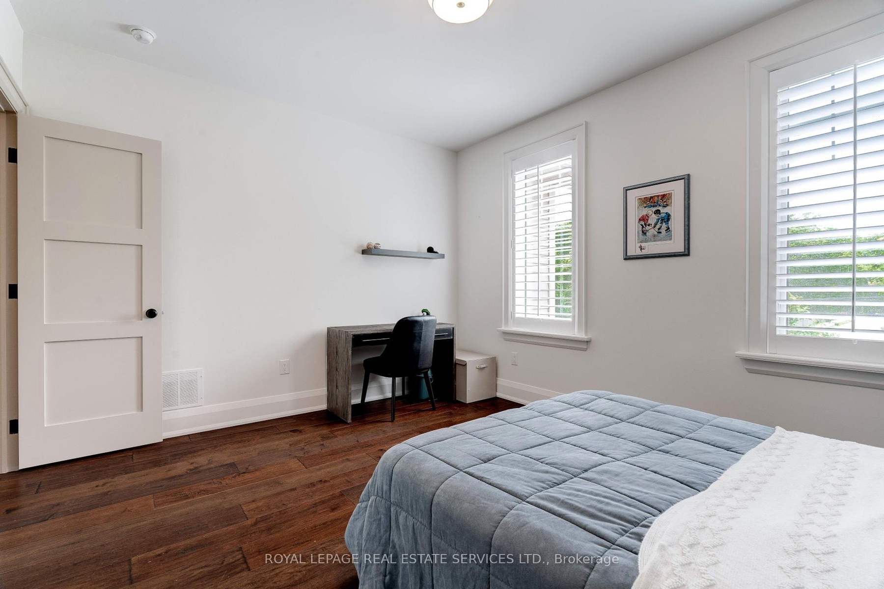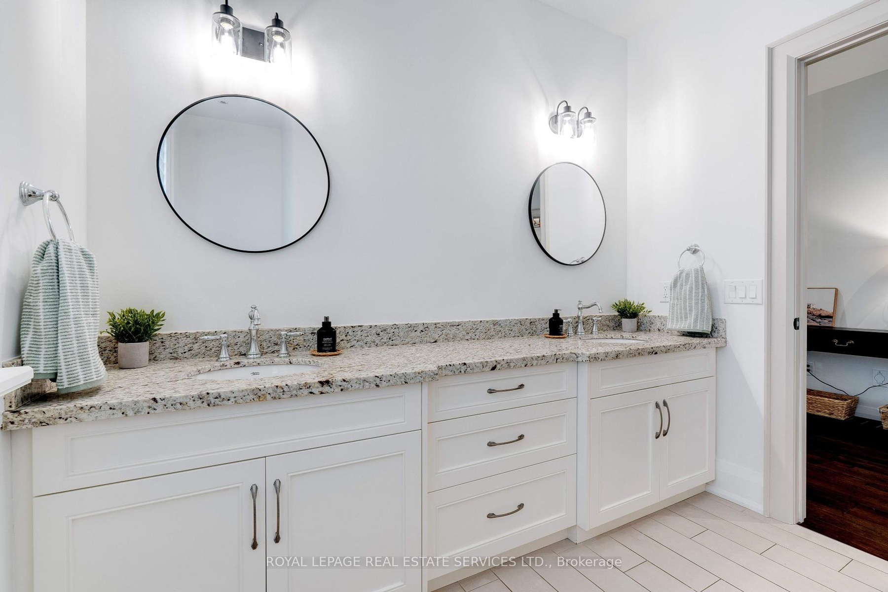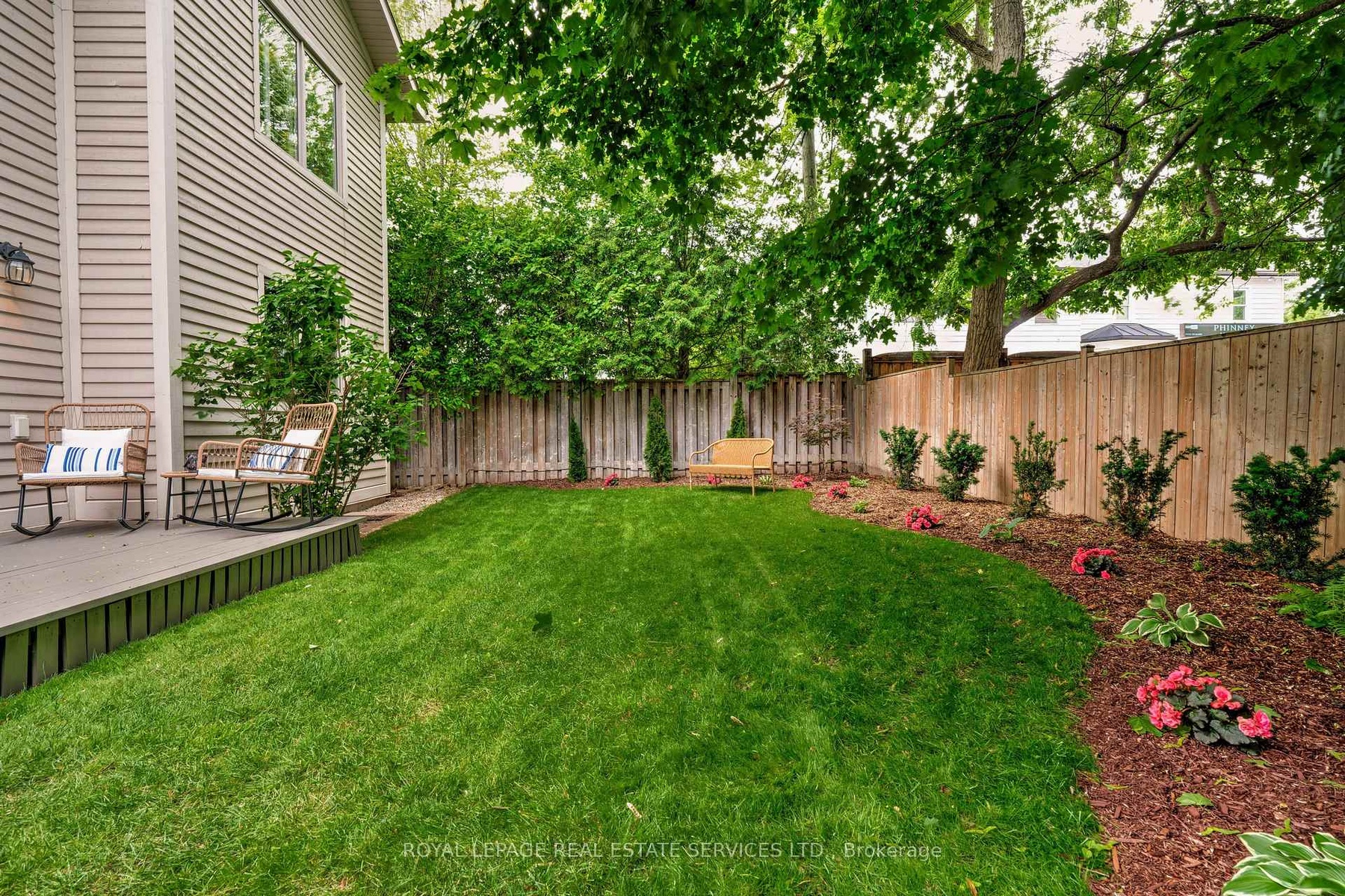 Discover the charm of Old Oakville in this beautifully crafted custom built home, offering nearly 3100 sq ft of finished living space. Thoughtfully designed with a modern influence, it features 9' ceilings, wide plank hardwood floors and custom millwork. The gourmet kitchen includes a large centre island, stainless appliances, granite counters, and a walk-in pantry. The open-concept living and dining area is perfect for entertaining and has a double garden door walkout to the private back yard. The main level flooring and hardwood stairs were just re-done with a rich, matte finish. Also conveniently located on the main floor is a 2pc bath and mudroom/laundry room with broom closet and convenient inside access from the garage. Upstairs, the spacious primary suite features a luxurious 5-piece ensuite with heated floors and a large walk-in closet. Two additional bedrooms are bright and well-sized with double door closets. The finished lower level adds a rec room, 4th bedroom, and 3-piece bath, ideal for overnight guests or a teen retreat. Professionally landscaped last year, the gardens include mature trees & perennials - an irrigation system makes for easy maintenance. The garage has been customized with epoxy floors, overhead storage and slat walls for organizing your tools & gear. Hockey enthusiasts will love the electric roll-down sports screen - perfect for target practice and protects the garage door from damage. Many other updates, including light fixtures and fresh interior painting make this home turn-key. Ideally situated in the heart of Old Oakville, walk to Oakville GO, Whole Foods, Downtown shops, restaurants, and parks from this prime cul-de-sac location. Timeless design, high-end finishes, and unbeatable location make this home a rare find.