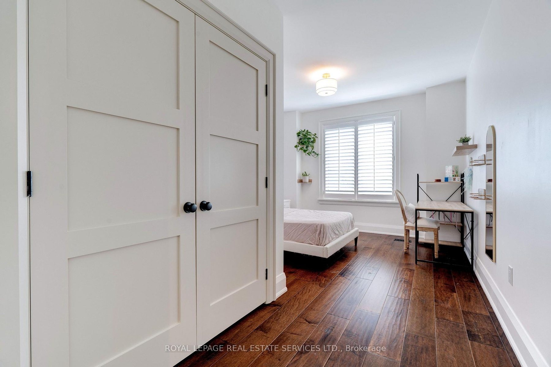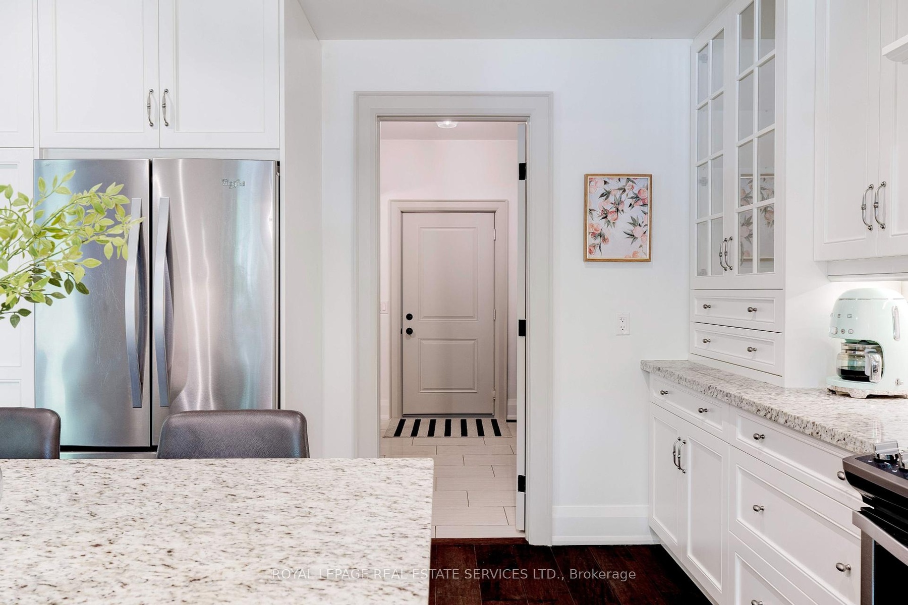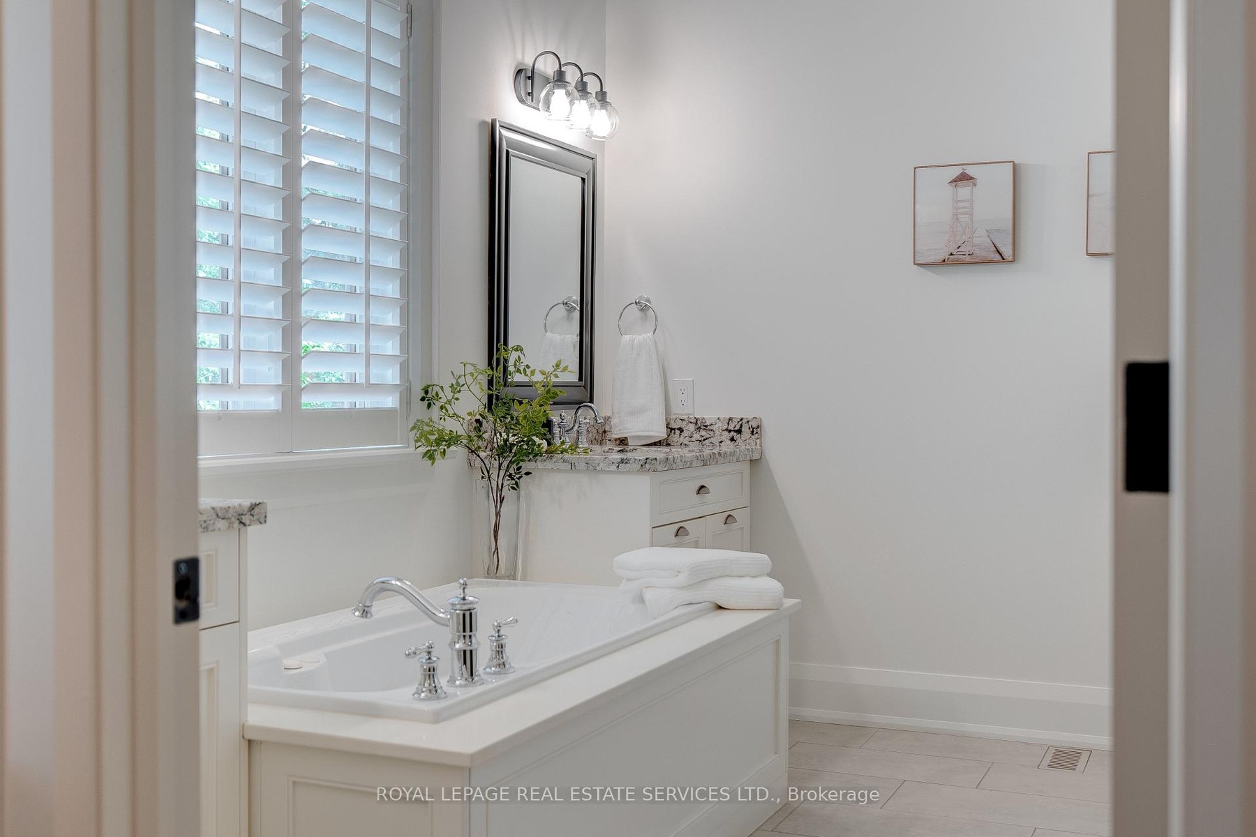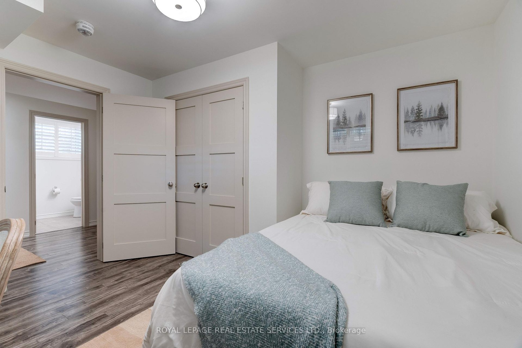 Discover the charm of Old Oakville in this beautifully crafted custom built home, offering nearly 3100 sq ft of finished living space. Thoughtfully designed with a modern influence, it features 9' ceilings, wide plank hardwood floors and custom millwork. The gourmet kitchen includes a large centre island, stainless appliances, granite counters, and a walk-in pantry. The open-concept living and dining area is perfect for entertaining and has a double garden door walkout to the private back yard. The main level flooring and hardwood stairs were just re-done with a rich, matte finish. Also conveniently located on the main floor is a 2pc bath and mudroom/laundry room with broom closet and convenient inside access from the garage. Upstairs, the spacious primary suite features a luxurious 5-piece ensuite with heated floors and a large walk-in closet. Two additional bedrooms are bright and well-sized with double door closets. The finished lower level adds a rec room, 4th bedroom, and 3-piece bath, ideal for overnight guests or a teen retreat. Professionally landscaped last year, the gardens include mature trees & perennials - an irrigation system makes for easy maintenance. The garage has been customized with epoxy floors, overhead storage and slat walls for organizing your tools & gear. Hockey enthusiasts will love the electric roll-down sports screen - perfect for target practice and protects the garage door from damage. Many other updates, including light fixtures and fresh interior painting make this home turn-key. Ideally situated in the heart of Old Oakville, walk to Oakville GO, Whole Foods, Downtown shops, restaurants, and parks from this prime cul-de-sac location. Timeless design, high-end finishes, and unbeatable location make this home a rare find.