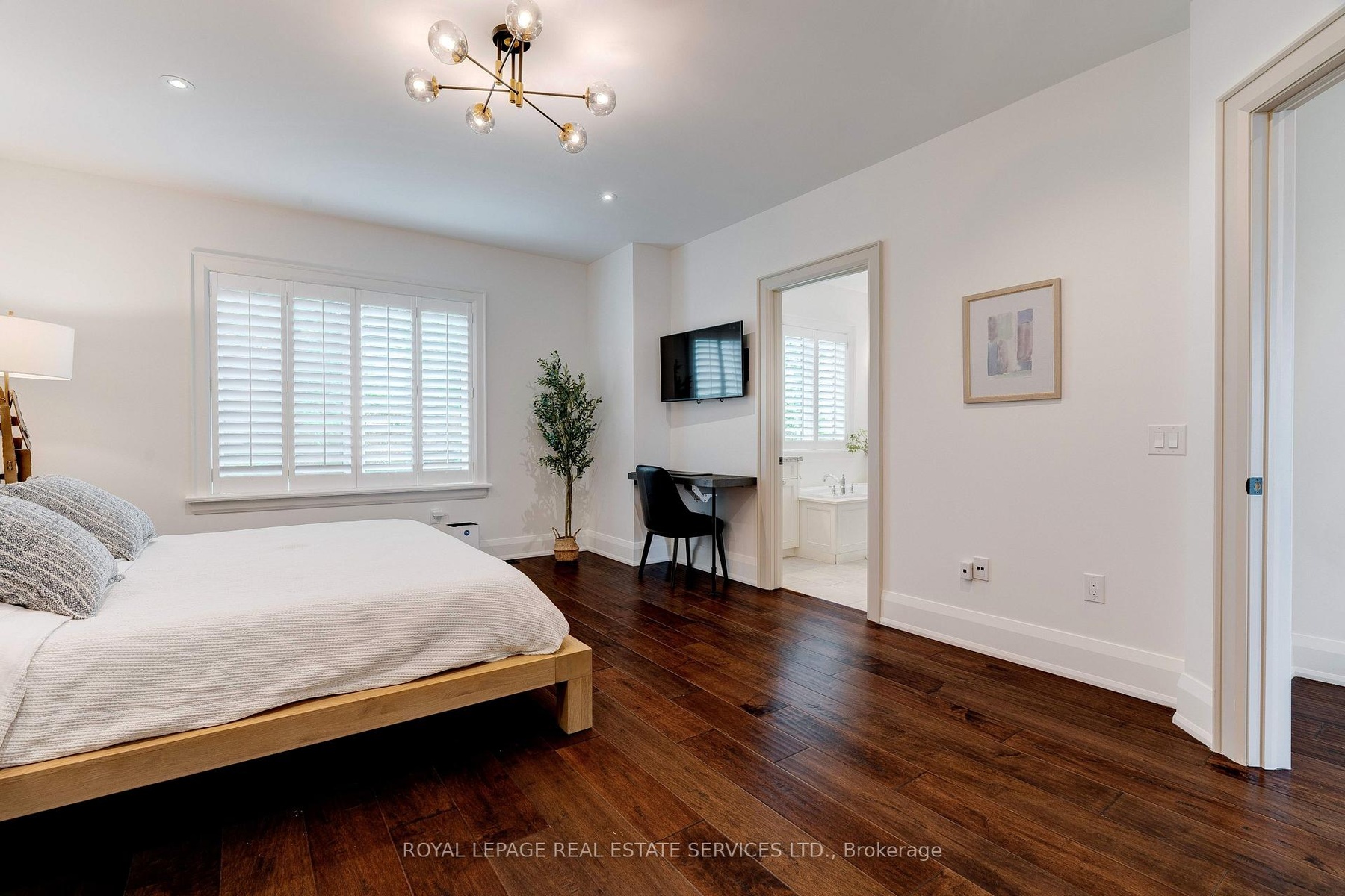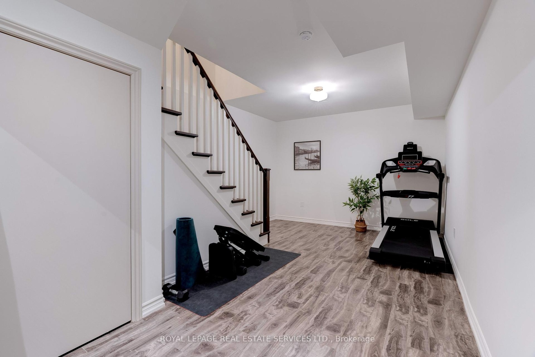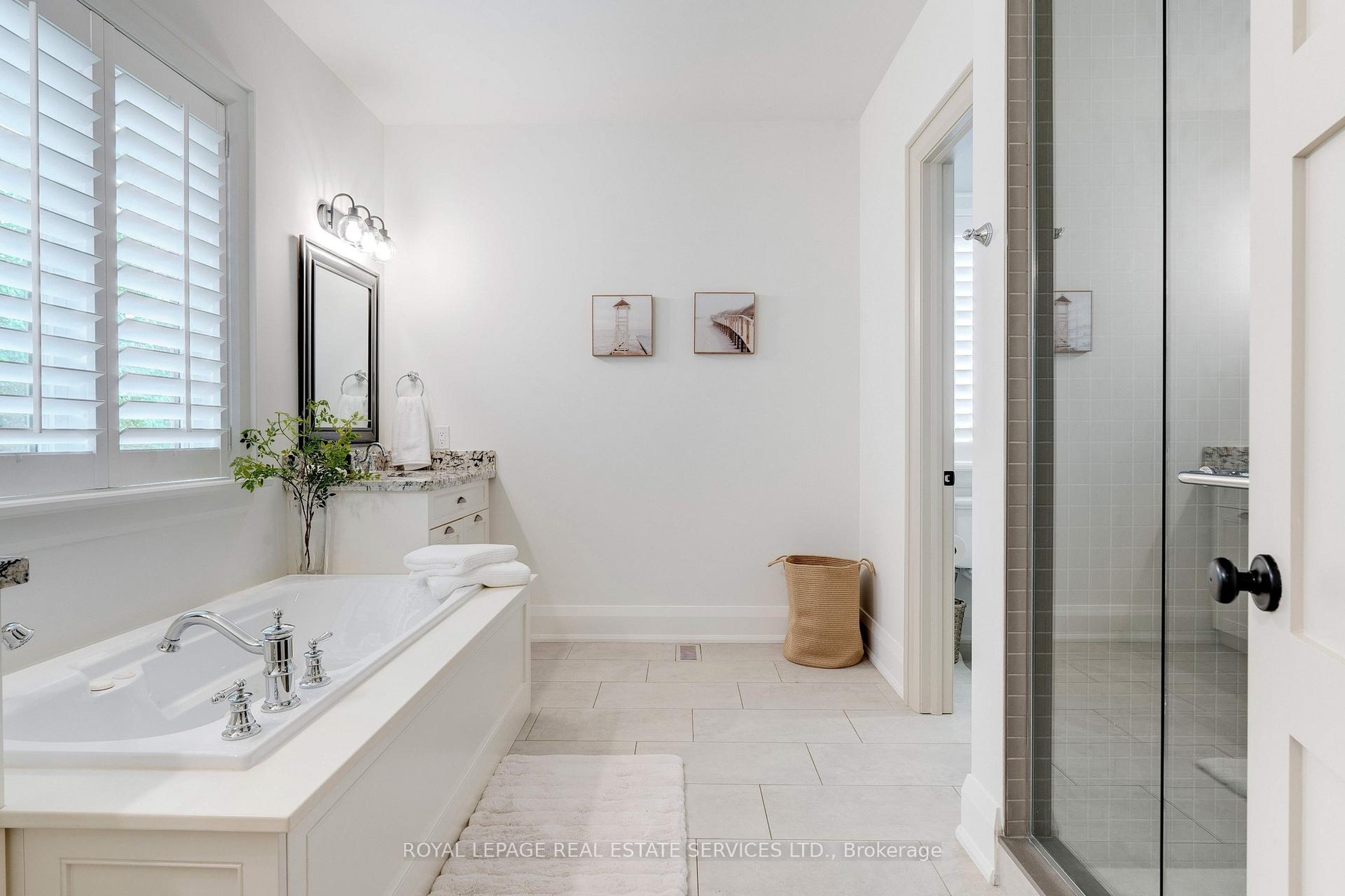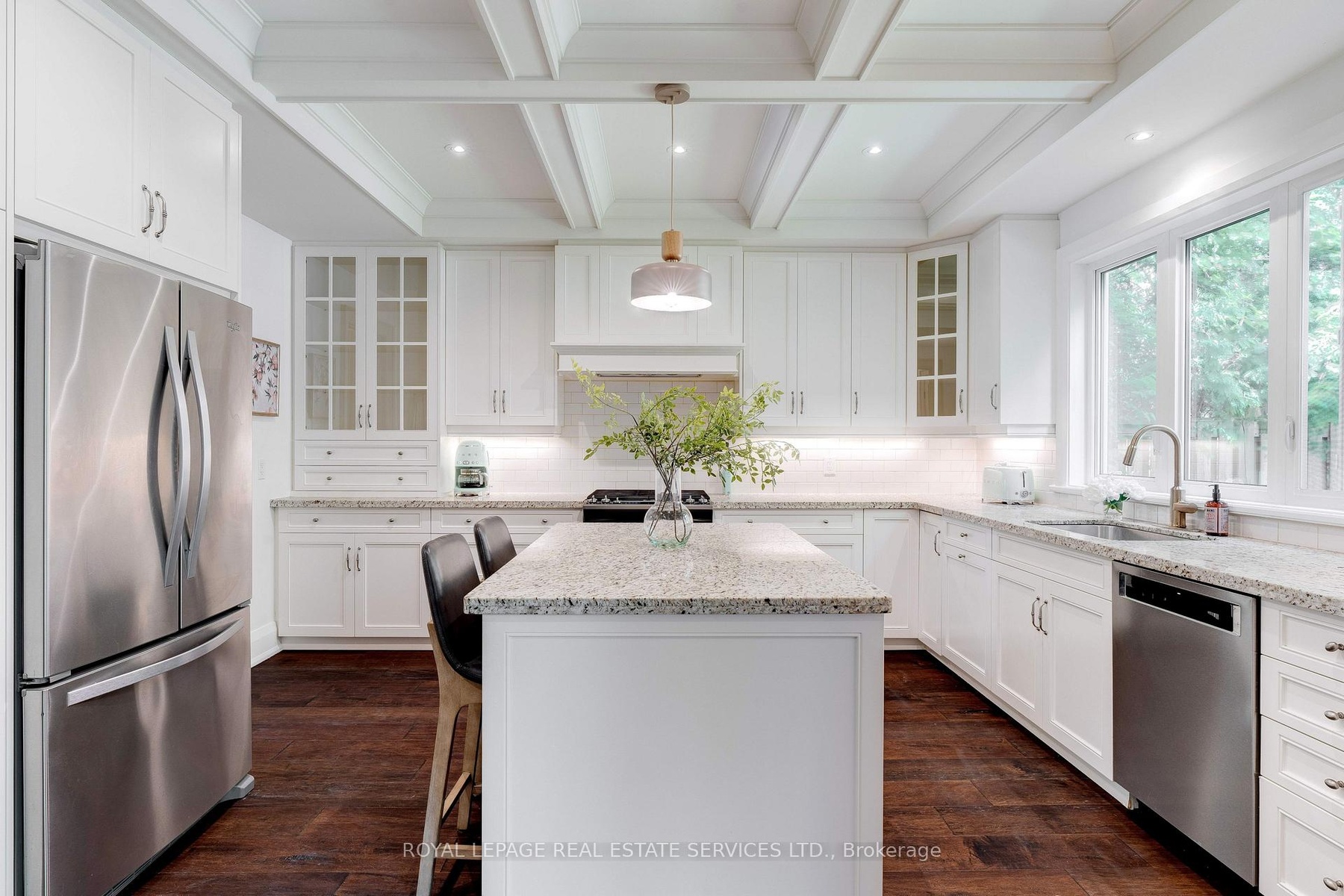 Discover the charm of Old Oakville in this beautifully crafted custom built home, offering nearly 3100 sq ft of finished living space. Thoughtfully designed with a modern influence, it features 9' ceilings, wide plank hardwood floors and custom millwork. The gourmet kitchen includes a large centre island, stainless appliances, granite counters, and a walk-in pantry. The open-concept living and dining area is perfect for entertaining and has a double garden door walkout to the private back yard. The main level flooring and hardwood stairs were just re-done with a rich, matte finish. Also conveniently located on the main floor is a 2pc bath and mudroom/laundry room with broom closet and convenient inside access from the garage. Upstairs, the spacious primary suite features a luxurious 5-piece ensuite with heated floors and a large walk-in closet. Two additional bedrooms are bright and well-sized with double door closets. The finished lower level adds a rec room, 4th bedroom, and 3-piece bath, ideal for overnight guests or a teen retreat. Professionally landscaped last year, the gardens include mature trees & perennials - an irrigation system makes for easy maintenance. The garage has been customized with epoxy floors, overhead storage and slat walls for organizing your tools & gear. Hockey enthusiasts will love the electric roll-down sports screen - perfect for target practice and protects the garage door from damage. Many other updates, including light fixtures and fresh interior painting make this home turn-key. Ideally situated in the heart of Old Oakville, walk to Oakville GO, Whole Foods, Downtown shops, restaurants, and parks from this prime cul-de-sac location. Timeless design, high-end finishes, and unbeatable location make this home a rare find.