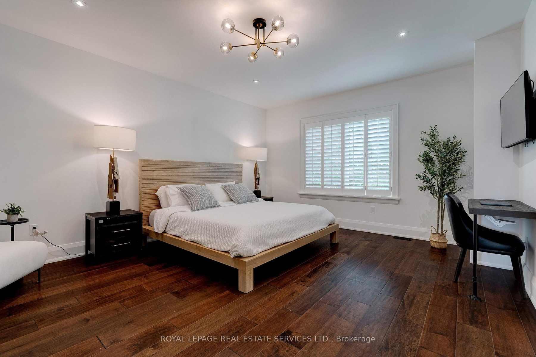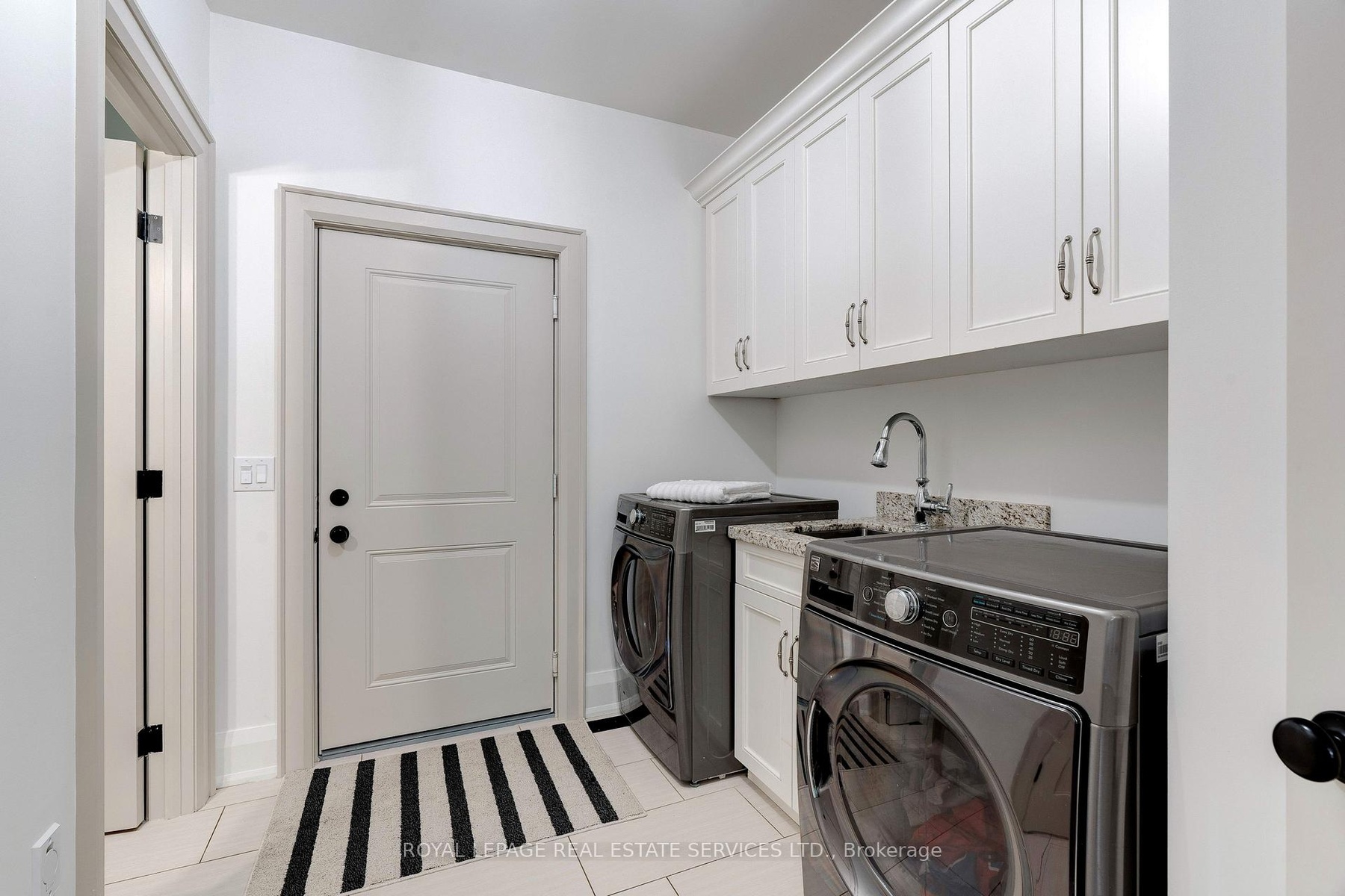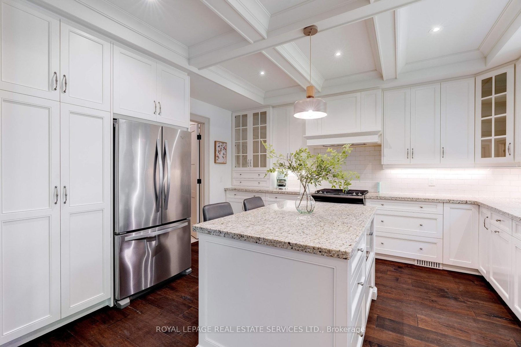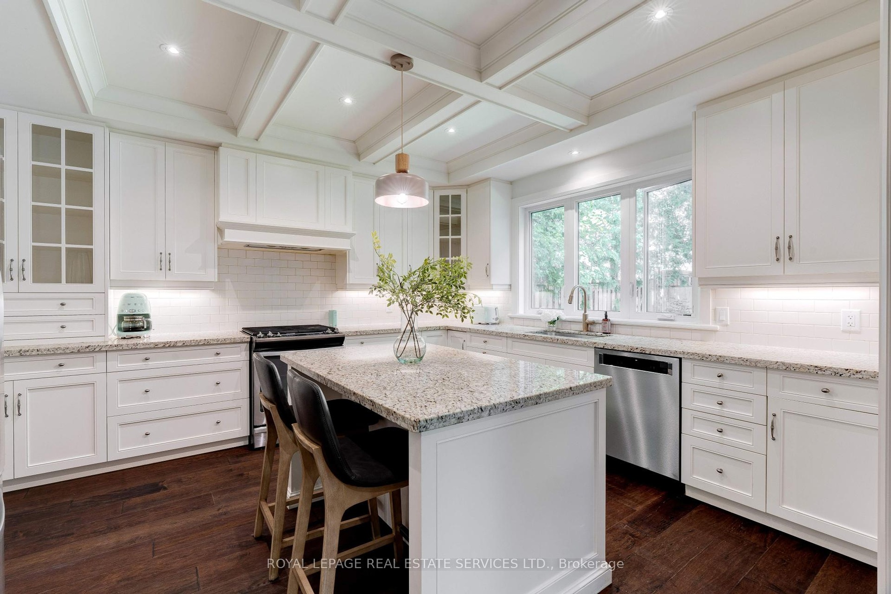 Discover the charm of Old Oakville in this beautifully crafted custom built home, offering nearly 3100 sq ft of finished living space. Thoughtfully designed with a modern influence, it features 9' ceilings, wide plank hardwood floors and custom millwork. The gourmet kitchen includes a large centre island, stainless appliances, granite counters, and a walk-in pantry. The open-concept living and dining area is perfect for entertaining and has a double garden door walkout to the private back yard. The main level flooring and hardwood stairs were just re-done with a rich, matte finish. Also conveniently located on the main floor is a 2pc bath and mudroom/laundry room with broom closet and convenient inside access from the garage. Upstairs, the spacious primary suite features a luxurious 5-piece ensuite with heated floors and a large walk-in closet. Two additional bedrooms are bright and well-sized with double door closets. The finished lower level adds a rec room, 4th bedroom, and 3-piece bath, ideal for overnight guests or a teen retreat. Professionally landscaped last year, the gardens include mature trees & perennials - an irrigation system makes for easy maintenance. The garage has been customized with epoxy floors, overhead storage and slat walls for organizing your tools & gear. Hockey enthusiasts will love the electric roll-down sports screen - perfect for target practice and protects the garage door from damage. Many other updates, including light fixtures and fresh interior painting make this home turn-key. Ideally situated in the heart of Old Oakville, walk to Oakville GO, Whole Foods, Downtown shops, restaurants, and parks from this prime cul-de-sac location. Timeless design, high-end finishes, and unbeatable location make this home a rare find.