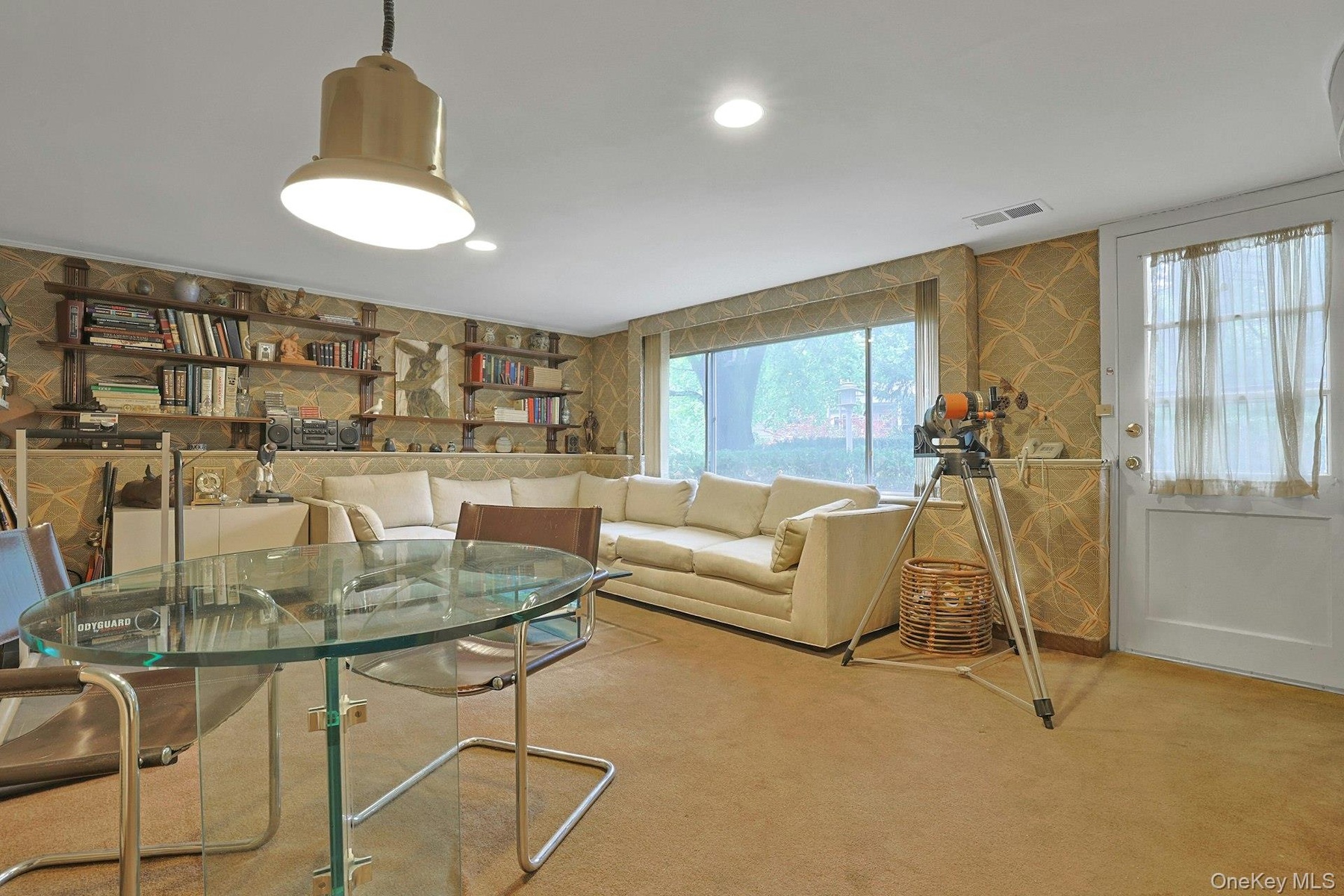 Main level has a spacious living room with fireplace & vaulted ceilings with multiple windows giving wonderful sunlight. This flows seamlessly to the windowed formal dining room. All leading to the eat-in kitchen with classic wood cabinetry and abundant storage.
