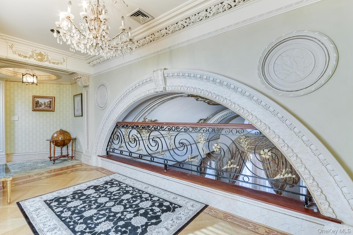 - Soaring ceiling, crystal chandelier and opulent detailing