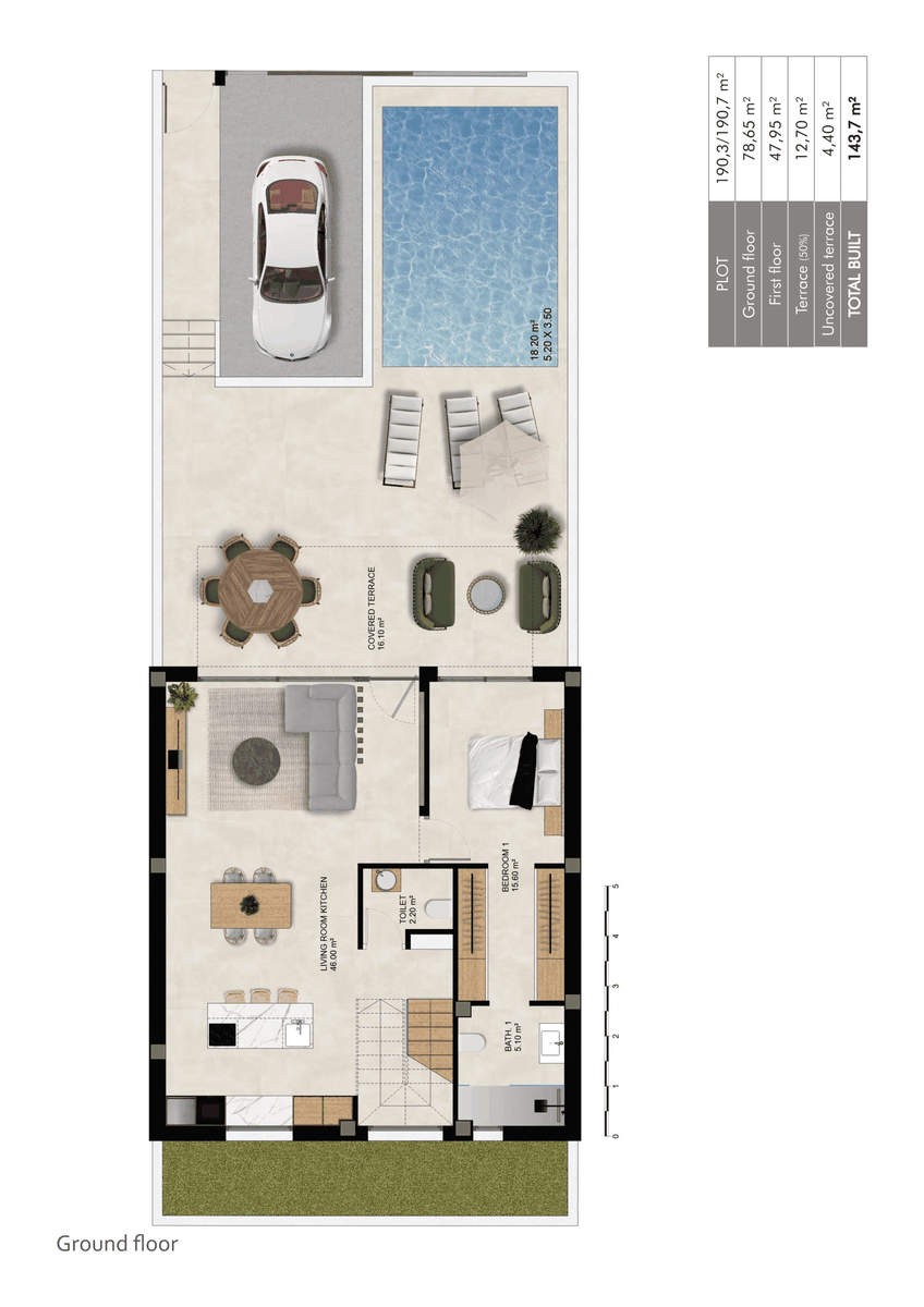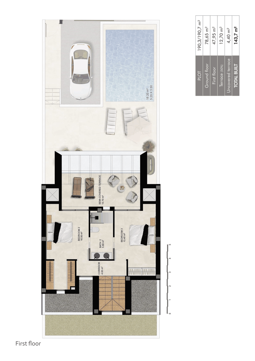 Introducing a limited collection of 20 modern semi-detached and terraced villas in the charming town of Dolores, located in the heart of the Vega Baja region of Alicante. This exclusive development offers a perfect blend of style, comfort, and sustainability, just 12 km from the Mediterranean coast.