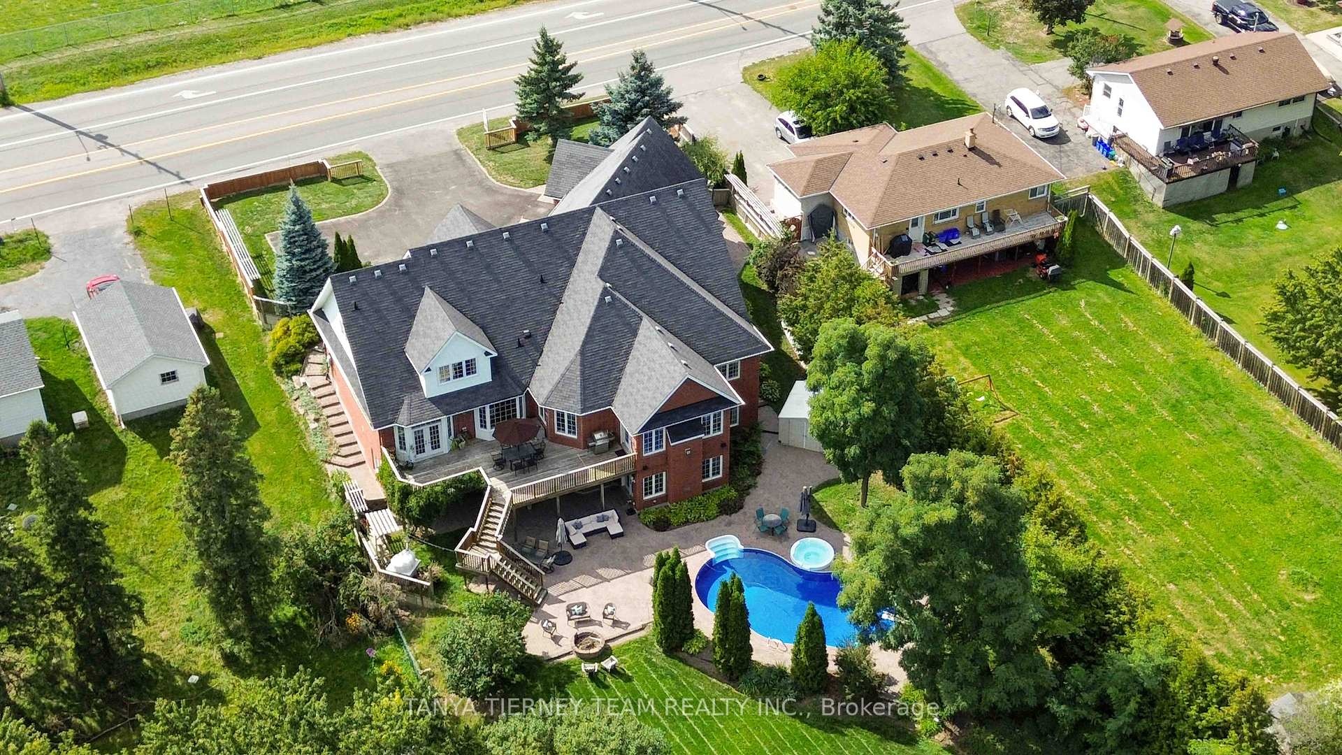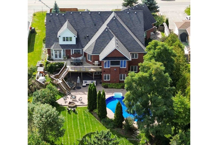 Truly one-of-a-kind, this custom 4+2 bedroom, 5-bathroom estate offers over 6,500 sq ft of luxurious living space on a spectacular 245-ft deep treed ravine lot. Designed with multi-generational living in mind, this home features a spacious open-concept layout, a fully finished walkout basement with separate entrance, and flexible living areas ideal for extended family or in-law accommodation.The gourmet kitchen is the heart of the home, complete with quartz countertops, oversized island, walk-in pantry, built-in coffee bar, and breakfast area overlooking a private backyard retreat. The upper level includes 4 large bedrooms and a media room, while the basement offers 2 additional bedrooms, a large rec room, office, spa-like bathroom, and cozy in-floor hydronic heating-perfect for independent living with comfort and privacy.Step outside to your own resort-style oasis: an elevated deck with ravine views, covered walkout patio, in-ground pool, jacuzzi hot tub, built-in fire pit, gas BBQ hookup, and a handcrafted wood-burning pizza oven. Whether entertaining or unwinding, this backyard has it all.An attached 882 sq ft 3-car garage with heated workshop, garden door access, and ample parking adds function to elegance. Located minutes from Hwy 407 and steps to top schools, parks, big box stores, Cineplex, and more, this exceptional home blends space, style, and multi-generational living in one of Clarington's most desirable settings!