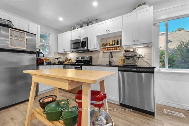 Welcome to this charming 3-bedroom home on desirable Grosvenor Street in the heart of Carling Heights. Step inside to find a beautifully modernized space, perfect for comfortable living. The main floor features an inviting open-concept layout, with an eat-in kitchen that flows seamlessly into the living room. The kitchen is a true highlight, boasting granite countertops, a stylish backsplash, and stainless steel appliances. The 5-piece bathroom includes a modern double-sink vanity, perfect for busy mornings. The spacious primary bedroom offers a private retreat, complete with a walk-in closet and a direct walk-out to the back deck, where you can enjoy your morning coffee. The basement provides a fantastic opportunity to create your ideal living space, with a rough-in for a future bathroom, and a separate entrance, making it a blank canvas ready for your personal touch. This home's location is a commuter's dream, just a short walk from shopping, recreation center, hospital, and Oxford Street.