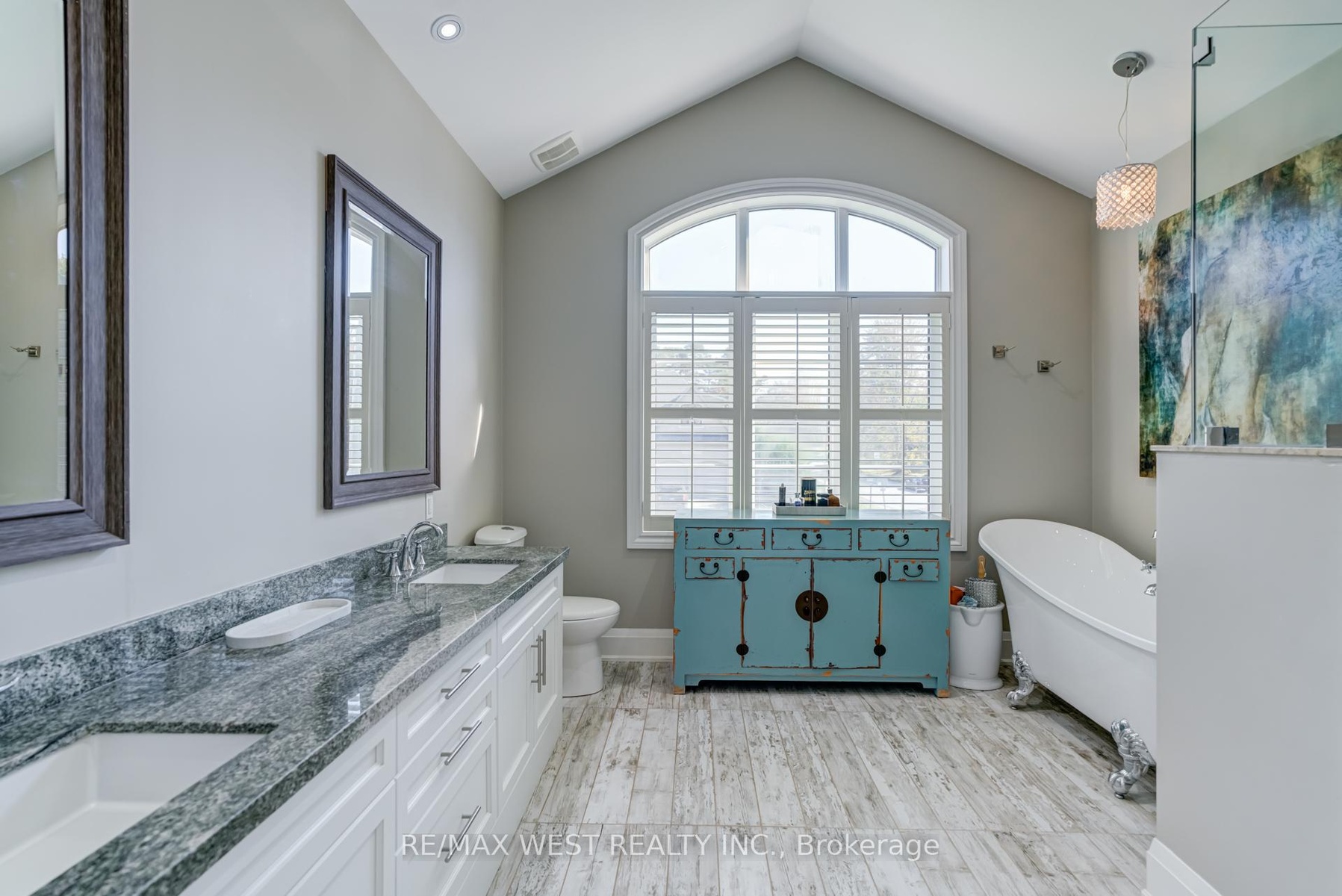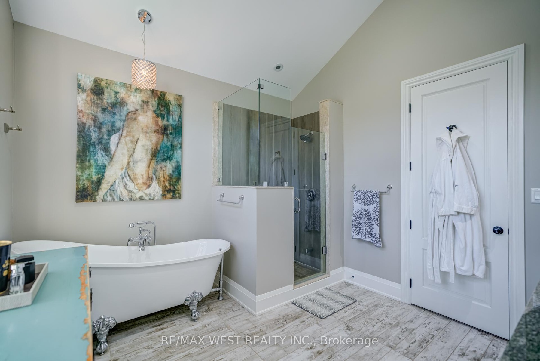 Welcome to 108 Hambly Ave., a custom-built detached home in one of King City's most coveted neighbourhoods, surrounded by other high-end luxury residences. This immaculate, turn-key property exudes elegance and pride-of-ownership at every turn. From the moment you arrive, you're greeted by the stucco and stone façade, charming covered front porch, and modern solid-wood front door. Inside, rich hardwood floors, LED pot lights, automated blinds and meticulous trim details elevate every space. The great room and dining room feature coffered tray ceilings with moulding, pot lights and decorative accent wall designs. The bright, open-concept kitchen is an entertainer's dream with a massive 9 ft x 5 ft centre island, dual undermount sinks, mini-wine fridge, under-cabinet lighting and generous counter space. A main floor office offers the perfect work-from-home setup, while the stunning oversized laundry room with walkout to the rear patio adds convenience and style. Upstairs, the primary suite impresses with a tall tray ceiling, walk-in closet, multiple windows and Juliette balcony. The grand 6-piece ensuite features a vaulted ceiling, freestanding soaker tub, dual vanities and a glass shower. The finished basement extends the living space with an electric fireplace, full bathroom, open-concept recreational area ideal for kids or gatherings and additional storage. Outside, lush landscaping frames the property with cedars, grasses, hedges, and flowers. The expansive rear deck spans the width of the home and includes a gas-line hookup. Outdoor cabana offers a covered patio, interior living room and 3-piece bath, perfect for outdoor entertaining. The garage has a separate electrical panel setup for future landscape/pool requirements.The driveway has been newly resealed, and the west-facing backyard bathes the home in natural light. This home is unique, well-crafted and a rare find-shows to absolute perfection!