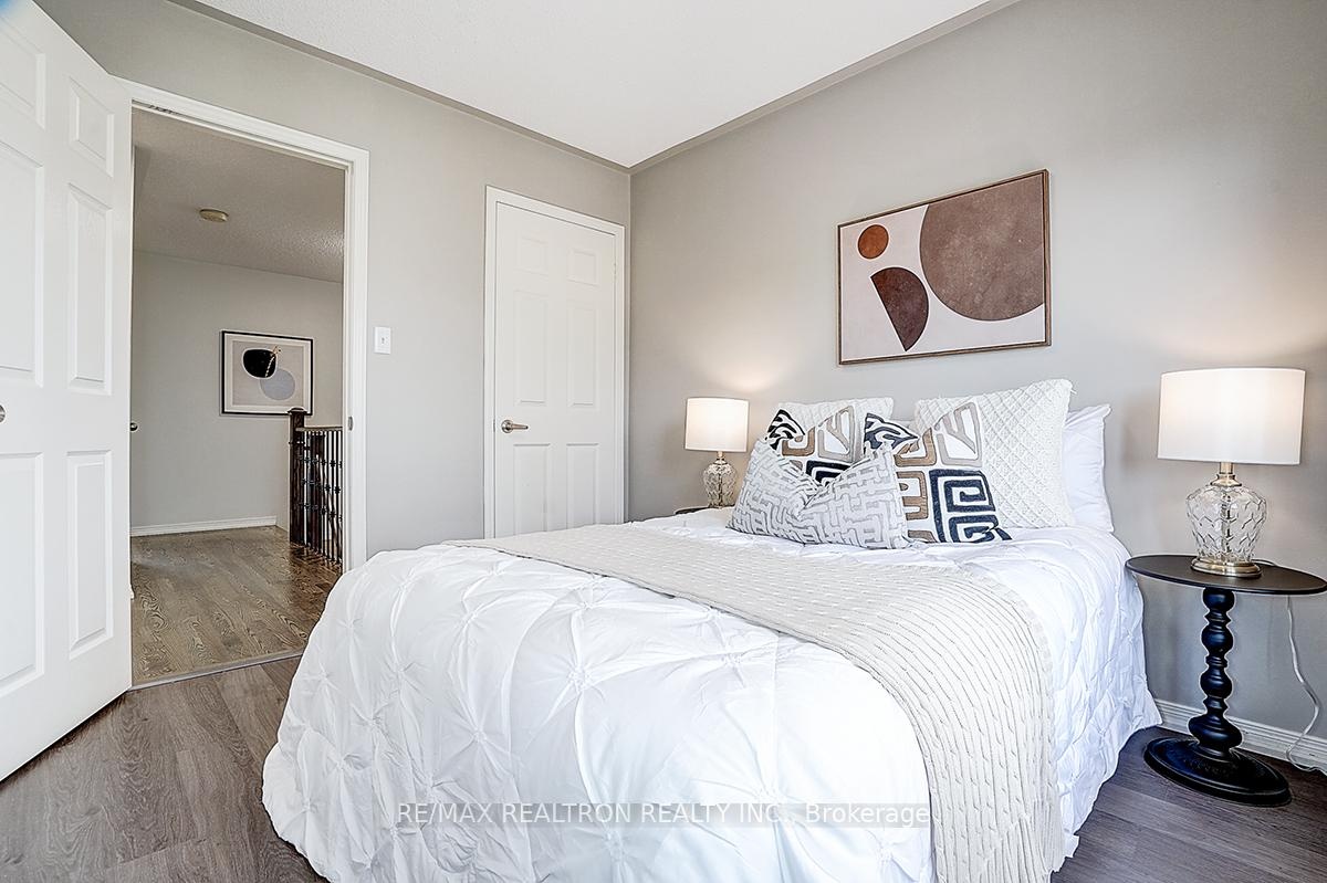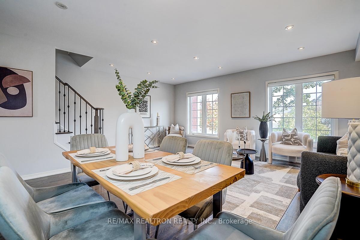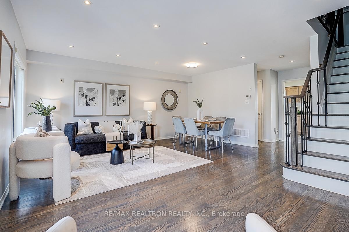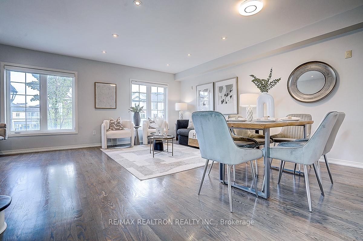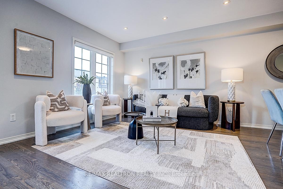 Welcome to this beautifully maintained 3+1 bedroom, 4 bath freehold townhome in the highly sought-after Berczy community, within the top-rated Stonebridge PS & Pierre Elliott Trudeau HS school zone. Enjoy peaceful greenbelt views with a private backyard and deck offering extra privacy. This home features hardwood and laminate flooring throughout, modern renovated bathrooms, pot lights in the living room, and a stained staircase with iron pickets. The den on the ground floor can easily serve as a 4th bedroom or home office. The primary bedroom includes an ensuite and walk-in closet. Convenient visitor parking right in front and direct access to the garage. Steps to transit, grocery stores, restaurants, and parks. A bright, welcoming home that has been lovingly cared for - truly move-in ready!