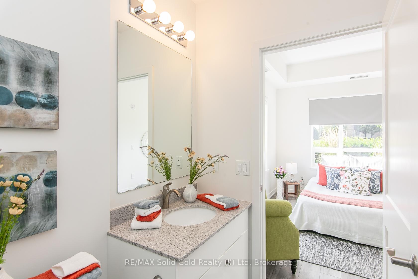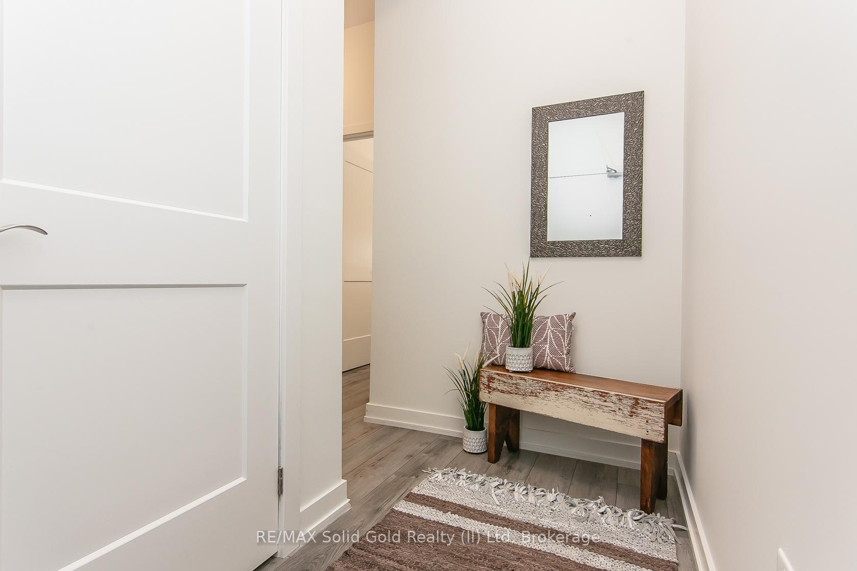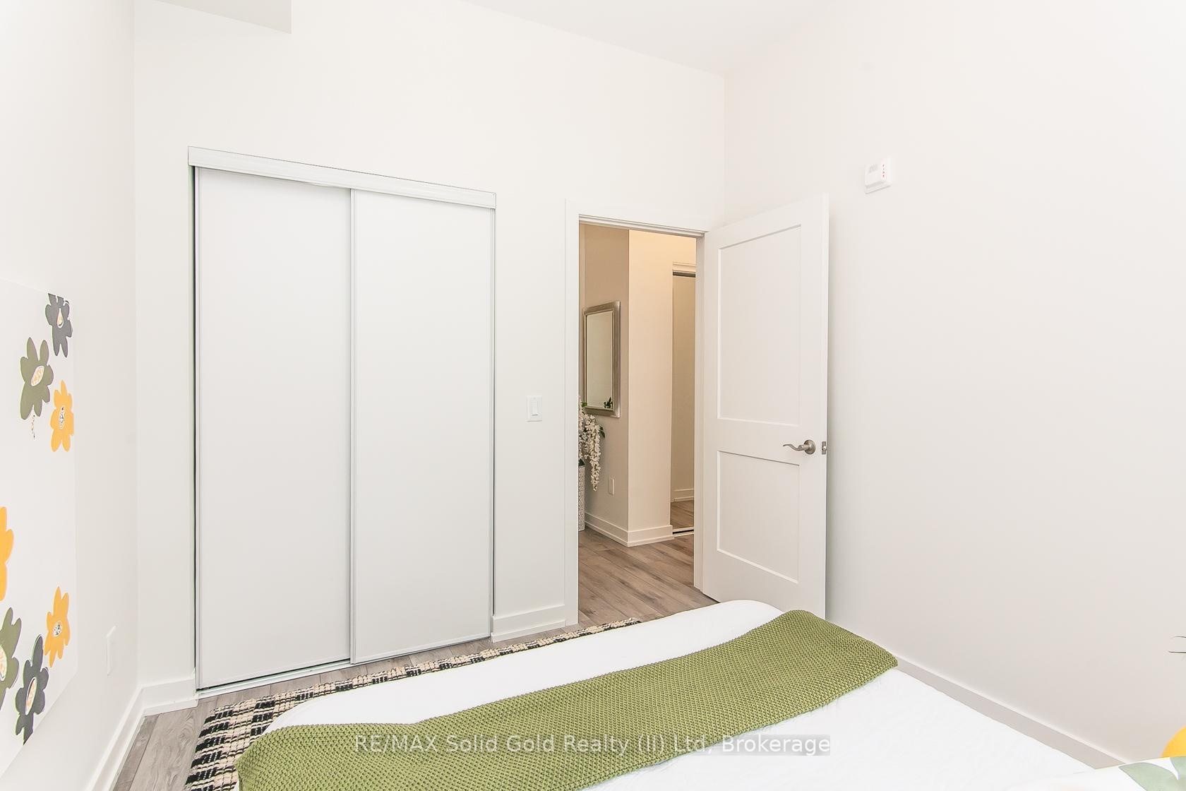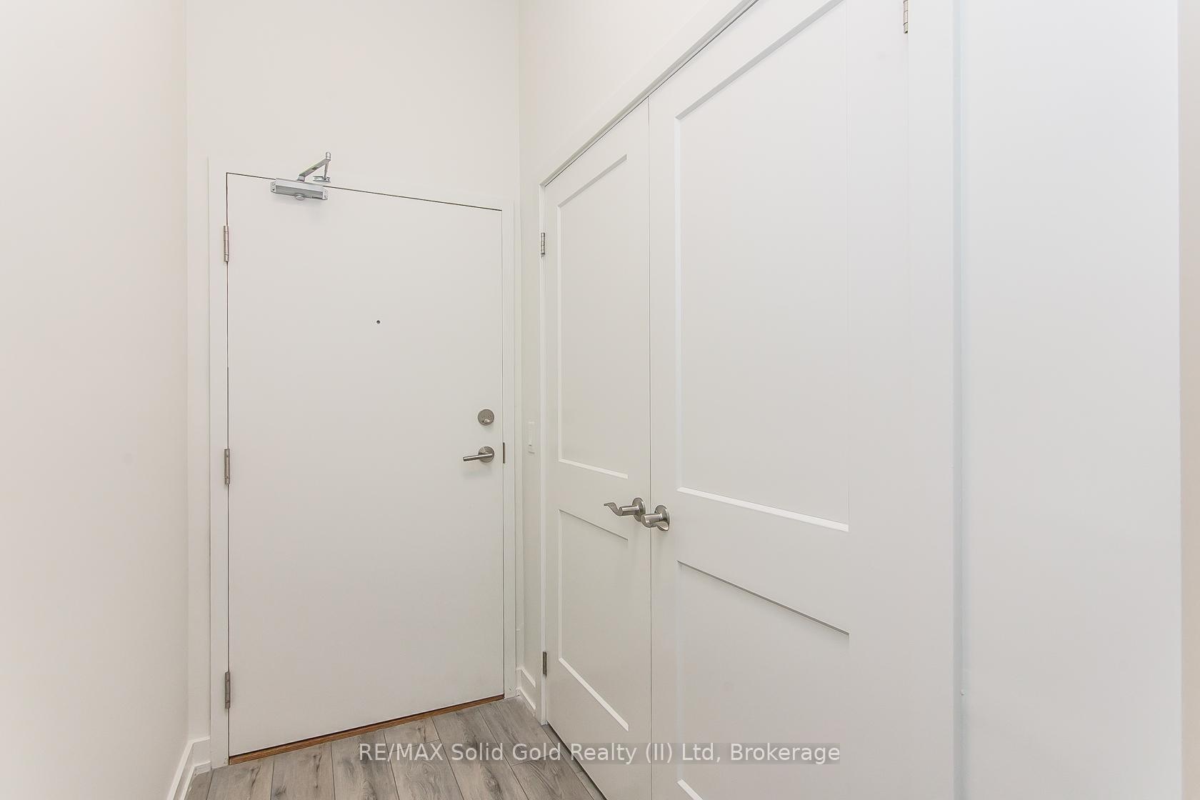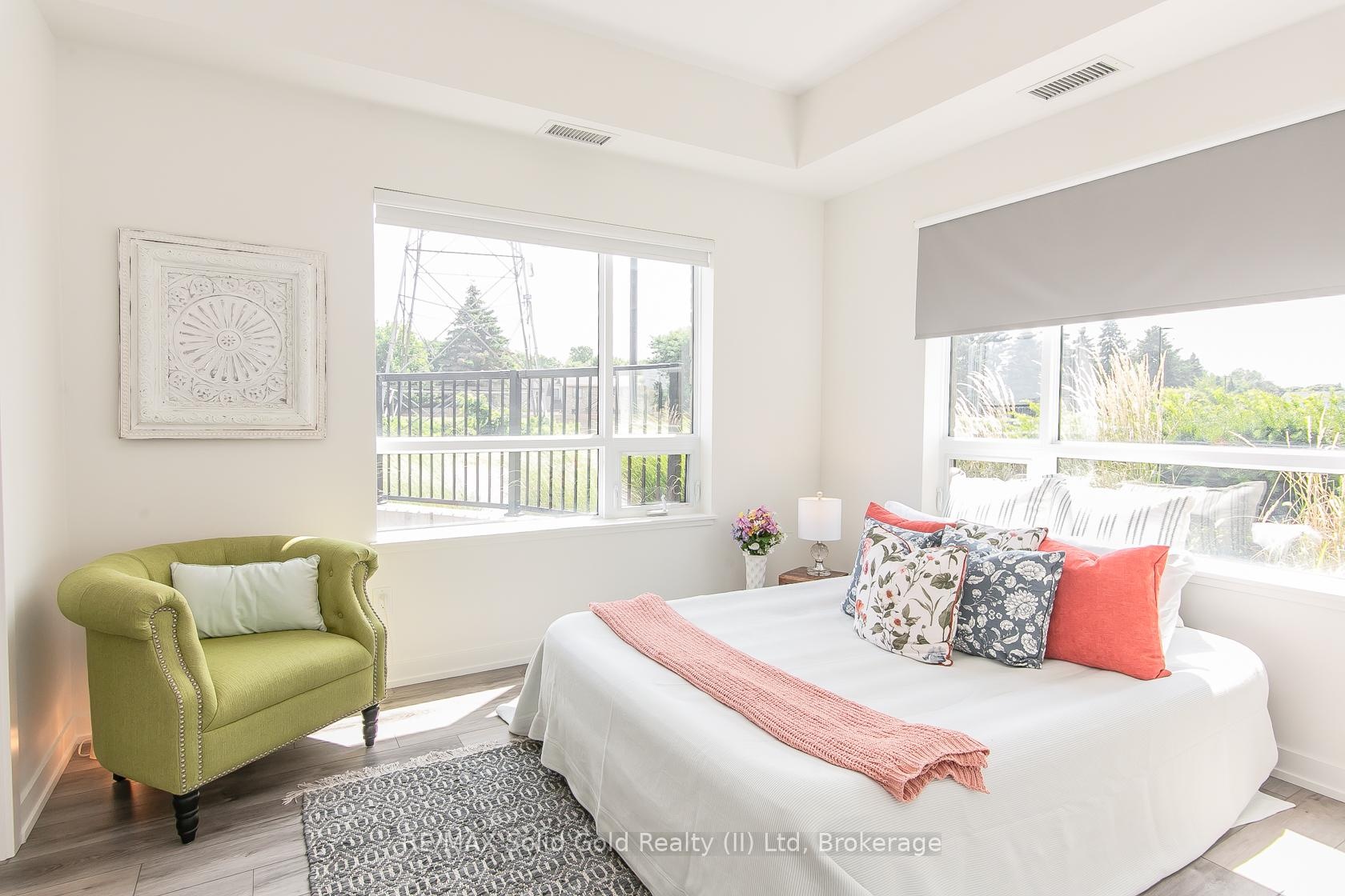 Ground-floor living meets ultimate convenience at Blackstone! This modern 2-bedroom, 2-bath condo offers over 800 sq. ft. plus a massive 270 sq. ft. private patio with natural gas hookup perfect for BBQs or a fire table. Ideal for dog owners, walkers, and cyclists, you can drop groceries at your door, skip the elevators, and enjoy easy in-and-out access. Inside, you'll find an upgraded kitchen with a granite topped island with built-in microwave, stainless steel appliances, under-mount sink with new faucet, extended upper cabinets, white subway tile backsplash, and plenty of pull-out drawers. The open-concept layout features luxury laminate flooring throughout completely carpet-free. The spacious primary suite includes its own bathroom, while the second bedroom and full bath offer flexibility for guests or a home office. A large laundry closet with stackable washer and dryer adds everyday practicality. Freshly painted and move-in ready, this unit also gives you access to Blackstones impressive amenities: a stylish party room, business centre, and fitness facility.