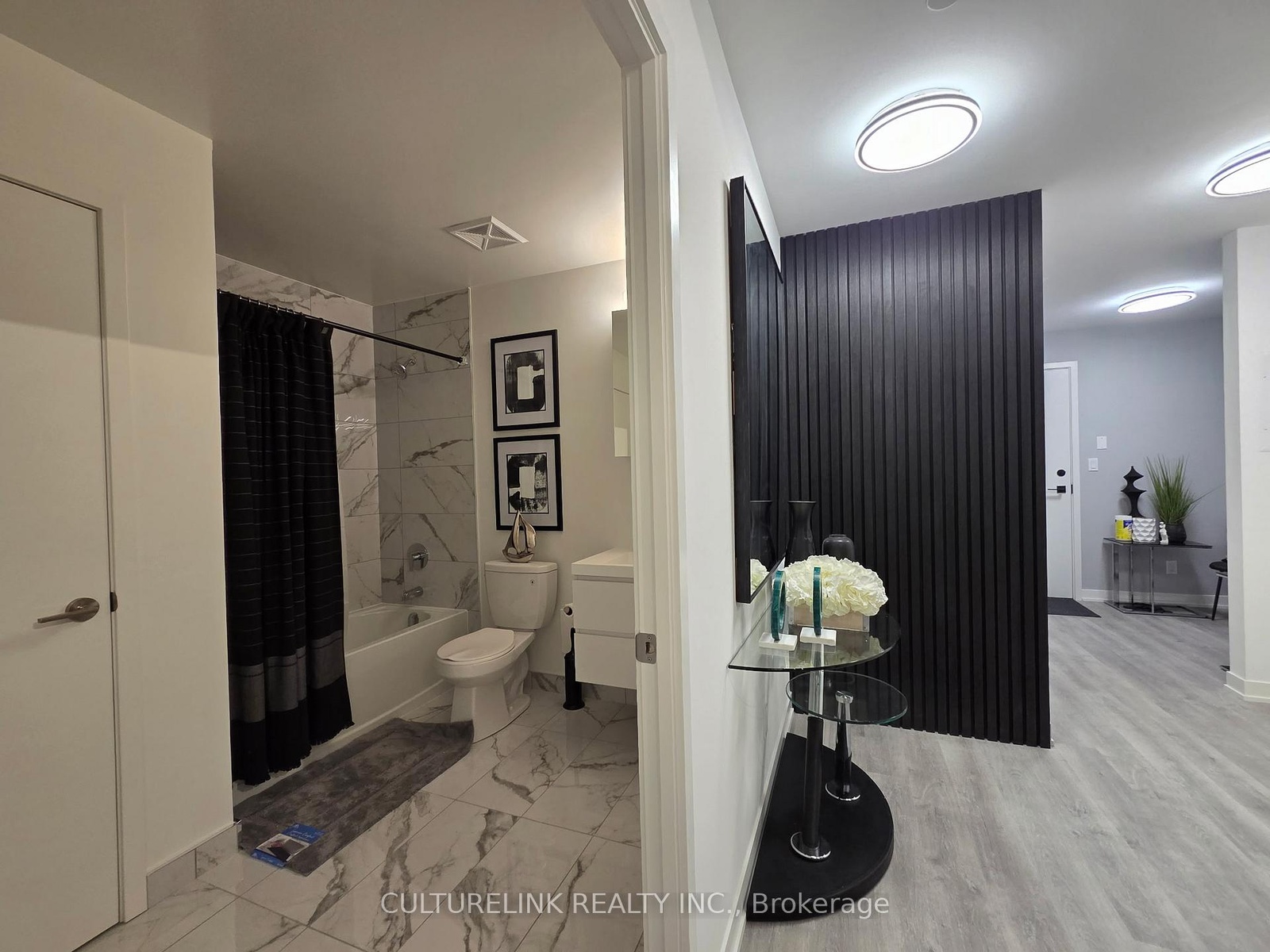 Welcome to this newly built modern 1+1 bedroom, 2-bathroom condo in the heart of Downtown Markham. This bright and spacious 627 sq ft unit offers a functional open-concept layout with 9 ft ceilings, laminate flooring, and a versatile den- ideal for a home office or guest space. The upgraded kitchen features Bosch stainless steel appliances and granite countertops. Enjoy added convenience with two full bathrooms, one parking spot, and a locker, all with low maintenance fees. This building offers premium amenities: Outdoor Basketball Court, Gym, BBQ terrace, Games Lounge, Party Room. Steps away from York University Markham Campus, Cineplex, Restaurants, Shops. Minutes To Hwy 404 & 407 and GO Station. Bus stop At Doorstep. Top Ranking Unionville Schools.