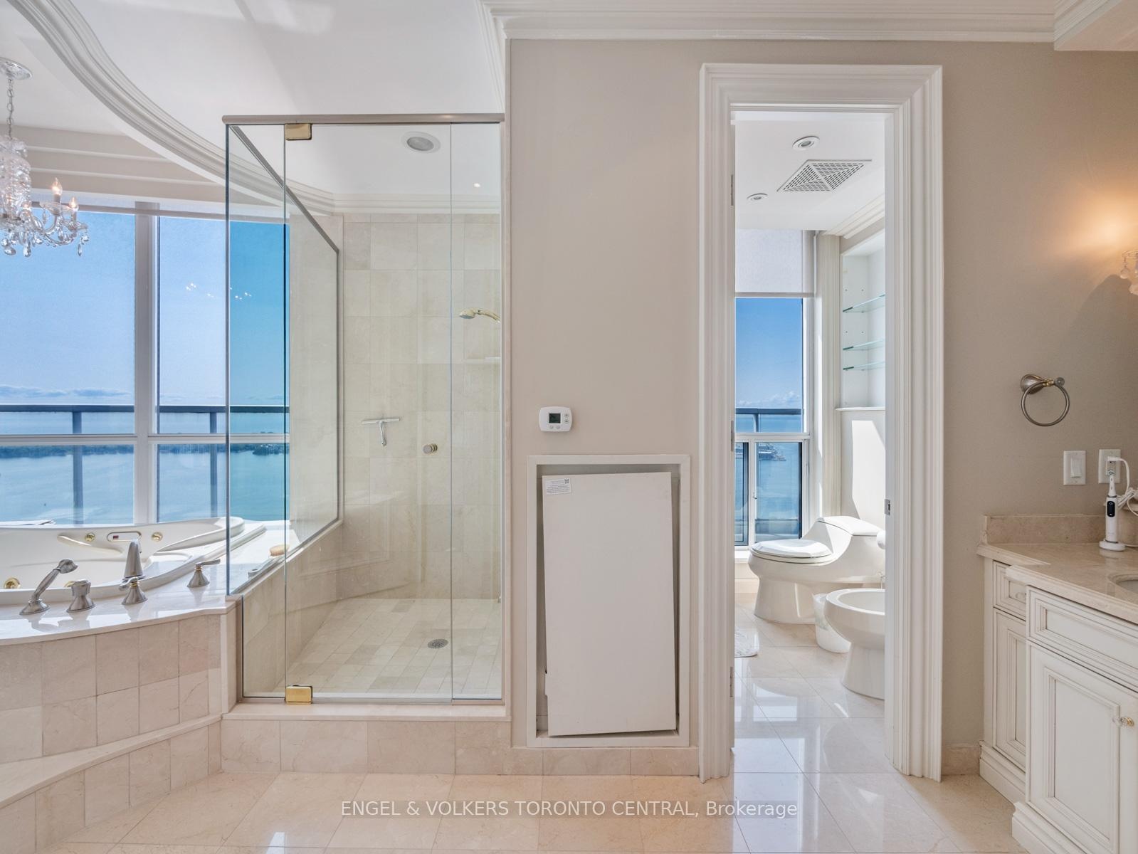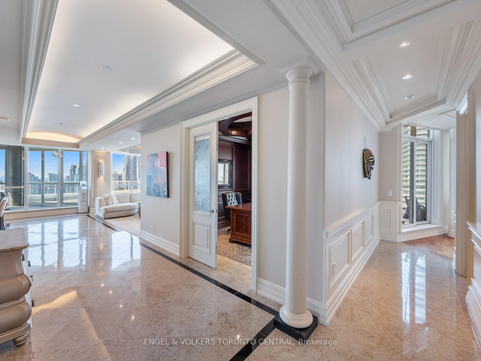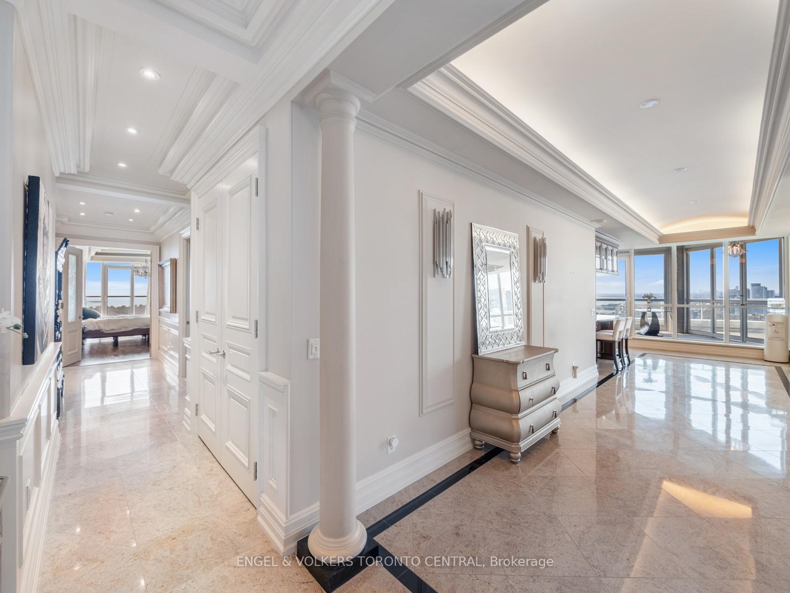 A Luxurious Furnished Penthouse Overlooking Lake Ontario & Toronto's Iconic SkylineWelcome to an extraordinary 3,000 sq.ft. furnished penthouse suite that redefines elevated urban living. Designed with timeless sophistication and unparalleled attention to detail, this residence features an expansive 1,500 sq.ft. wraparound terrace and sunroom offering sweeping, unobstructed views of Lake Ontario and Toronto's dazzling city skyline.The grand foyer makes a commanding first impression, leading into classic principal rooms that exude warmth and refinement. Exquisite wood paneling, coffered ceilings, and detailed crown moldings lend a sense of old-world craftsmanship, while the generous, open-concept layout provides a seamless flow for both everyday living and sophisticated entertaining.At the heart of the home, the gourmet kitchen and adjoining family room serve as the perfect gathering space-showcasing custom cabinetry, premium appliances, and elegant finishes that combine form and function.Every corner of this penthouse speaks to luxury and comfort, from its curated furnishings to its thoughtfully designed living spaces that transition effortlessly to the panoramic terrace-ideal for alfresco dining, morning coffee, or evening sunsets over the lake.Offering the ultimate in privacy, prestige, and panoramic beauty, this exceptional residence is a rare opportunity to experience refined city living at its finest.