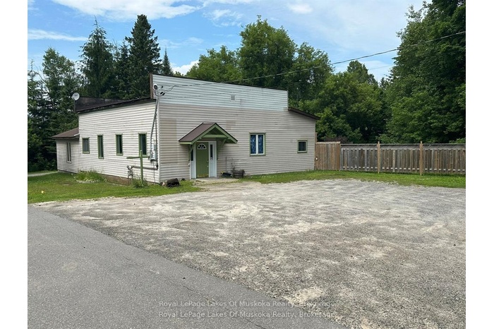 Versatile and highly visible commercial and residential space located on the busy main thoroughfare into and out of the up and coming village of Burk's Falls. Located at the busy south end of town this property currently hosts a two bedroom apartment and commercial space with separate entrance and washroom facility but there are so many options available for this space. The existing commercial space could be reduced in size and the apartment expanded for extra living space for the existing two bedroom apartment if someone wanted - pending township approvals. An amazing opportunity for someone to live in the residential space and have their small business in the commercial space. The options are endless with this property which has easy access to highway 11 and a wonderful, good sized rear yard which is flat and great for kids. Walking distance to downtown amenities and schools this property would be great for so many reasons.