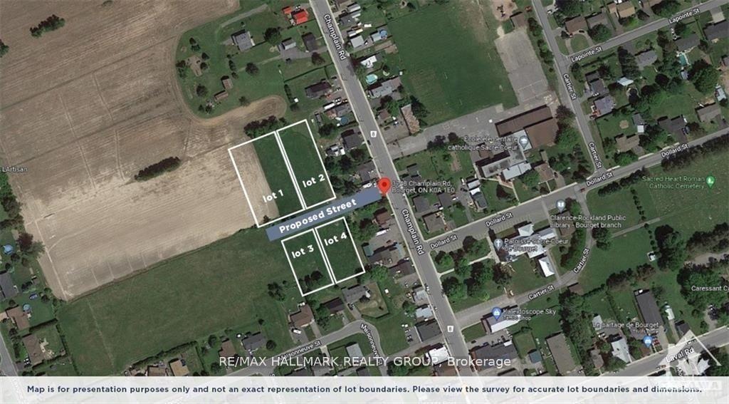 Ready to consider building? This building lot in the heart of charming Bourget is the one for you! No rear neighbours and directly across from the french elementary school. Potential to build up to 20 unit residential building on this lot. Centrally located lot within walking distance to all the villages amenities such as schools, library, shops, grocery store and more.