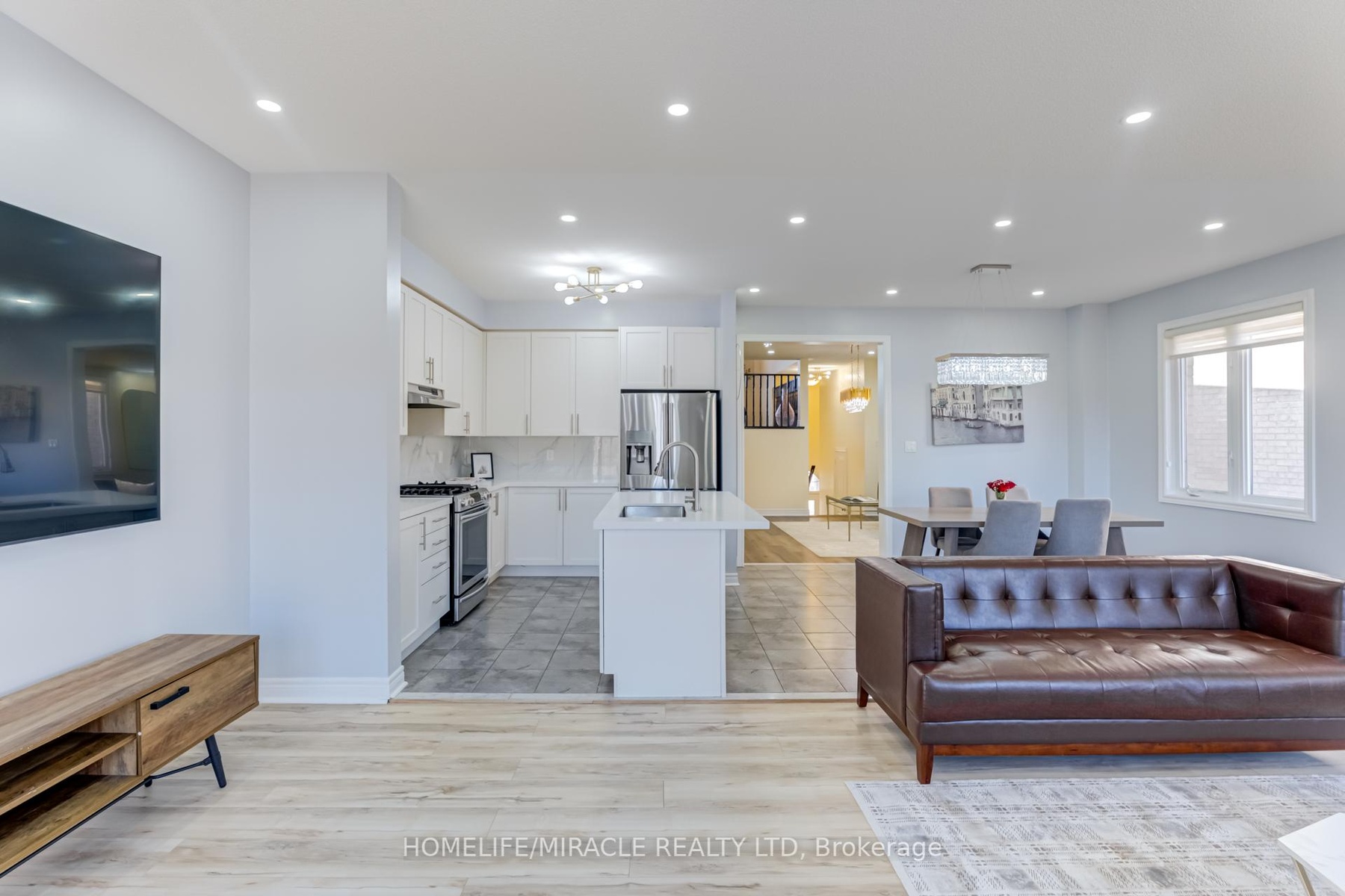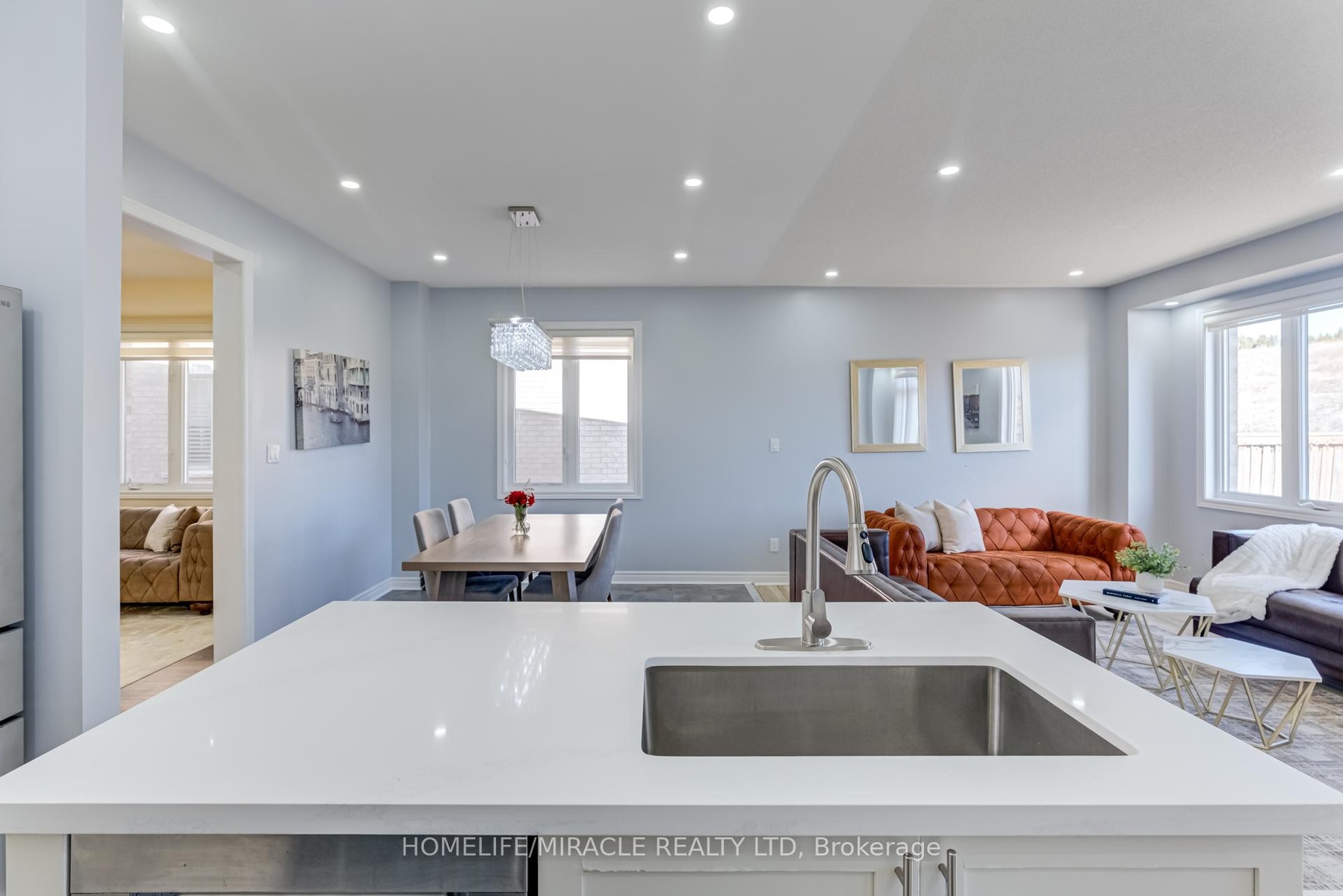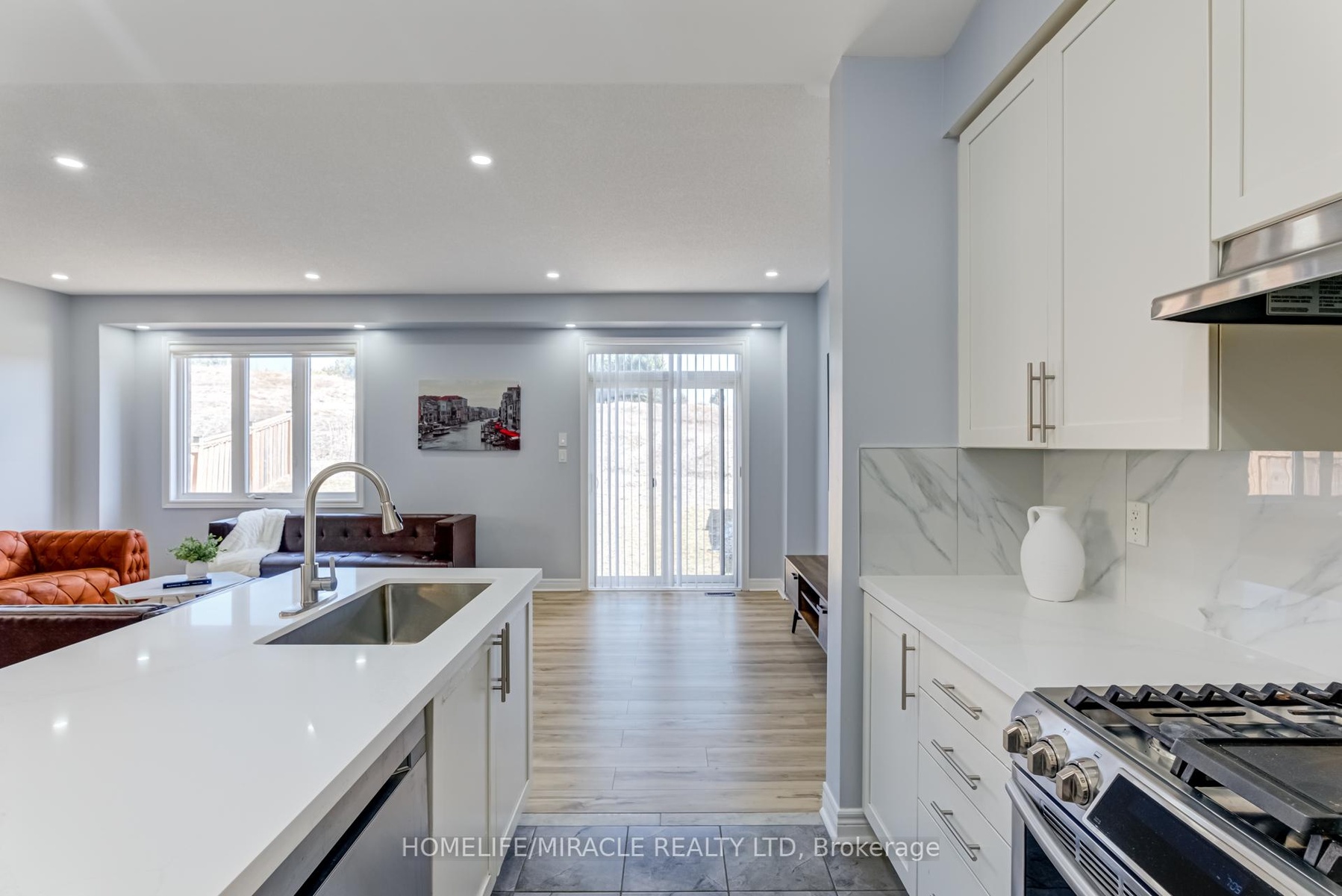 This stunning double-car garage home is located in Alliston's most prestigious, family-oriented community. Offering over 2,100 sq. ft. of above-grade space and a total of approximately 3,000 sq. ft. of living area, this residence is perfectly designed for comfort and functionality. Situated on a spacious pie-shaped lot, the home features a walkout basement leading to the garage. The fully finished basement includes a full bathroom and boasts high ceilings, making it ideal for entertaining or as a potential rental unit for additional income. Enjoy privacy with no sidewalk and no neighbors behind. The expansive family/great room includes a balcony, perfect for hosting large gatherings or enjoying family entertainment. The newly upgraded kitchen is a chefs dream, featuring quartz countertops, a stylish backsplash, a gas stove, and modern pot lights throughout. Elegant flooring extends across the entire home, enhancing its sophisticated appeal. This exceptional property offers a rare combination of luxury and practicality.