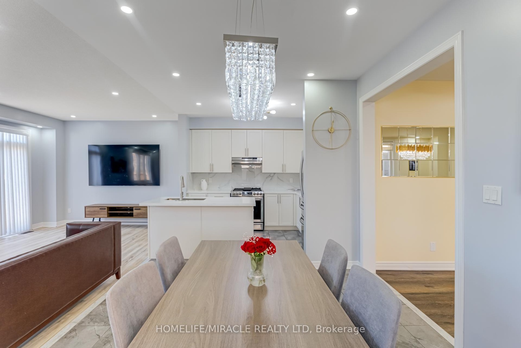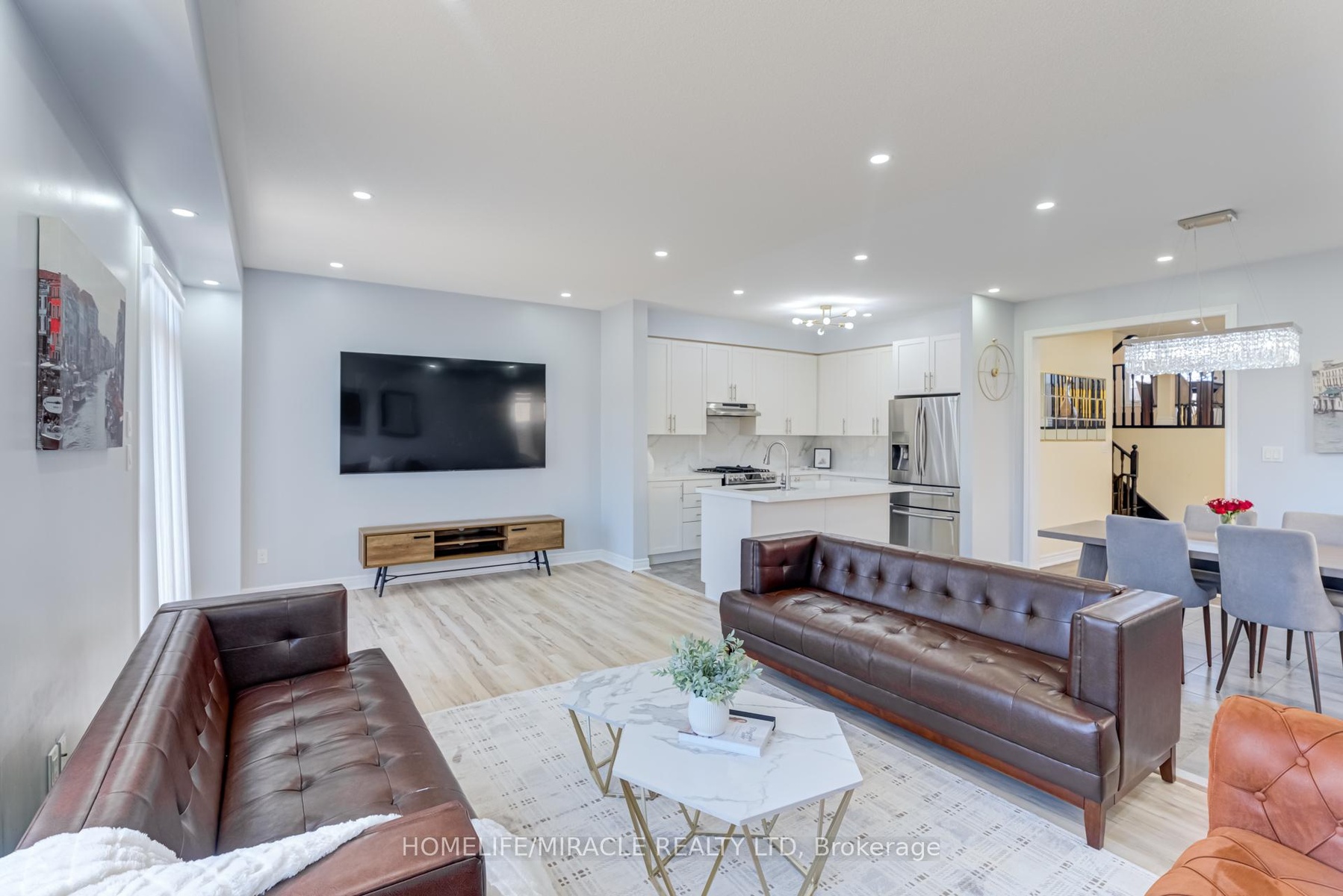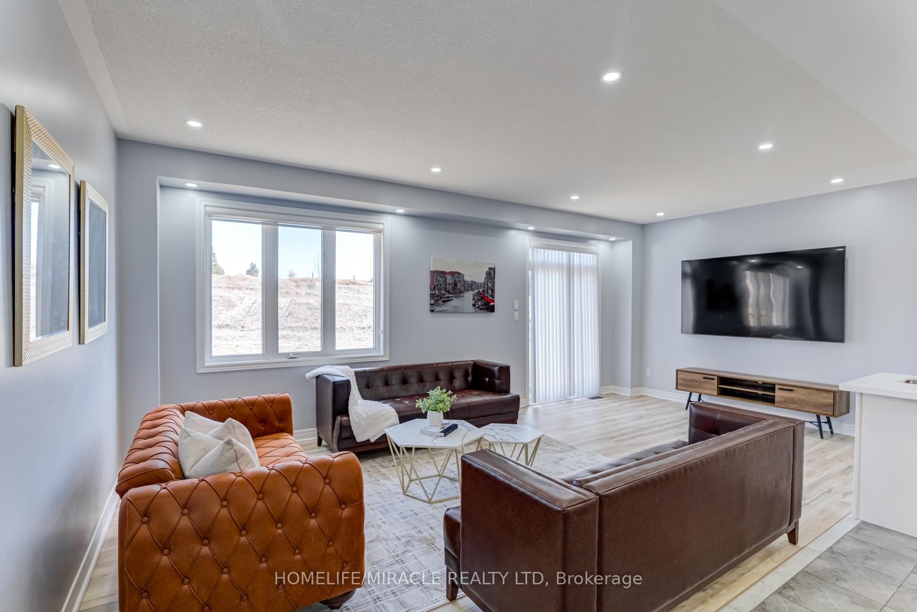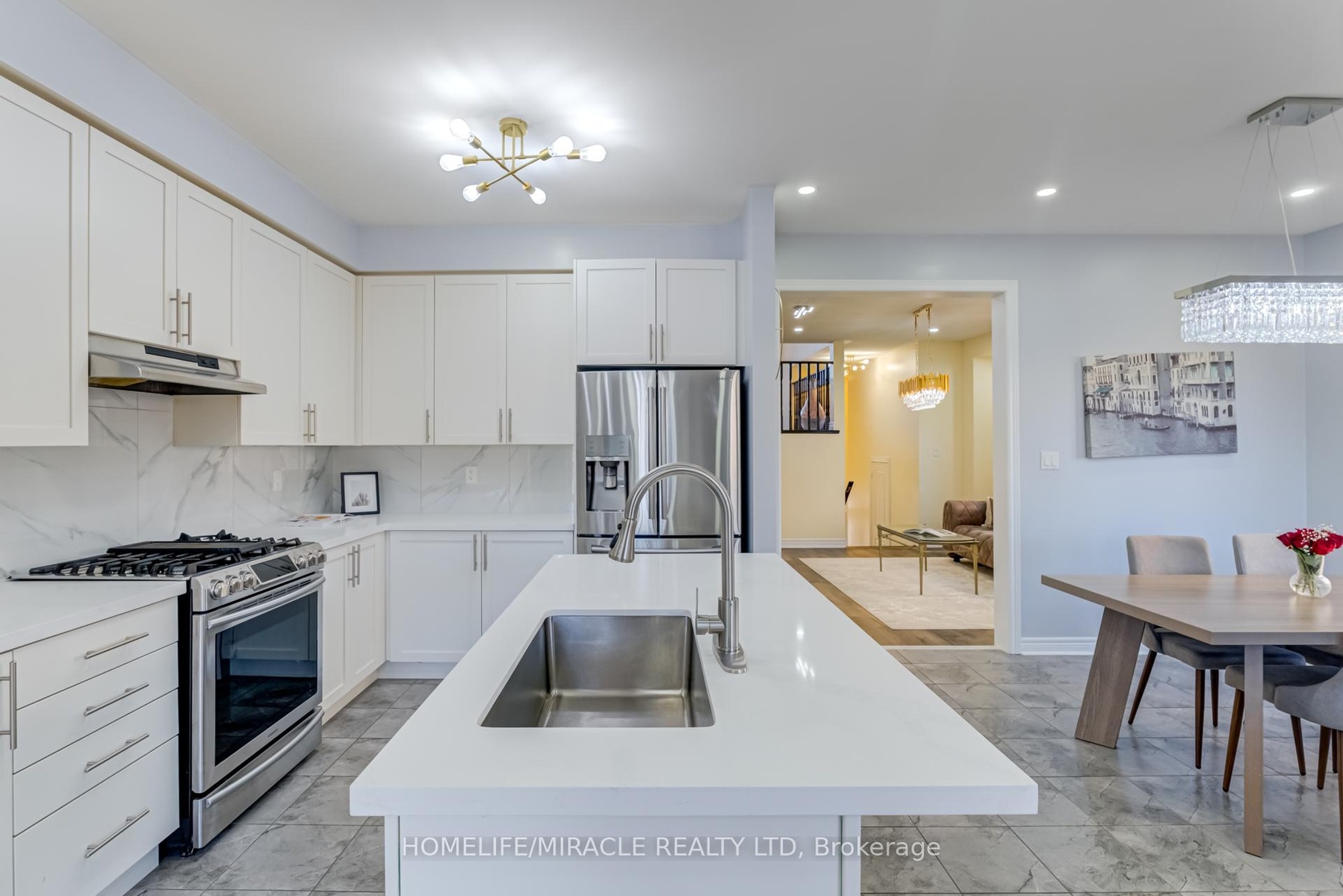 This stunning double-car garage home is located in Alliston's most prestigious, family-oriented community. Offering over 2,100 sq. ft. of above-grade space and a total of approximately 3,000 sq. ft. of living area, this residence is perfectly designed for comfort and functionality. Situated on a spacious pie-shaped lot, the home features a walkout basement leading to the garage. The fully finished basement includes a full bathroom and boasts high ceilings, making it ideal for entertaining or as a potential rental unit for additional income. Enjoy privacy with no sidewalk and no neighbors behind. The expansive family/great room includes a balcony, perfect for hosting large gatherings or enjoying family entertainment. The newly upgraded kitchen is a chefs dream, featuring quartz countertops, a stylish backsplash, a gas stove, and modern pot lights throughout. Elegant flooring extends across the entire home, enhancing its sophisticated appeal. This exceptional property offers a rare combination of luxury and practicality.