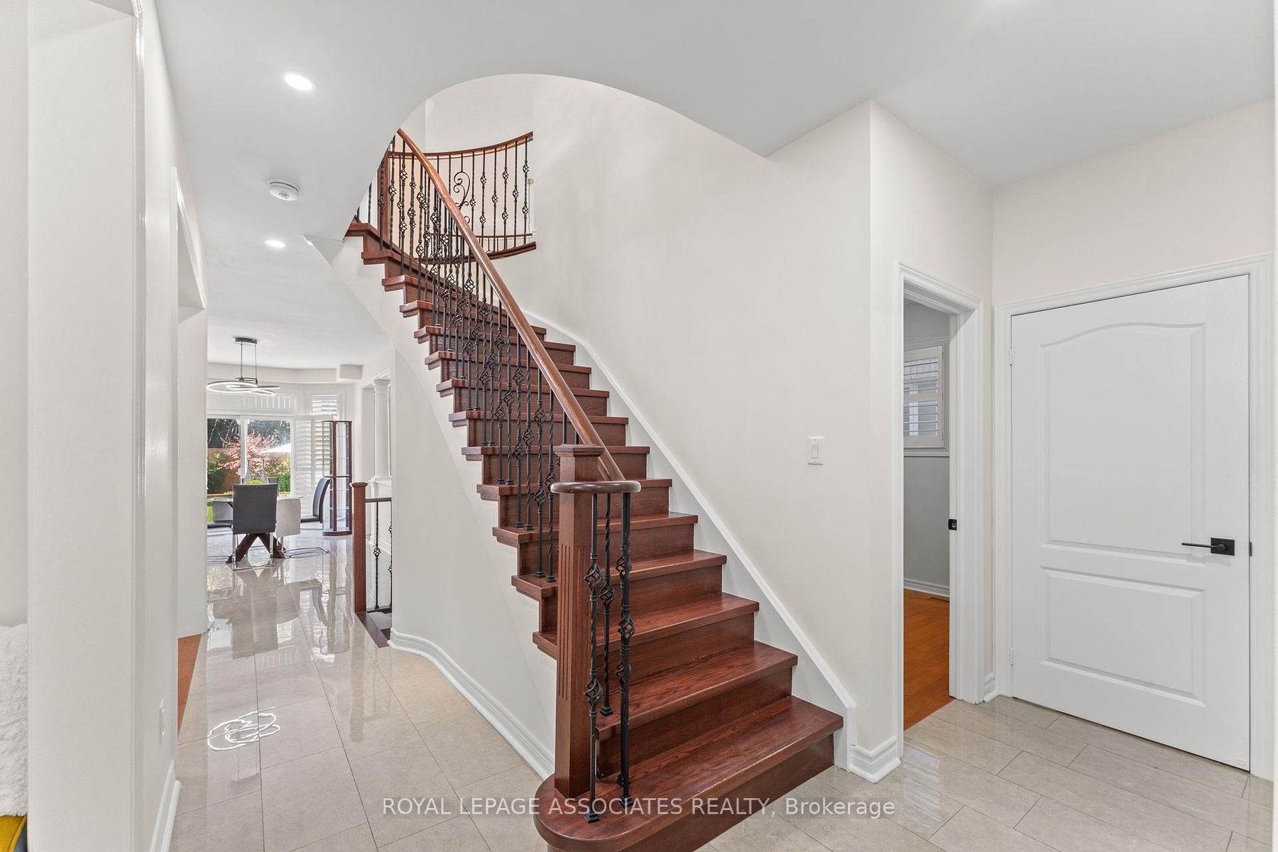 88 Showboat Crescent offers a refined blend of elegance and comfort. Nestled on a quiet, family-friendly street surrounded by parks and scenic trails, this beautifully updated 4+2 bedroom, 5-bathroom detached home showcases approximately 4,025 sq. ft. of impeccably finished living space The main floor office is perfect for those working from the comfort of home. Elegant formal living and dining rooms, a cozy family room with a gas fireplace and soaring ceilings, and a gourmet kitchen featuring quartz countertops, a stylish backsplash, stainless steel appliances, and a spacious breakfast area with a walkout to the garden create an inviting atmosphere. The main level boasts 9-foot smooth ceilings, hardwood flooring, California shutters, pot lights, and modern light fixtures throughout. A striking hardwood spiral staircase with wrought iron pickets leads to the upper level, which features four generously sized bedrooms including one with semi-ensuite access while the primary suite serves as a private retreat, complete with his and hers closets and a spa-inspired 4-piece ensuite with a soaker tub and separate shower. The finished legal basement apartment with a separate entrance includes two more bedrooms, a full bath, a fully equipped kitchen with stainless steel appliances, separate laundry, and ample storage space ideal for extended family or rental income. Additional highlights include upgraded lighting fixtures throughout, a 200-amp electrical panel, freshly painted interiors, and a new roof. Set on a private, fully fenced ravine lot with stamped concrete, exterior pot lights, and beautiful landscaping, this home offers easy access to major highways including the410, 407 and 401, Shopping, schools, a nearby hospital, and transit options are all just minutes away, making this a perfect location for families or professionals alike.