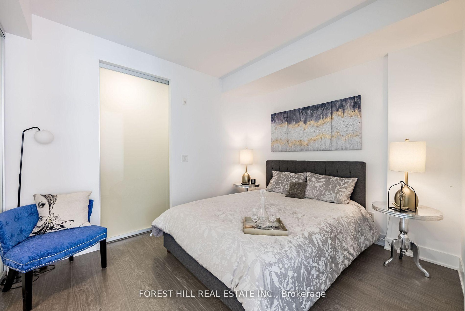 South-Facing 783 Sq.ft Executive Suite in the Heart of King West. Spacious and bright 1-bedroom loft with floor-to-ceiling windows and stunning south-facing city views. This custom-designed783 Sq.ft unit features wide-plank laminate flooring, a modern kitchen with stainless steel appliances, boasting a large island with ample seating space and a spacious open concept layout. The primary bedroom offers a his & her walk-in closet, plus a stylish ensuite with both a stand-up shower and soaker tub. Located directly across from 'The Well' Toronto's newest hub for shopping, dining, and entertainment. Situated between two parks, steps to nightlife, dog park, transit, and major highways (Gardiner& DVP). Urban living at its best in the vibrant King West District.