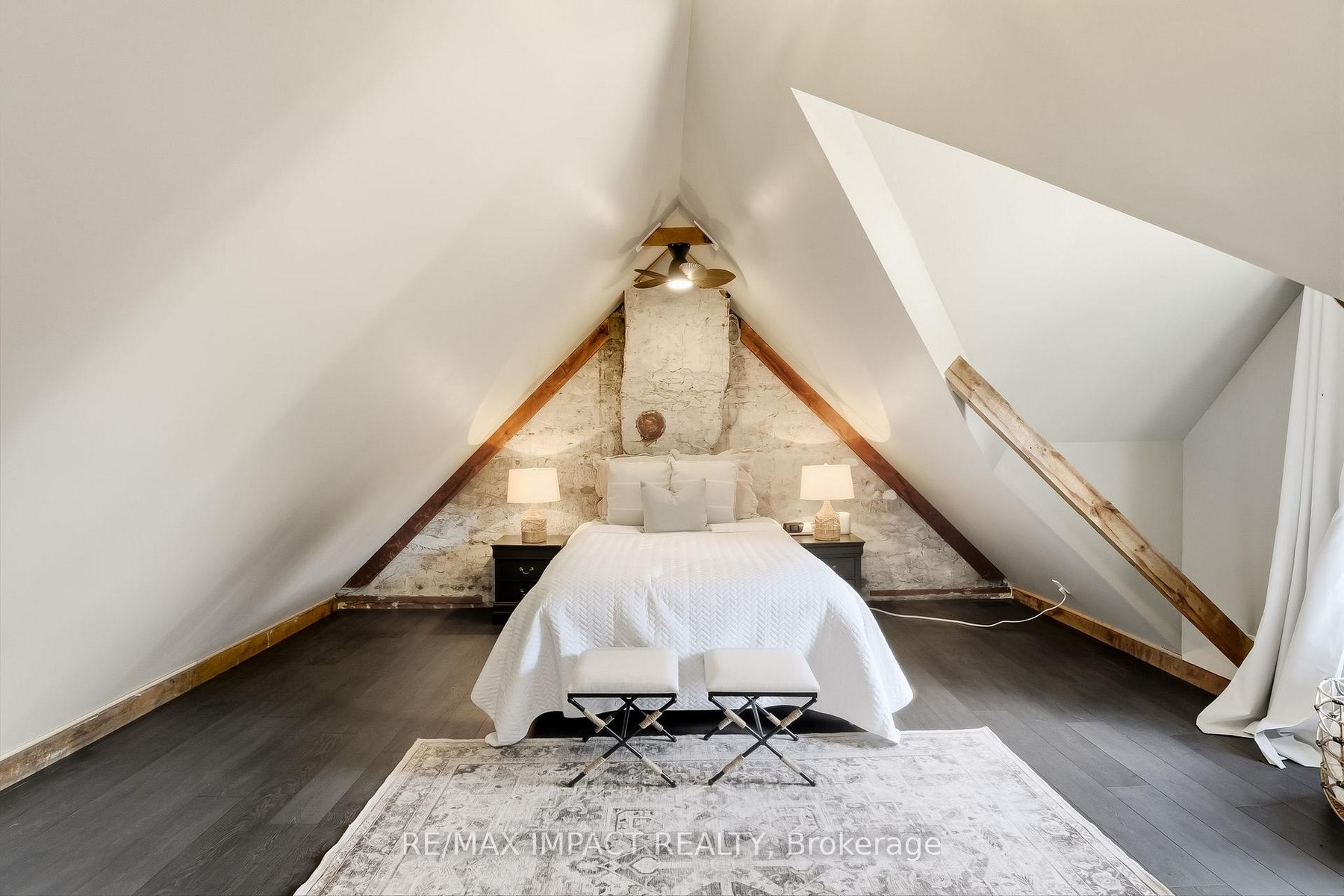 CENTURY CHARM MEETS MODERN LIVING! Discover the charm of Garden Hill in this spacious century home that blends character with confidence. Set on 0.791 acres in a quiet country setting, it offers original warmth with practical modern upgrades. Hardwood flooring, vintage hardware, and classic architectural details highlight the home's history while newer electrical, plumbing, roof, and a 5-ton, 2-line geothermal heating system provide long-term reliability and cost efficiency. Newly finished primary bedroom is dreamy and enviable, two loft spaces can be fully finished to increase living space (above family room and shop). Spa-like bathroom is unique and spacious, kitchen is exceptionally roomy, and there is endless space to gather (or escape). The true standout feature is the detached, heated garage and workshop with a versatile loft above. Ideal for trades, hobbyists, storage, a home business, or creative space, this shop provides the kind of functionality that is hard to find. The charm continues outdoors with mature trees, fruit trees, and open green space along with a garden shed and chicken coop for true country living. Welcome home to your perfect blend of charming country living, modern upgrades and the shop that will have your entire circle envious.