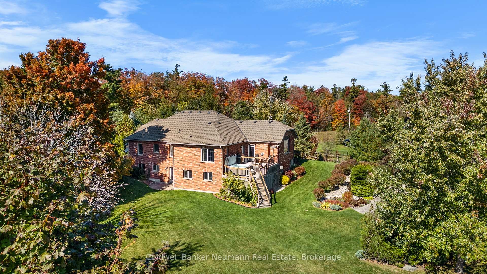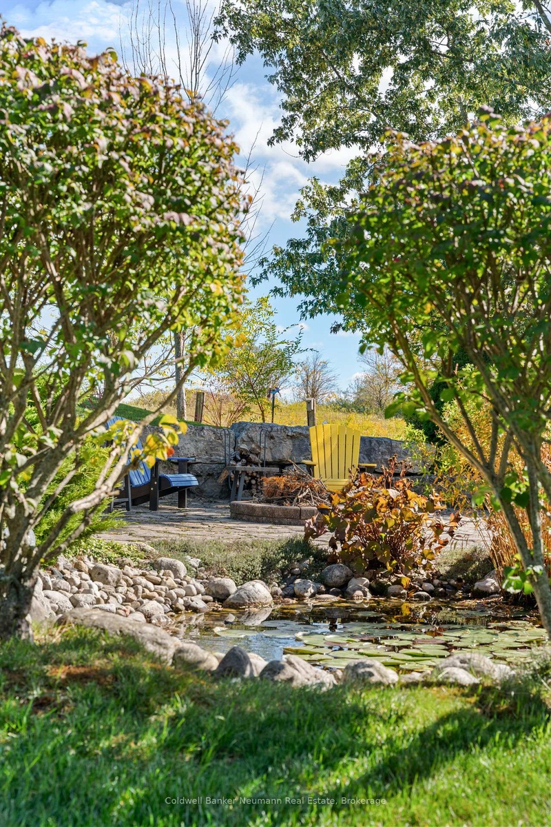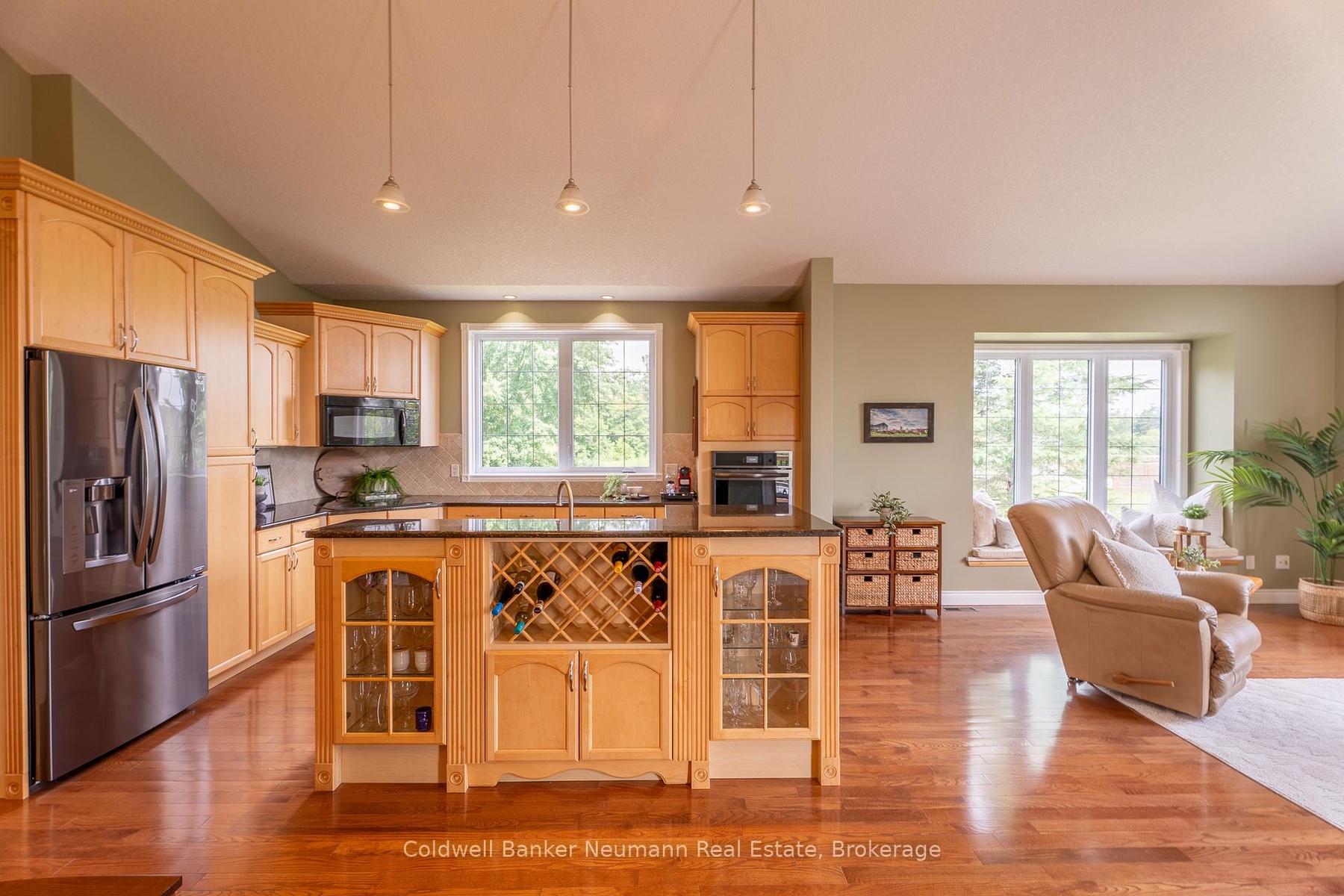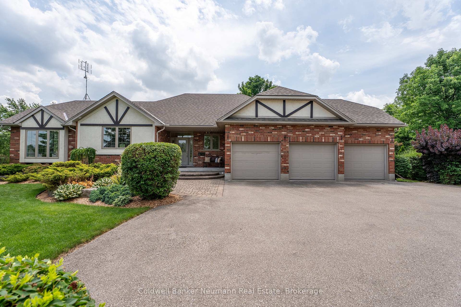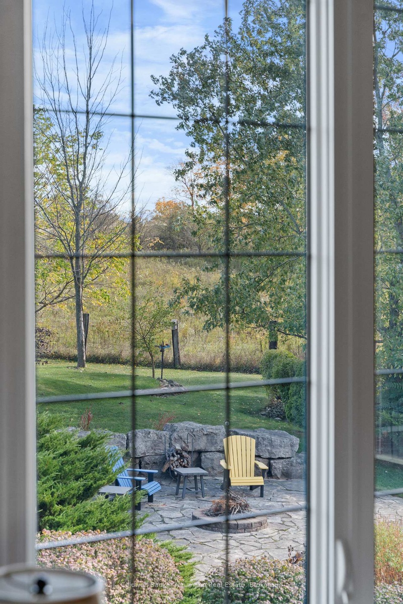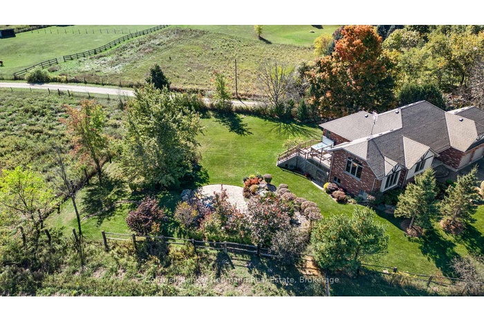 Welcome to 7677 Maltby Rd E-a beautifully maintained rural retreat on a private, tree-lined acre minutes from Guelph and major commuter routes. Offering peace and privacy, this home is the perfect place to embrace the crisp fall season and the beauty of country living. The main floor features an open-concept layout with a spacious living area, cozy gas fireplace, and functional kitchen equipped with quality appliances, including a new Frigidaire convection wall oven (2025). The primary suite, complete with generous ensuite and direct access to the back deck, is conveniently located on this level, along with two additional bedrooms and another 4pc bathroom. The finished basement expands the living space with incredible flexibility. A fourth bedroom with soaker tub and second gas fireplace makes an ideal private retreat. The large recreation room, den/office, laundry, and storage provide even more functionality, while the walk-out to the backyard adds potential for an in-law suite, home business, or versatile extension of your living space. Step outside and enjoy the fall colours or gather around the fire pit on the stone patio next to the pond. Unwind in the hot tub under a canopy of autumn stars. The backyard offers space for a pool, gardens, or entertaining-with no septic tile to limit your options. An environmentally friendly biofilter system is tucked out of the way in the front portion of the property, keeping the backyard wide open for whatever you imagine. Another highlight is the attached three-bay garage with sink and backyard access, offering excellent space for vehicles, hobbies, or a workshop setup. Recent updates include Lennox furnace (2025); LG 3-door refrigerator with water and ice maker (2019); roof shingles with ice and water shield (2019); and kitchen and living room windows (2019). Solid, move-in-ready, and ideally located, this home blends the quiet of country life with the convenience of city access.