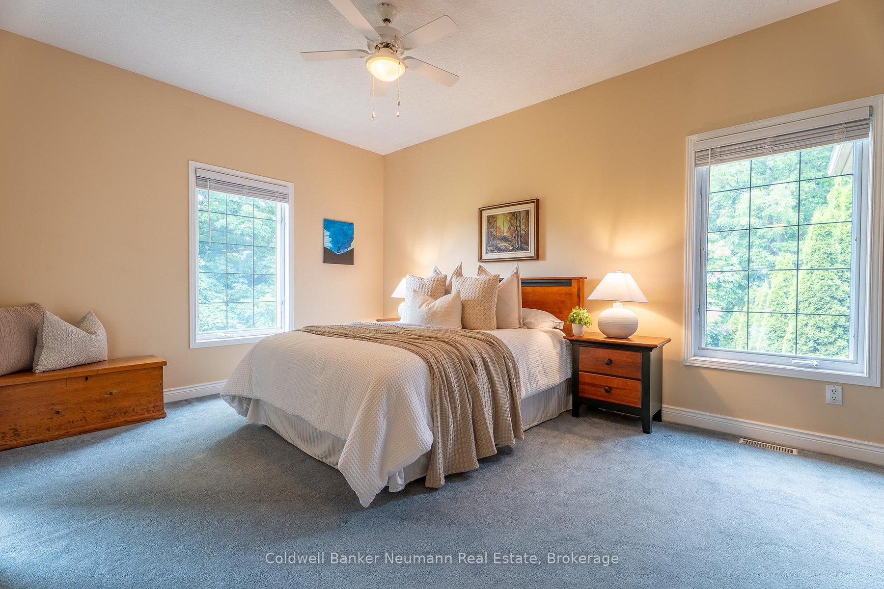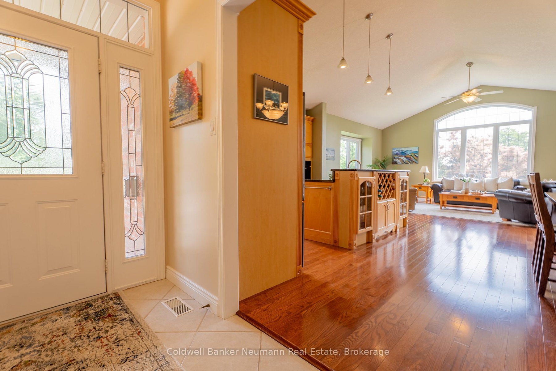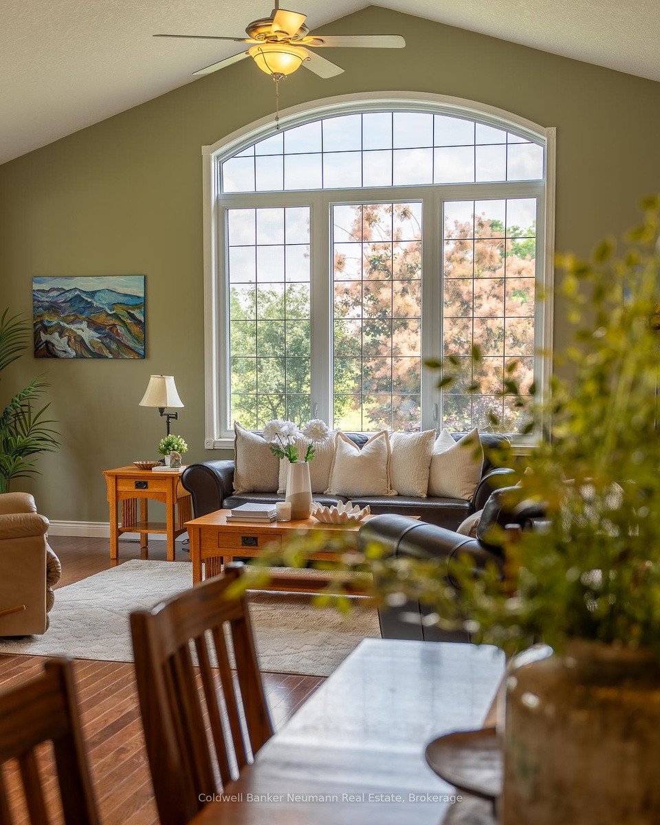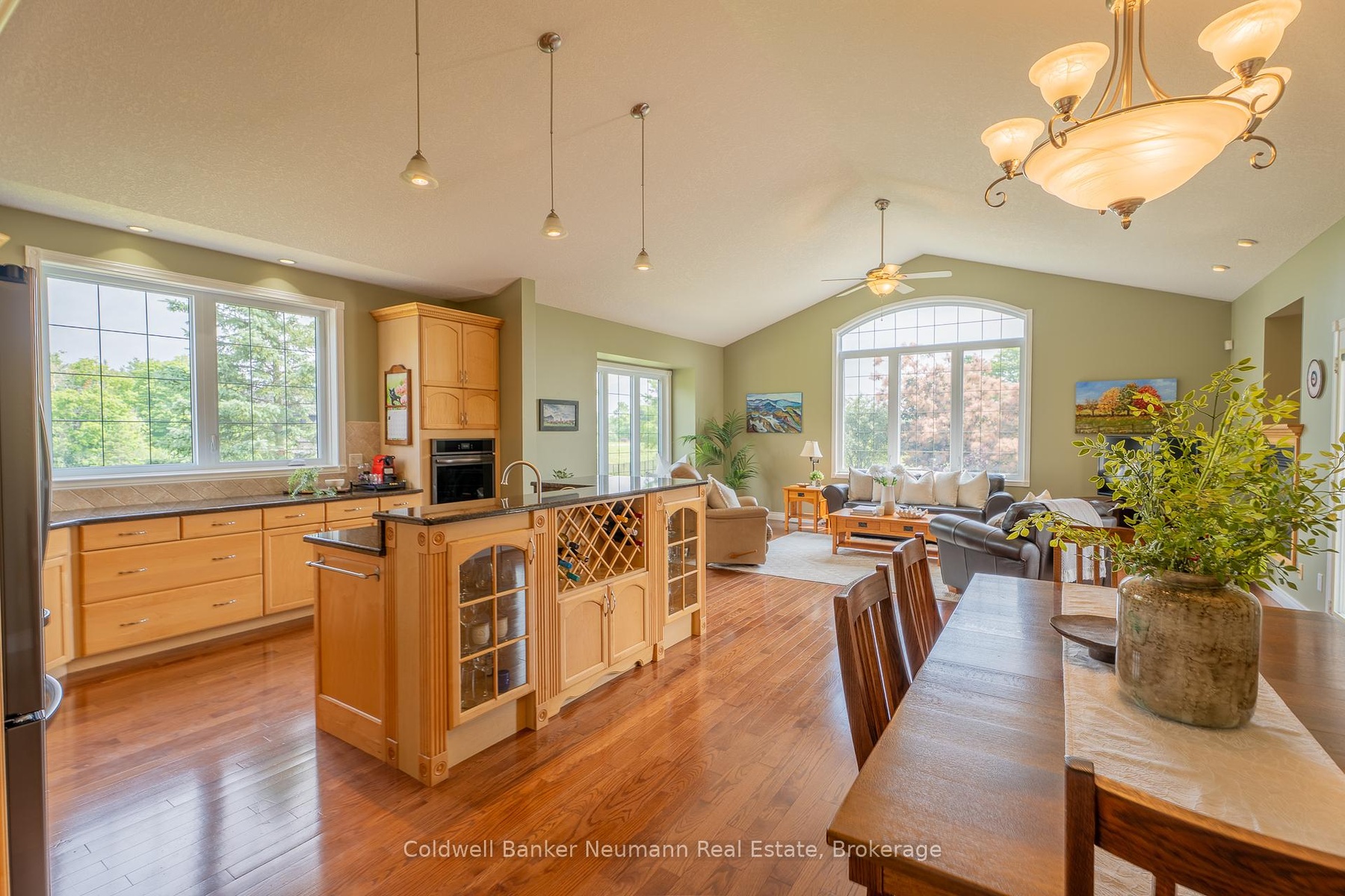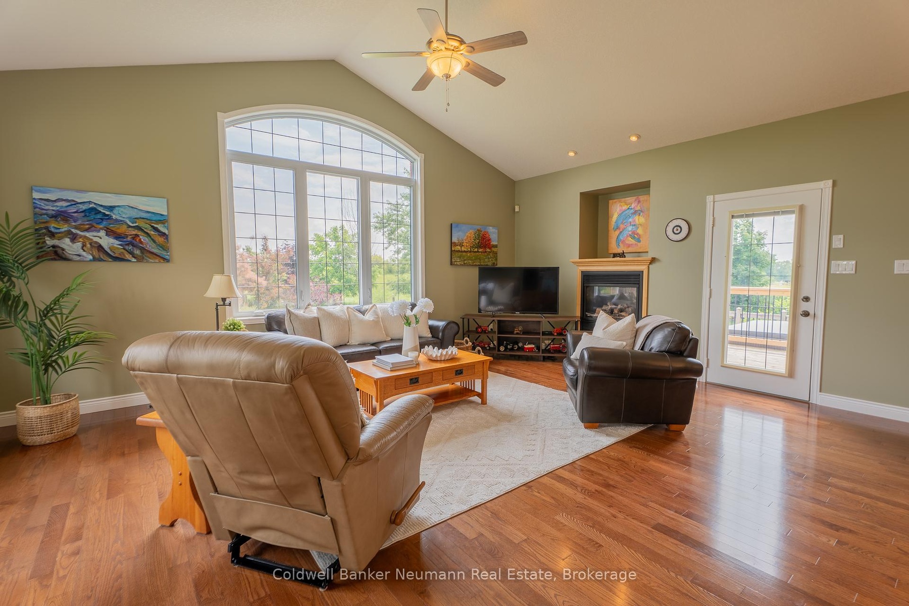 Welcome to 7677 Maltby Rd E-a beautifully maintained rural retreat on a private, tree-lined acre minutes from Guelph and major commuter routes. Offering peace and privacy, this home is the perfect place to embrace the crisp fall season and the beauty of country living. The main floor features an open-concept layout with a spacious living area, cozy gas fireplace, and functional kitchen equipped with quality appliances, including a new Frigidaire convection wall oven (2025). The primary suite, complete with generous ensuite and direct access to the back deck, is conveniently located on this level, along with two additional bedrooms and another 4pc bathroom. The finished basement expands the living space with incredible flexibility. A fourth bedroom with soaker tub and second gas fireplace makes an ideal private retreat. The large recreation room, den/office, laundry, and storage provide even more functionality, while the walk-out to the backyard adds potential for an in-law suite, home business, or versatile extension of your living space. Step outside and enjoy the fall colours or gather around the fire pit on the stone patio next to the pond. Unwind in the hot tub under a canopy of autumn stars. The backyard offers space for a pool, gardens, or entertaining-with no septic tile to limit your options. An environmentally friendly biofilter system is tucked out of the way in the front portion of the property, keeping the backyard wide open for whatever you imagine. Another highlight is the attached three-bay garage with sink and backyard access, offering excellent space for vehicles, hobbies, or a workshop setup. Recent updates include Lennox furnace (2025); LG 3-door refrigerator with water and ice maker (2019); roof shingles with ice and water shield (2019); and kitchen and living room windows (2019). Solid, move-in-ready, and ideally located, this home blends the quiet of country life with the convenience of city access.