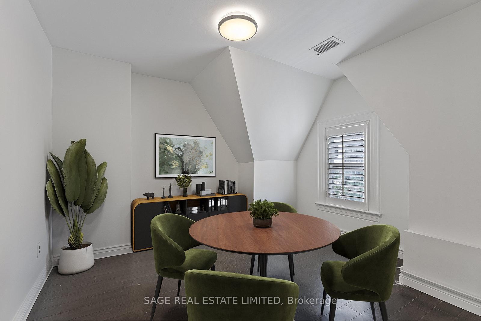 Located in Yorkville's prestigious Davenport Terrace, just a short distance from the renowned Designer's Walk, this meticulously designed top-floor space offers over 900 square feet of prime commercial real estate. The expansive walk-out terrace overlooks the lush treetops of Ramsden Park, creating a tranquil and inspiring work environment. This high-end space completely renovated space features two private offices, a full private bathroom and an open-concept workspace, complemented by a well-appointed kitchenette. Perfect for medical office, lawyer, or any business that requires meeting area and private offices.