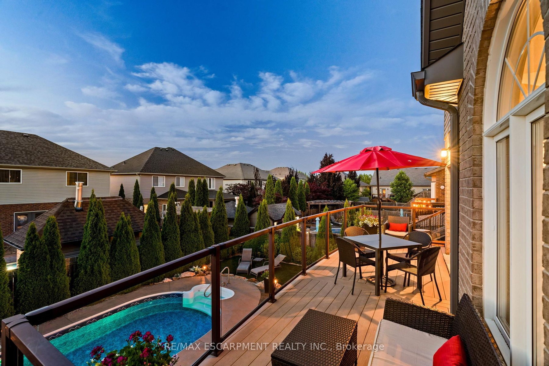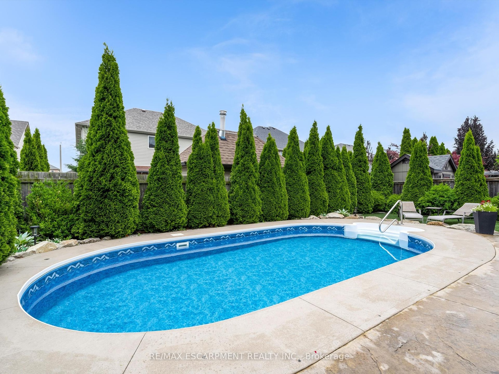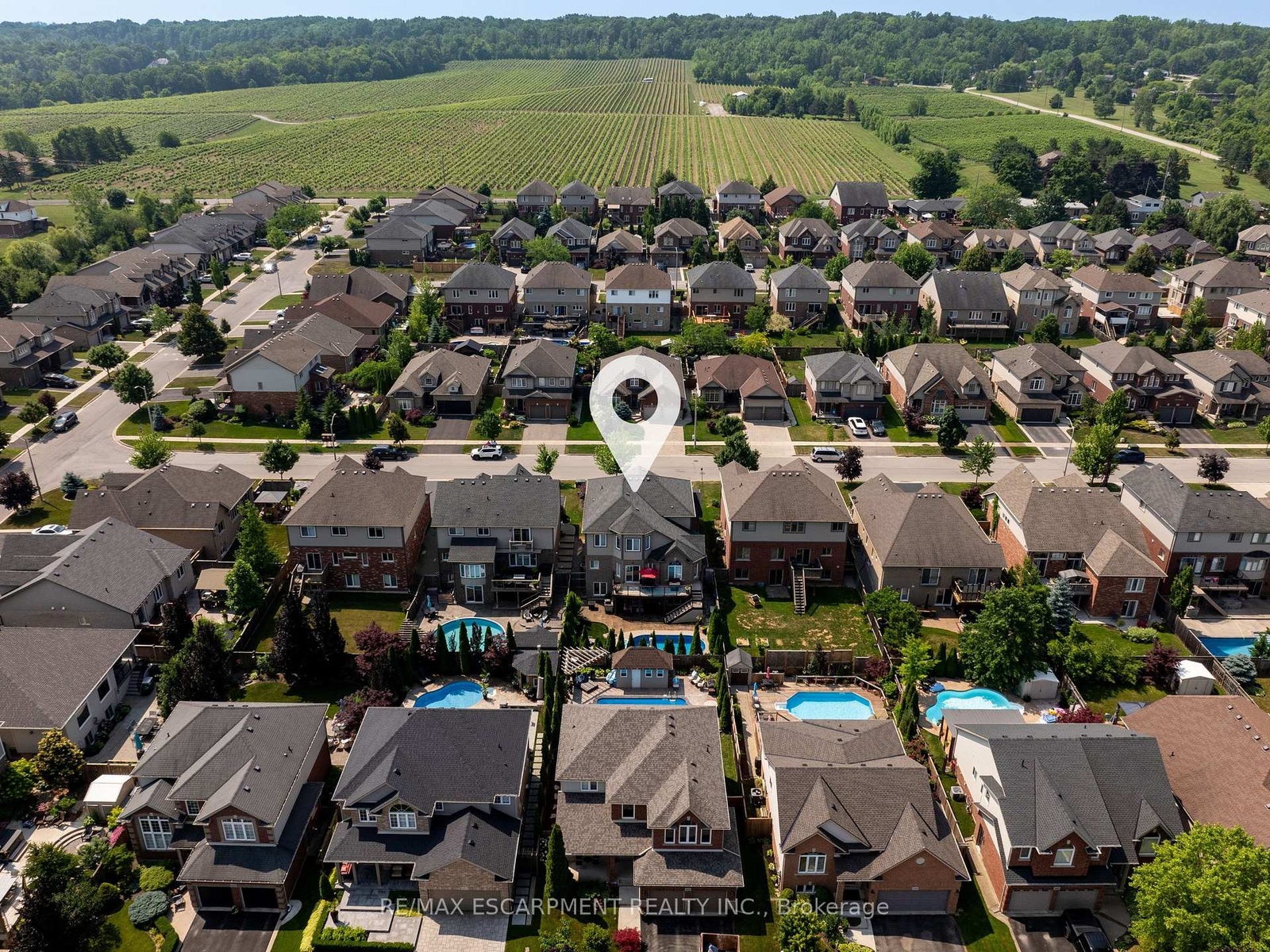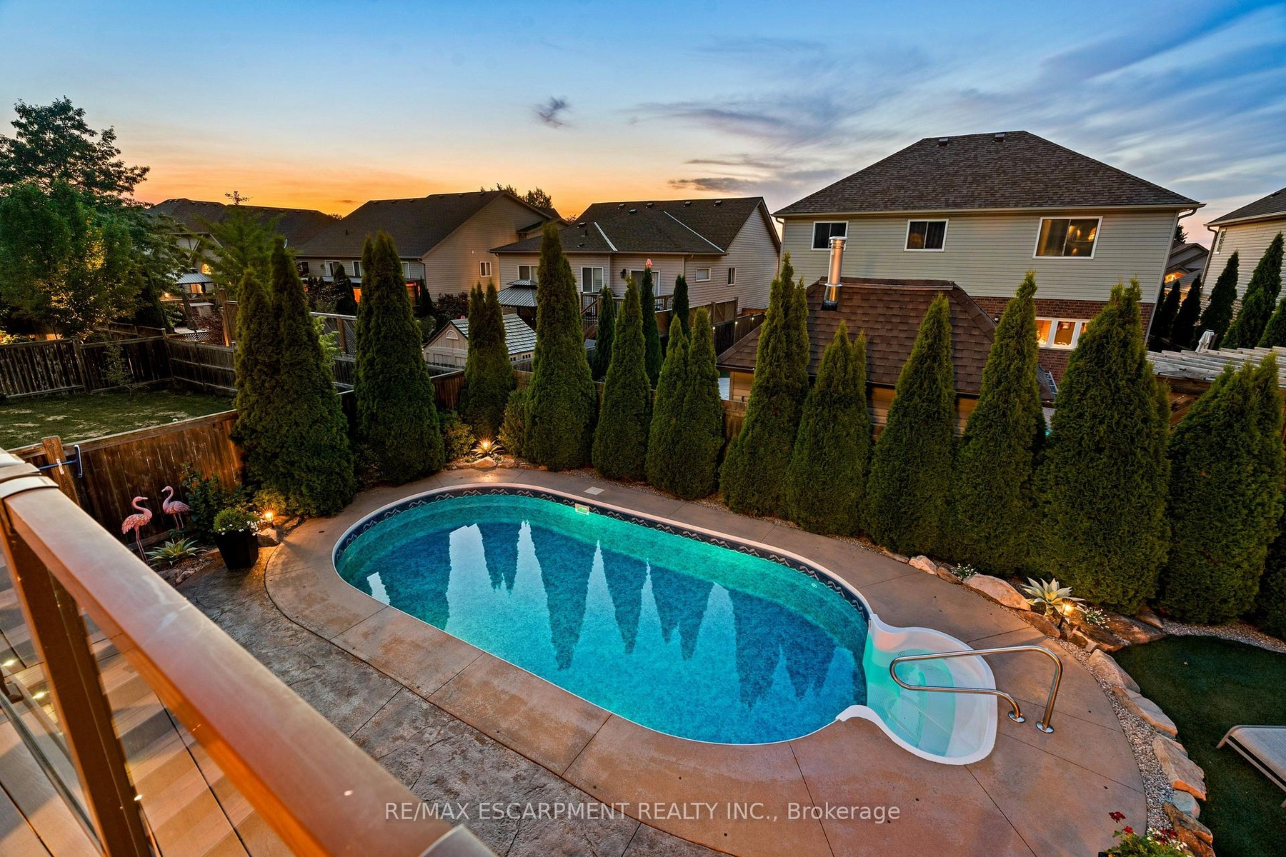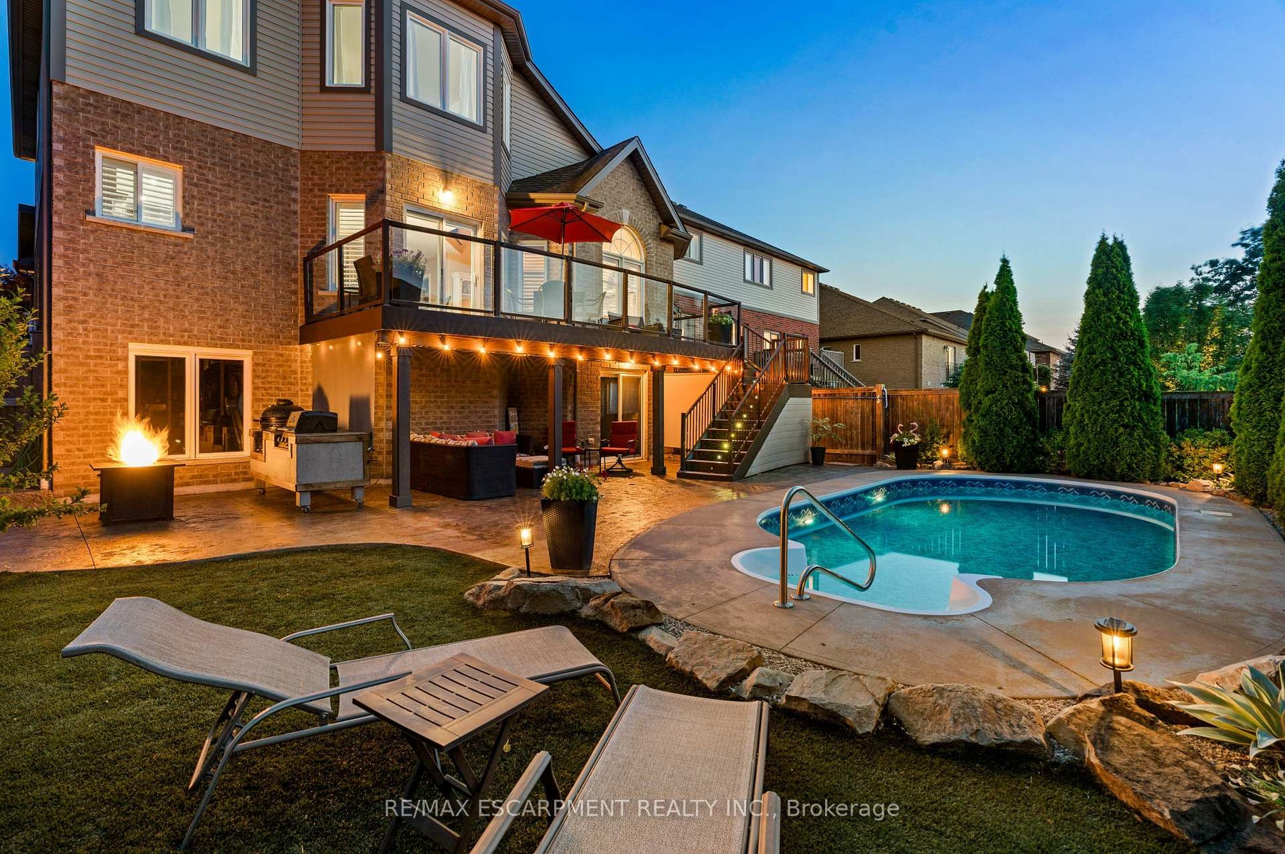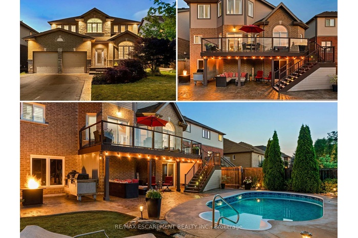 Discover an exceptional lifestyle in this meticulously maintained Executive 2-Storey home w/ inground salt water pool & walk-out basement w/in-law potential, nestled in one of Beamsville's most sought-after enclaves - just steps to Ashby Drive Park, scenic greenspace & trails, and renowned local wineries. From the moment you arrive, impeccable curb appeal and stamped concrete walkways set the tone. Inside, nearly 2900sq ft of refined above-grade living space welcomes you w/ expansive windows, rich oak flooring, & an airy, light-filled layout enhanced by soaring 9-foot ceilings on the main level. The custom chefs kitchen is a showstopper, featuring granite countertops, premium cabinetry, and abundant storage flowing seamlessly into a bright dinette with access to the expansive elevated composite deck, ideal for entertaining. A vaulted family room with gas fireplace and second-floor overlook provides an elegant yet cozy retreat. A formal living and dining room, a versatile office/den, laundry, and a convenient 2pc bath complete the main floor. Upstairs, the winding staircase leads to four spacious bedrooms, a 4pcbath and a luxurious primary suite with lounge area, walk-in closet & a large 5-piece ensuite. The walk-out basement offers high ceilings, direct backyard access w/ a private patio and endless potential - perfect for an in-law suite or custom retreat! Your private backyard oasis awaits: a 12x24heated saltwater pool w/ dual fountains & ambient lighting, surrounded by mature landscaping, poured concrete, and low-maintenance artificial grass - designed for beauty and ease. Wellness-focused upgrades enhance the home, including a whole-home air purification system, soft water system & alkaline water filter (kitchen) - elevating everyday comfort for the health-conscious homeowner. Ideally located near schools, parks, fine dining & acclaimed vineyards, this stunning property offers luxury living in a breathtaking setting. Beauty on the bench - truly a must see!