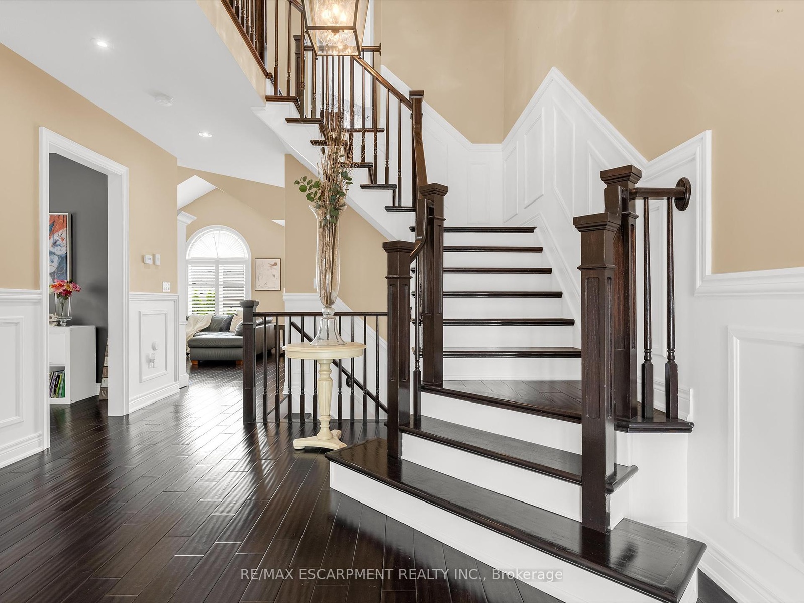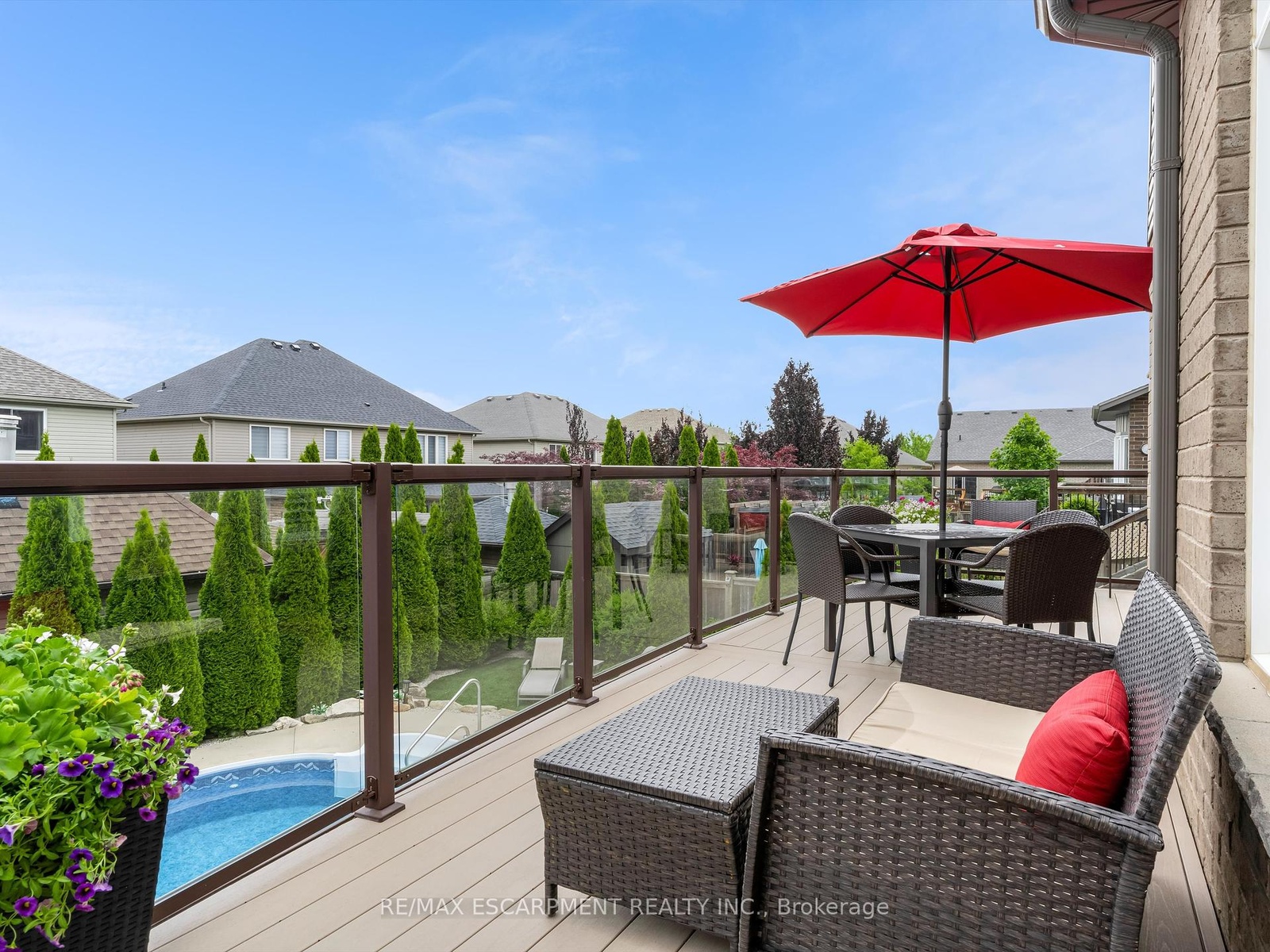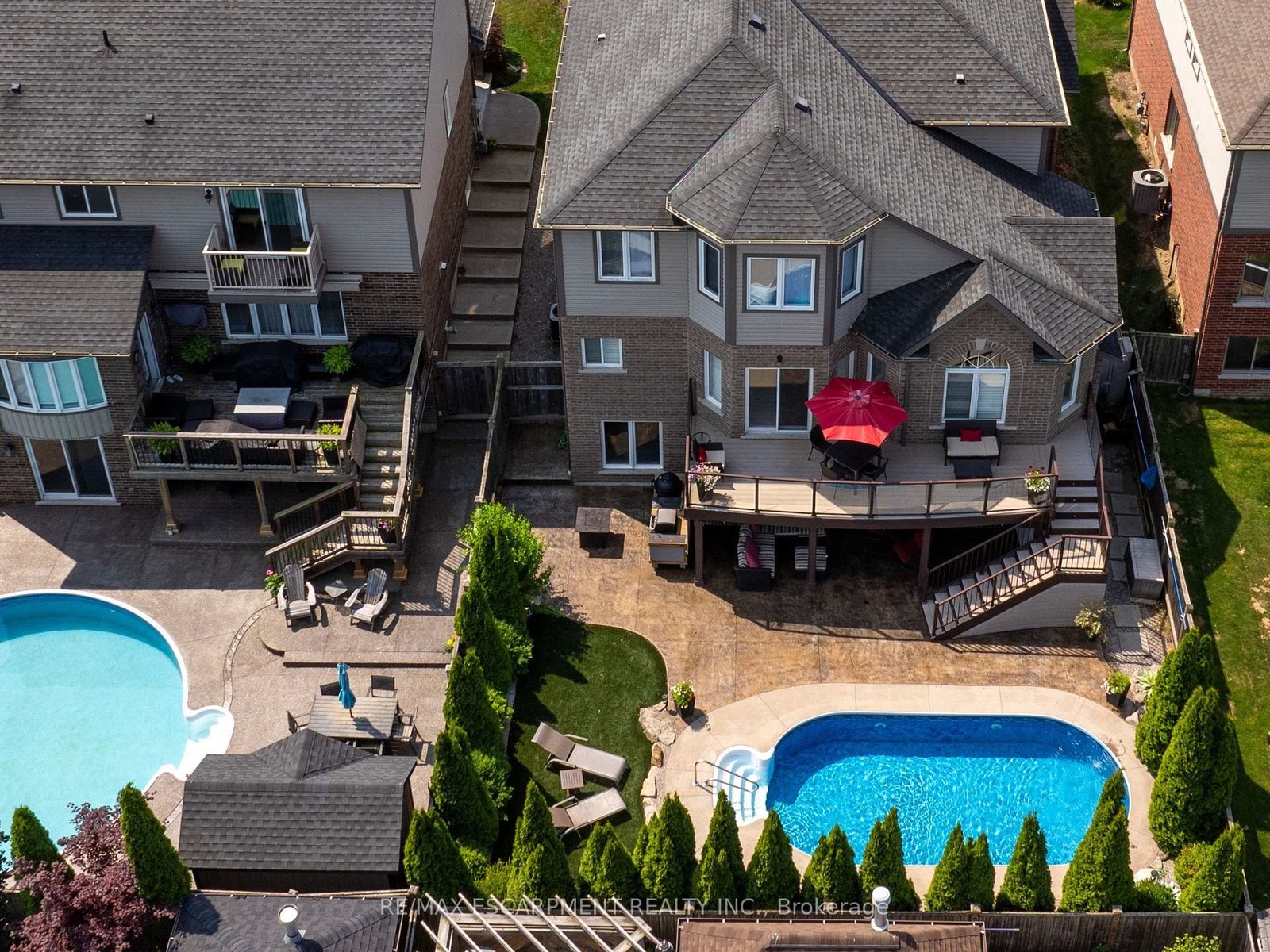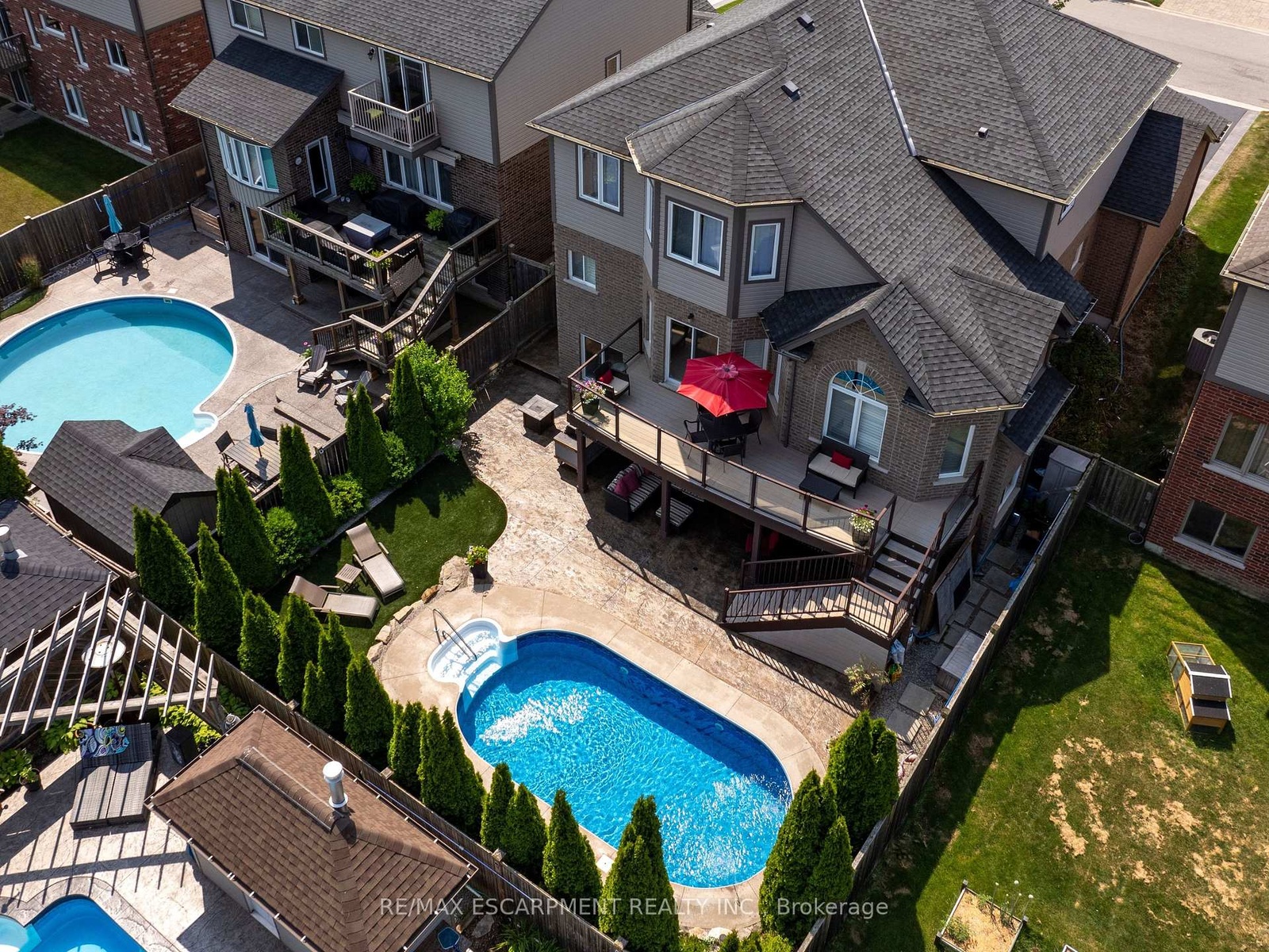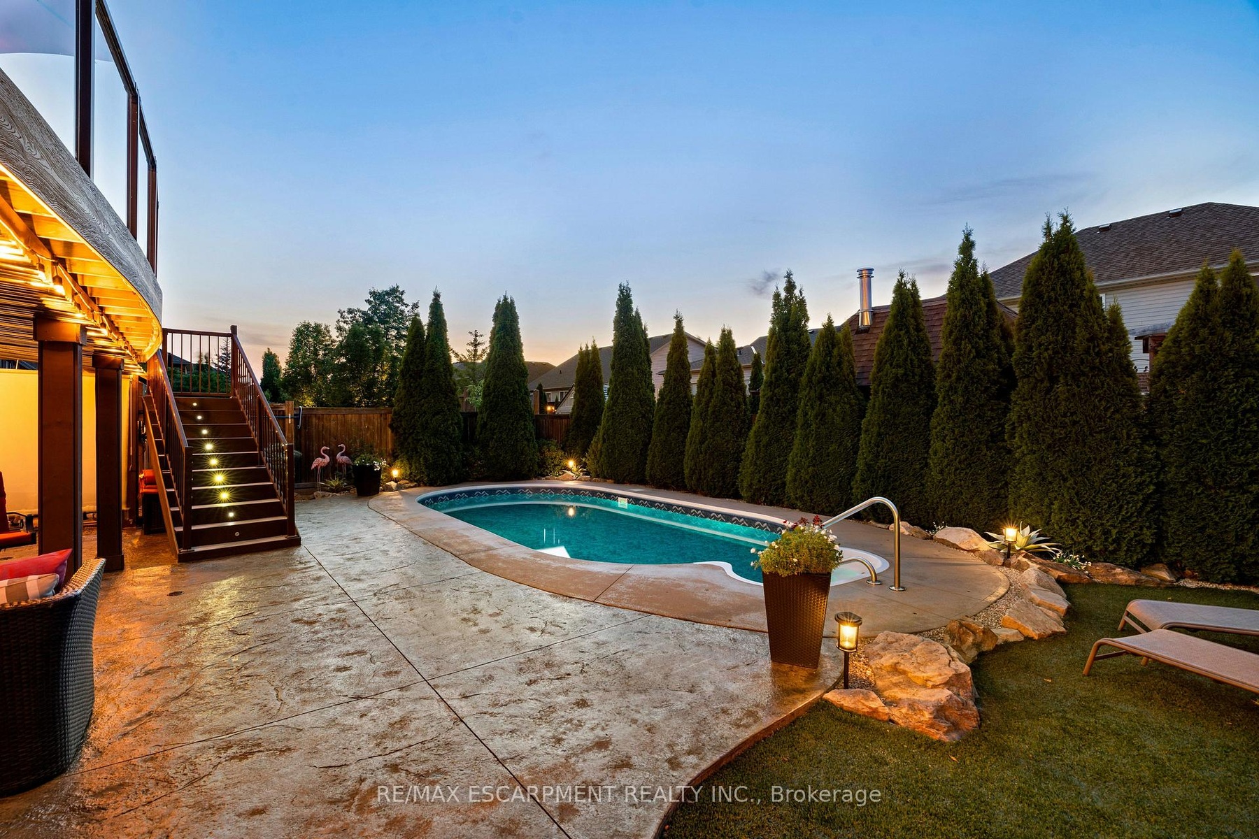 Discover an exceptional lifestyle in this meticulously maintained Executive 2-Storey home w/ inground salt water pool & walk-out basement w/in-law potential, nestled in one of Beamsville's most sought-after enclaves - just steps to Ashby Drive Park, scenic greenspace & trails, and renowned local wineries. From the moment you arrive, impeccable curb appeal and stamped concrete walkways set the tone. Inside, nearly 2900sq ft of refined above-grade living space welcomes you w/ expansive windows, rich oak flooring, & an airy, light-filled layout enhanced by soaring 9-foot ceilings on the main level. The custom chefs kitchen is a showstopper, featuring granite countertops, premium cabinetry, and abundant storage flowing seamlessly into a bright dinette with access to the expansive elevated composite deck, ideal for entertaining. A vaulted family room with gas fireplace and second-floor overlook provides an elegant yet cozy retreat. A formal living and dining room, a versatile office/den, laundry, and a convenient 2pc bath complete the main floor. Upstairs, the winding staircase leads to four spacious bedrooms, a 4pcbath and a luxurious primary suite with lounge area, walk-in closet & a large 5-piece ensuite. The walk-out basement offers high ceilings, direct backyard access w/ a private patio and endless potential - perfect for an in-law suite or custom retreat! Your private backyard oasis awaits: a 12x24heated saltwater pool w/ dual fountains & ambient lighting, surrounded by mature landscaping, poured concrete, and low-maintenance artificial grass - designed for beauty and ease. Wellness-focused upgrades enhance the home, including a whole-home air purification system, soft water system & alkaline water filter (kitchen) - elevating everyday comfort for the health-conscious homeowner. Ideally located near schools, parks, fine dining & acclaimed vineyards, this stunning property offers luxury living in a breathtaking setting. Beauty on the bench - truly a must see!