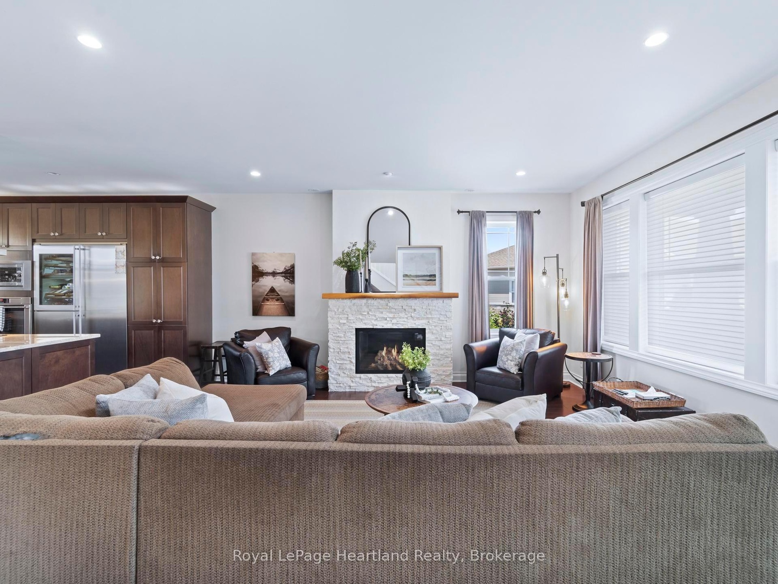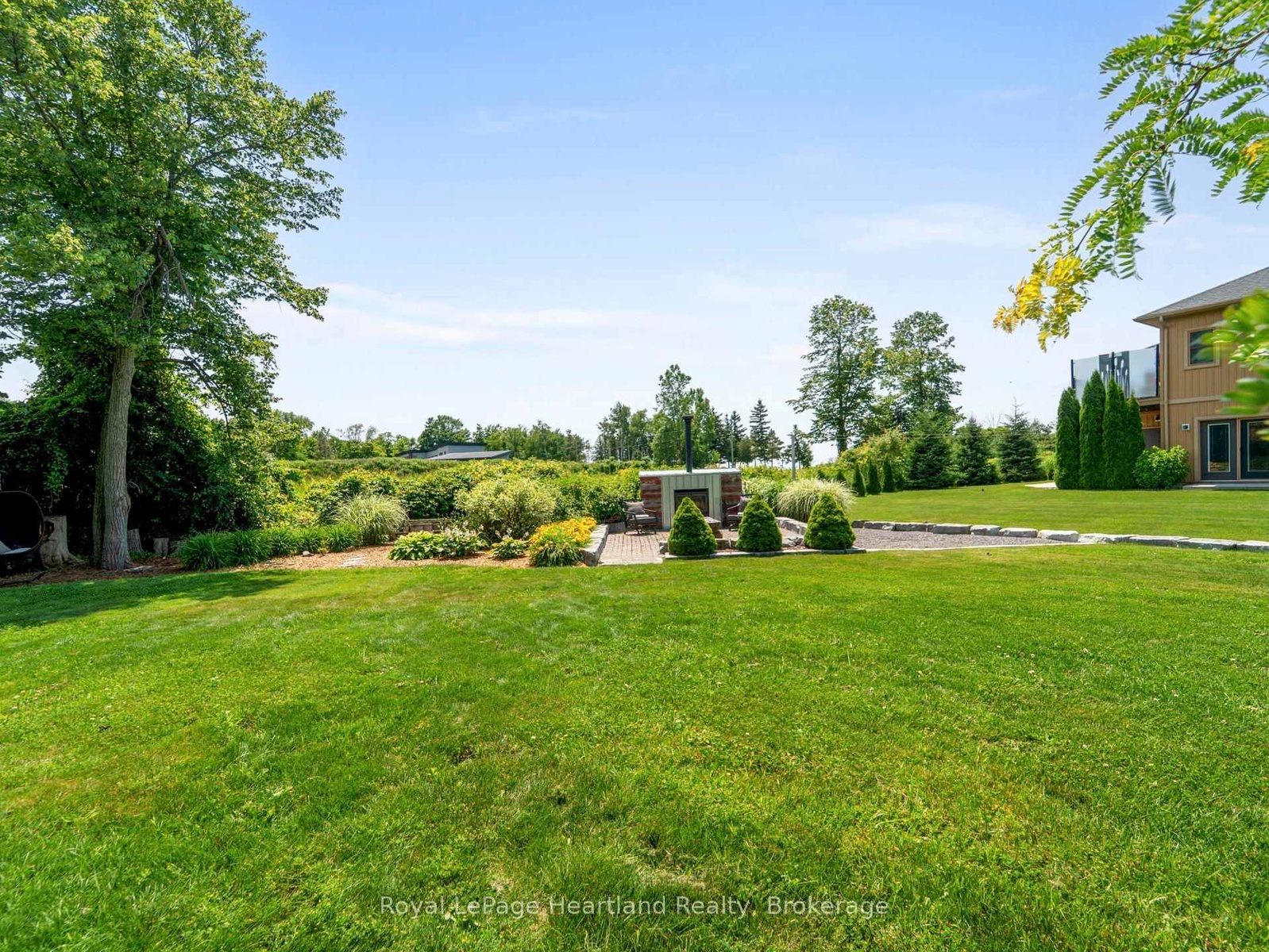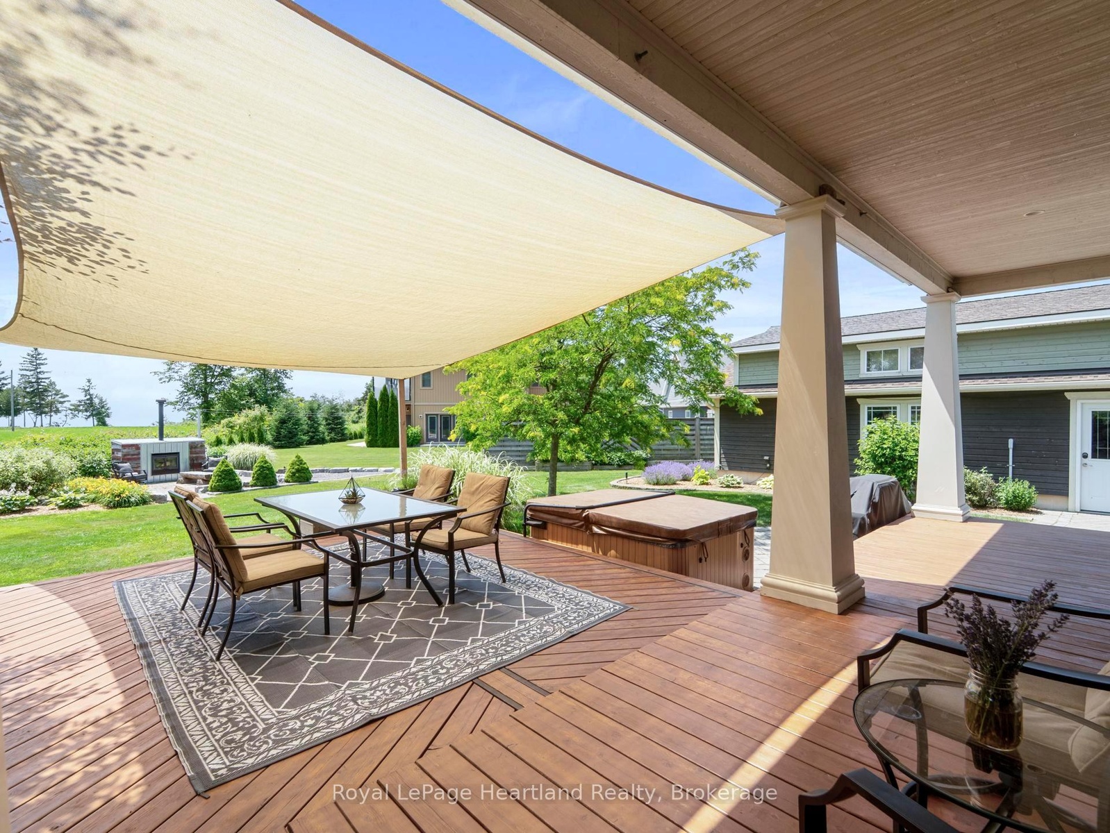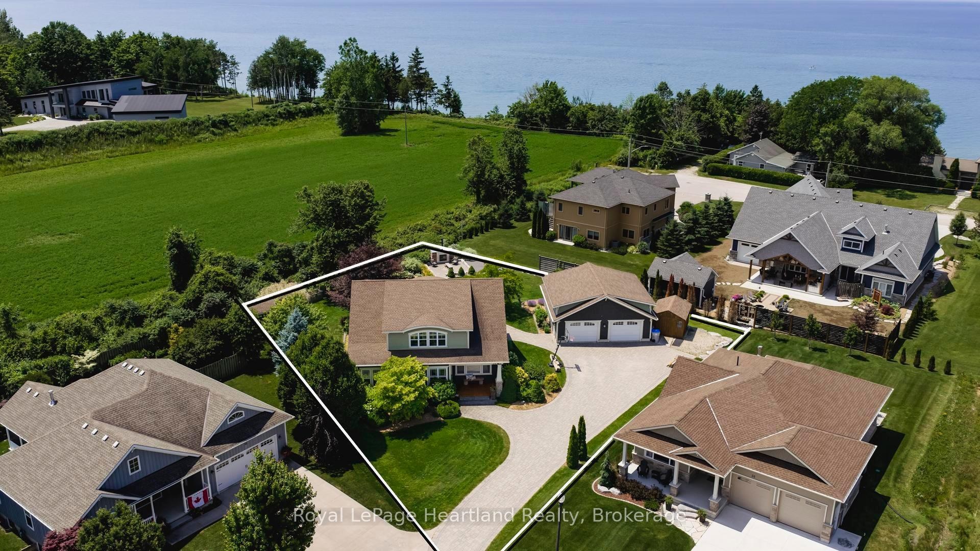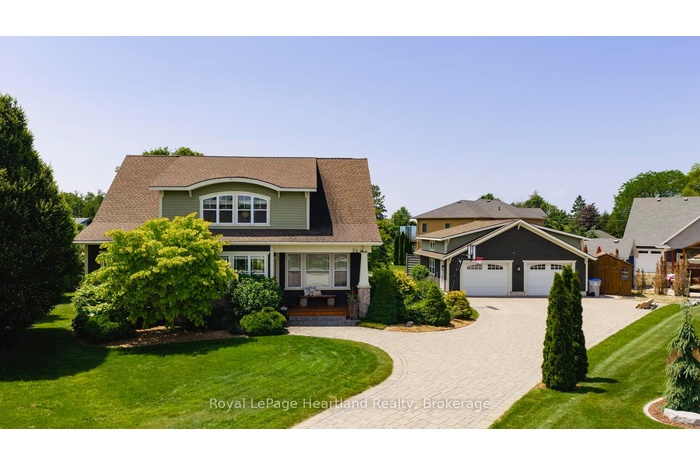 24 Thimbleweed Drive- a stunning custom-built 4 bed, 4 bath home in one of Bayfield's most prestigious lakeside neighbourhoods. Just steps from Lake Hurons sandy beaches and a short stroll to the village core, this exceptional residence offers over 3,000 sq ft of finished living space, a rare heated 4-car garage with 12' ceilings and car hoist, and premium finishes throughout. Inside, enjoy a sunlit open-concept layout with a chefs kitchen featuring granite countertops, stainless appliances, and custom cabinetry. The elegant great room flows to the expansive deck, while the luxurious main floor primary suite offers a spa-inspired ensuite and walk-in closet with built-ins. The beautiful staircase leads to the second level with two spacious bedrooms and a 4 piece spa like bathroom. The fully finished lower level is a showstopper featuring radiant in-floor heating, a second full kitchen, large rec room, an additional bedroom, a stylish bath, and spacious laundry room with granite counters and storage galore. Outdoors, entertain or unwind in your private hot tub, around the built-in fireplace, or on the oversized deck with sweeping views of open countryside and lake horizon. Professionally landscaped with full irrigation, this home delivers tranquility and wow factor in equal measure.A rare opportunity to own one of Bayfield's finest homes offering luxury, functionality, and an unbeatable location. This is lakeside living at its best!
