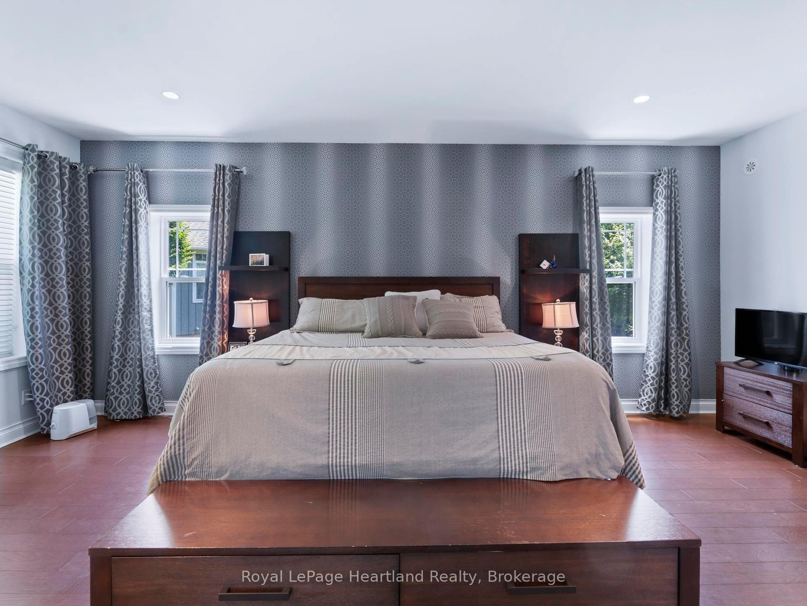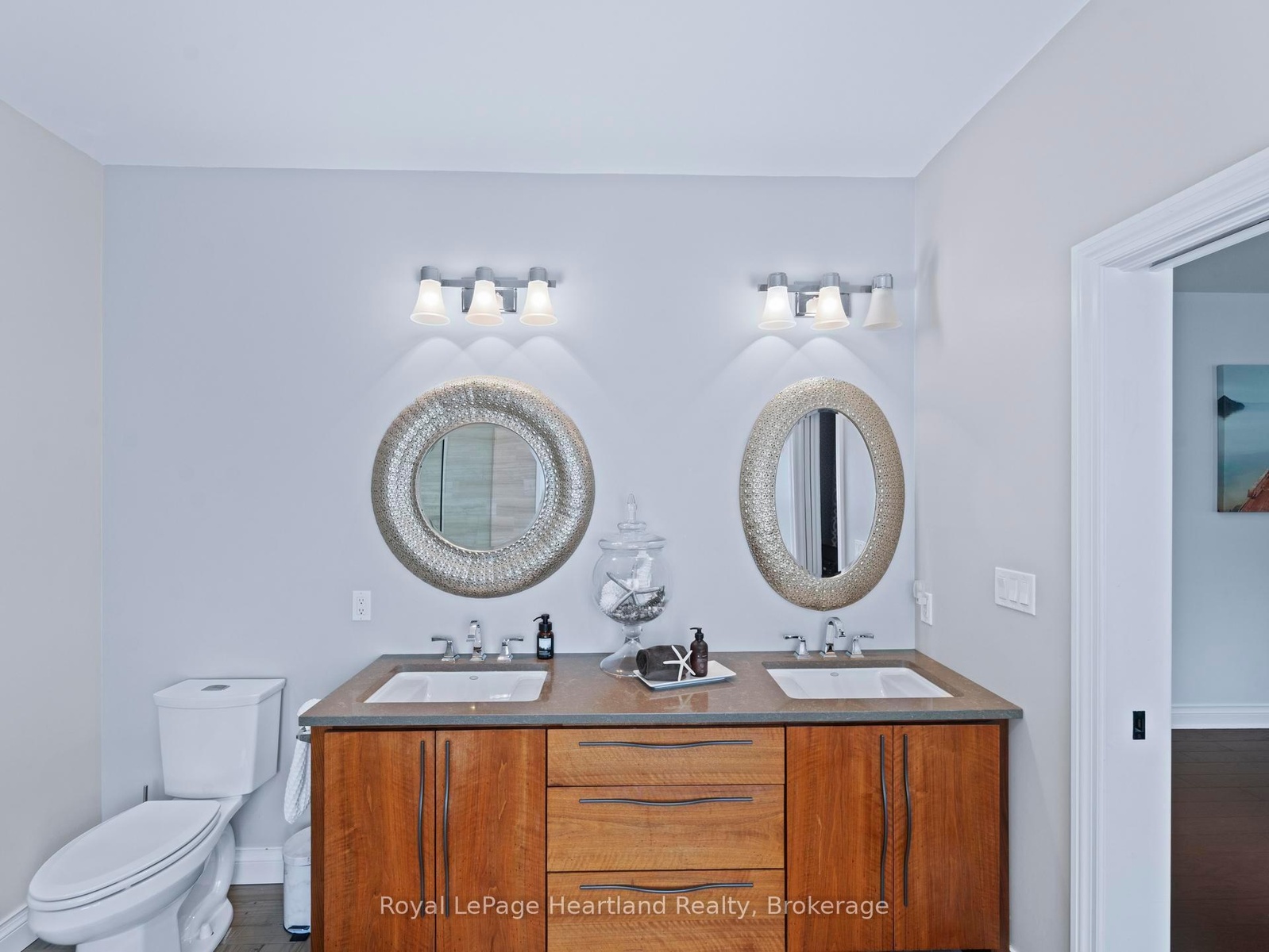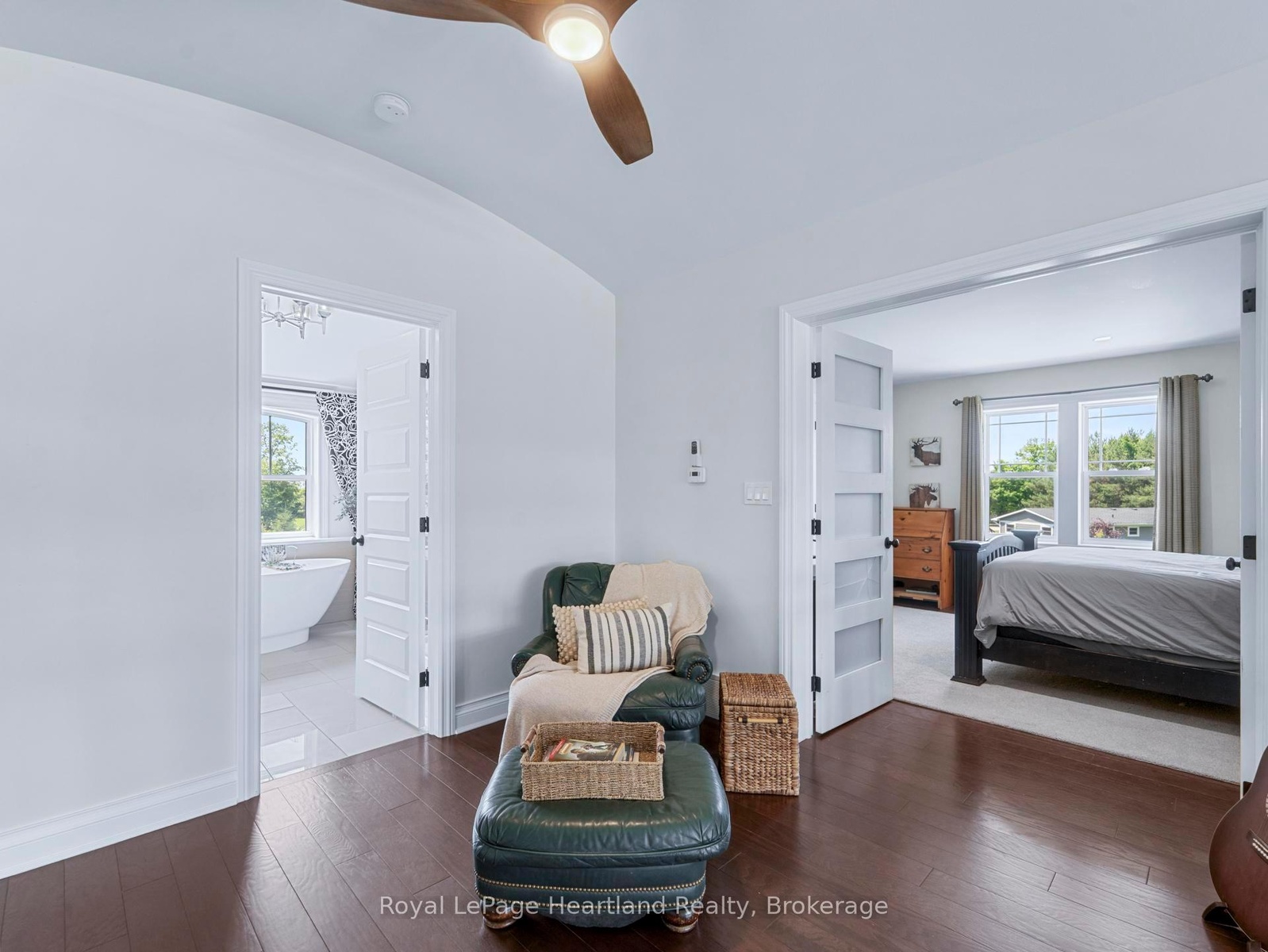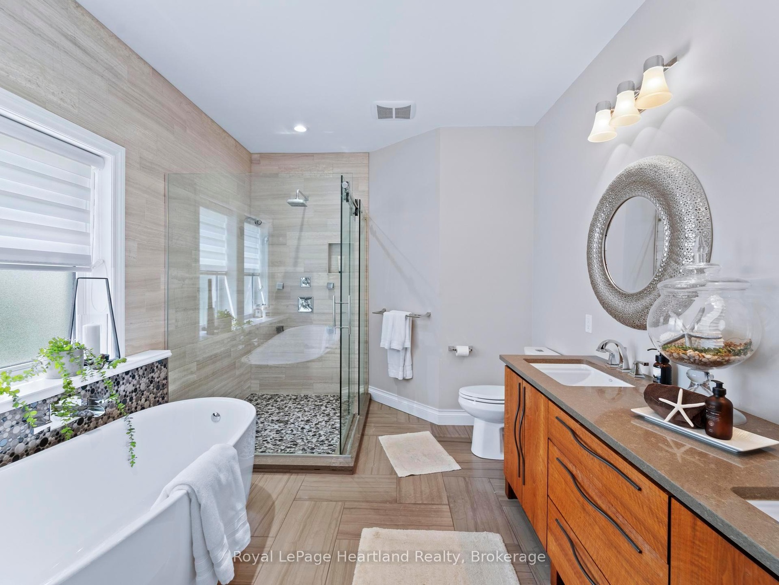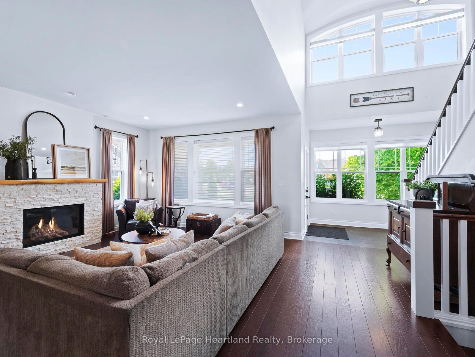24 Thimbleweed Drive- a stunning custom-built 4 bed, 4 bath home in one of Bayfield's most prestigious lakeside neighbourhoods. Just steps from Lake Hurons sandy beaches and a short stroll to the village core, this exceptional residence offers over 3,000 sq ft of finished living space, a rare heated 4-car garage with 12' ceilings and car hoist, and premium finishes throughout. Inside, enjoy a sunlit open-concept layout with a chefs kitchen featuring granite countertops, stainless appliances, and custom cabinetry. The elegant great room flows to the expansive deck, while the luxurious main floor primary suite offers a spa-inspired ensuite and walk-in closet with built-ins. The beautiful staircase leads to the second level with two spacious bedrooms and a 4 piece spa like bathroom. The fully finished lower level is a showstopper featuring radiant in-floor heating, a second full kitchen, large rec room, an additional bedroom, a stylish bath, and spacious laundry room with granite counters and storage galore. Outdoors, entertain or unwind in your private hot tub, around the built-in fireplace, or on the oversized deck with sweeping views of open countryside and lake horizon. Professionally landscaped with full irrigation, this home delivers tranquility and wow factor in equal measure.A rare opportunity to own one of Bayfield's finest homes offering luxury, functionality, and an unbeatable location. This is lakeside living at its best!