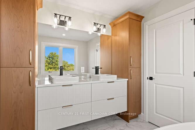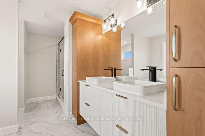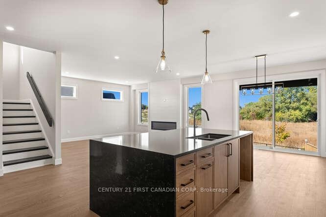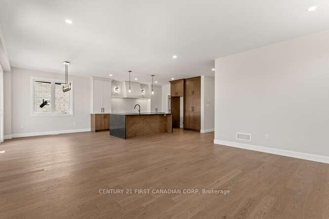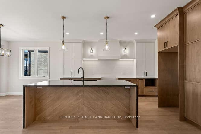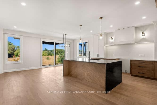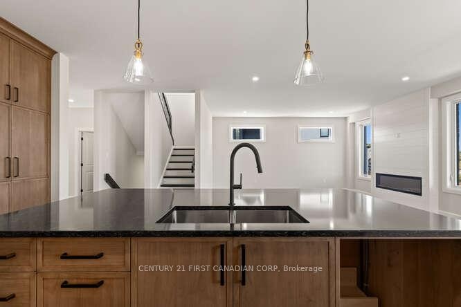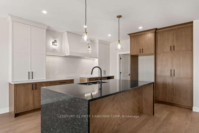 Stunning New Executive Home in Eagles Ridge, West Five, located on a generous lot backing onto a protected dry pond. This brand new custom-designed executive home offers luxurious living in one of the most desirable areas of West Five. Step inside to discover a thoughtfully designed layout featuring a spacious mudroom off the garage entry and a chef-inspired kitchen complete with pull-out pantries, a striking waterfall island, and an oversized custom range hood. Elegant wall sconces and an open flow into the dinette and living area-highlighted by a sleek electric fireplace-create the perfect atmosphere for everyday living and entertaining. Upstairs, you'll find four generously sized bedrooms, including a serene Primary Suite retreat. Two bedrooms are connected by a convenient Jack and Jill bathroom, while an additional full bath serves guests or family down the hall. Enjoy the outdoors year-round with a covered patio area, and take advantage of the triple-car garage for added storage or hobbies. Just steps from scenic trails, popular restaurants, and top-tier fitness studios like Oxygen Yoga and F45-this is more than a home, it's a lifestyle.
