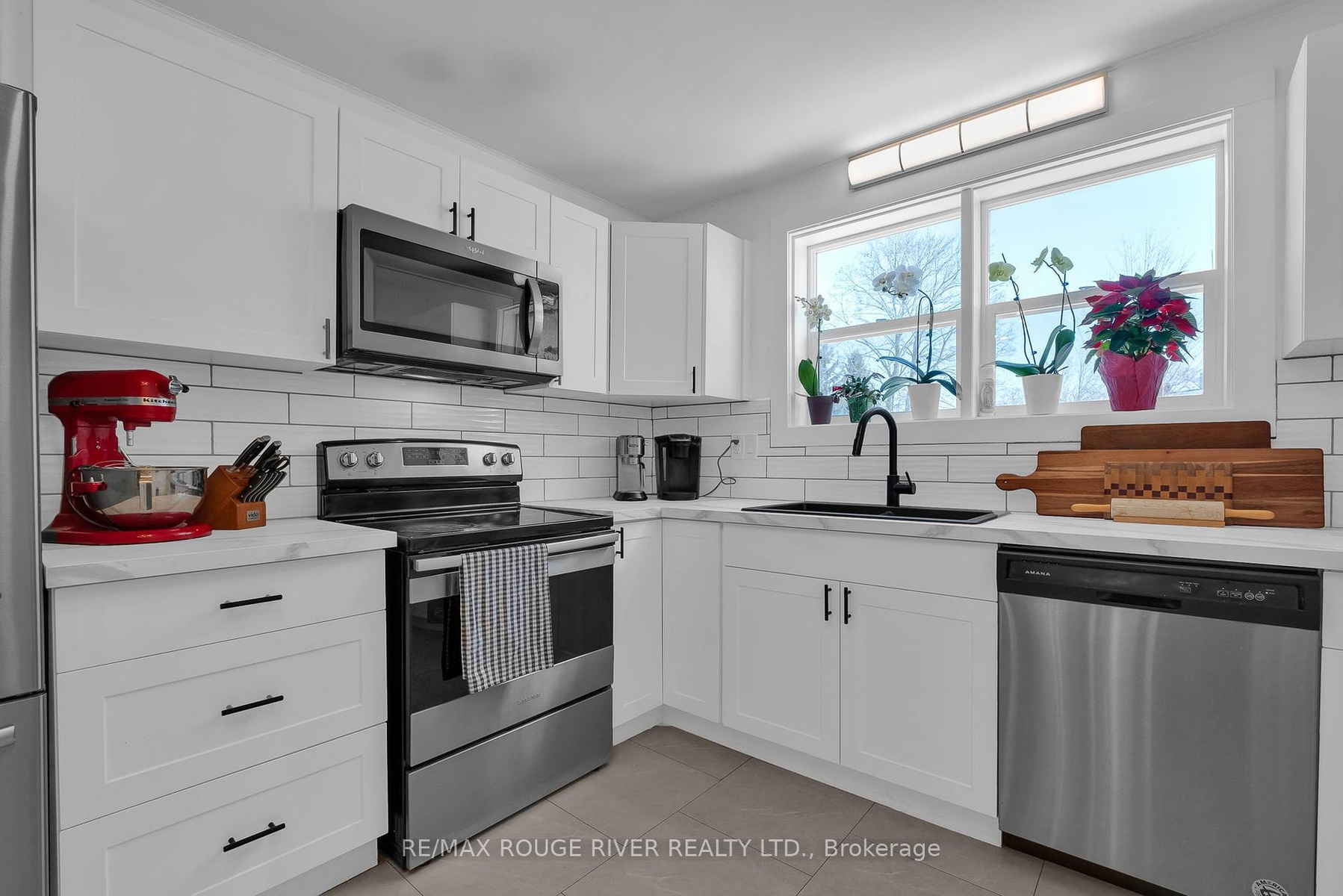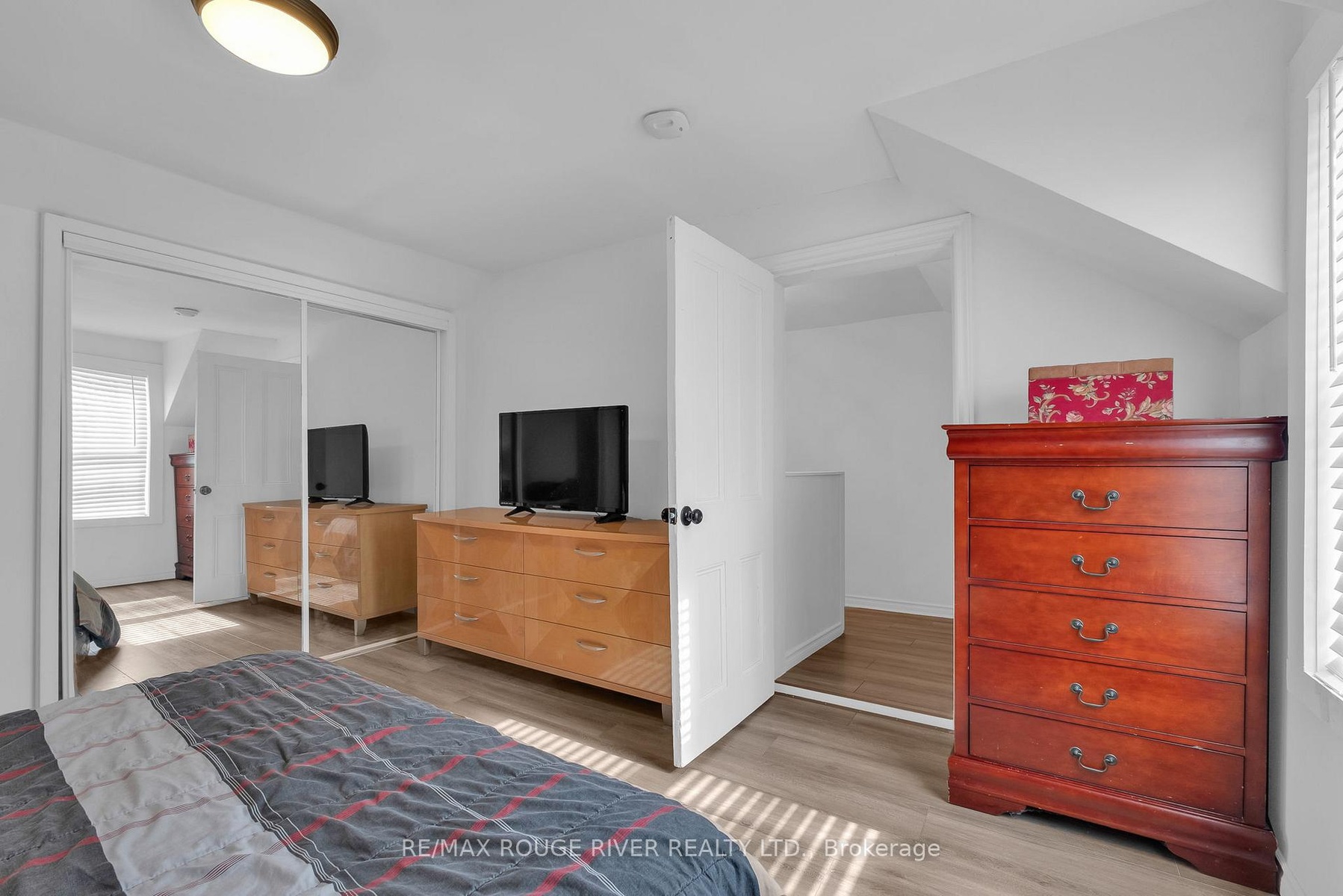 This recently renovated two-story century home seamlessly combines modern flare with timeless character. Featuring five bedrooms and three bathrooms, this residence provides comfort and flexibility for any family. The main floor welcomes you with a sunlit, inviting living room and a versatile den-ideal for unwinding or working from home. The spacious kitchen is equipped with appliances and ample workspace, making meal preparation a delight. Enjoy hosting in the dining room, which opens to a sprawling back deck overlooking the back yard-perfect for summer gatherings and outdoor entertaining. The private main-floor bedroom, thoughtfully separated from the living area, serves as an ideal in-law suite or guest retreat. Convenient main-floor laundry adds further ease to daily living. Upstairs, four additional well-appointed bedrooms and two bathrooms & stackable washer / dryer offer plenty of space for family and guests. Situated in the heart of Trenton, this exceptional home is just moments from shopping, schools, the 401, and CFB Trenton, placing every amenity within easy reach.