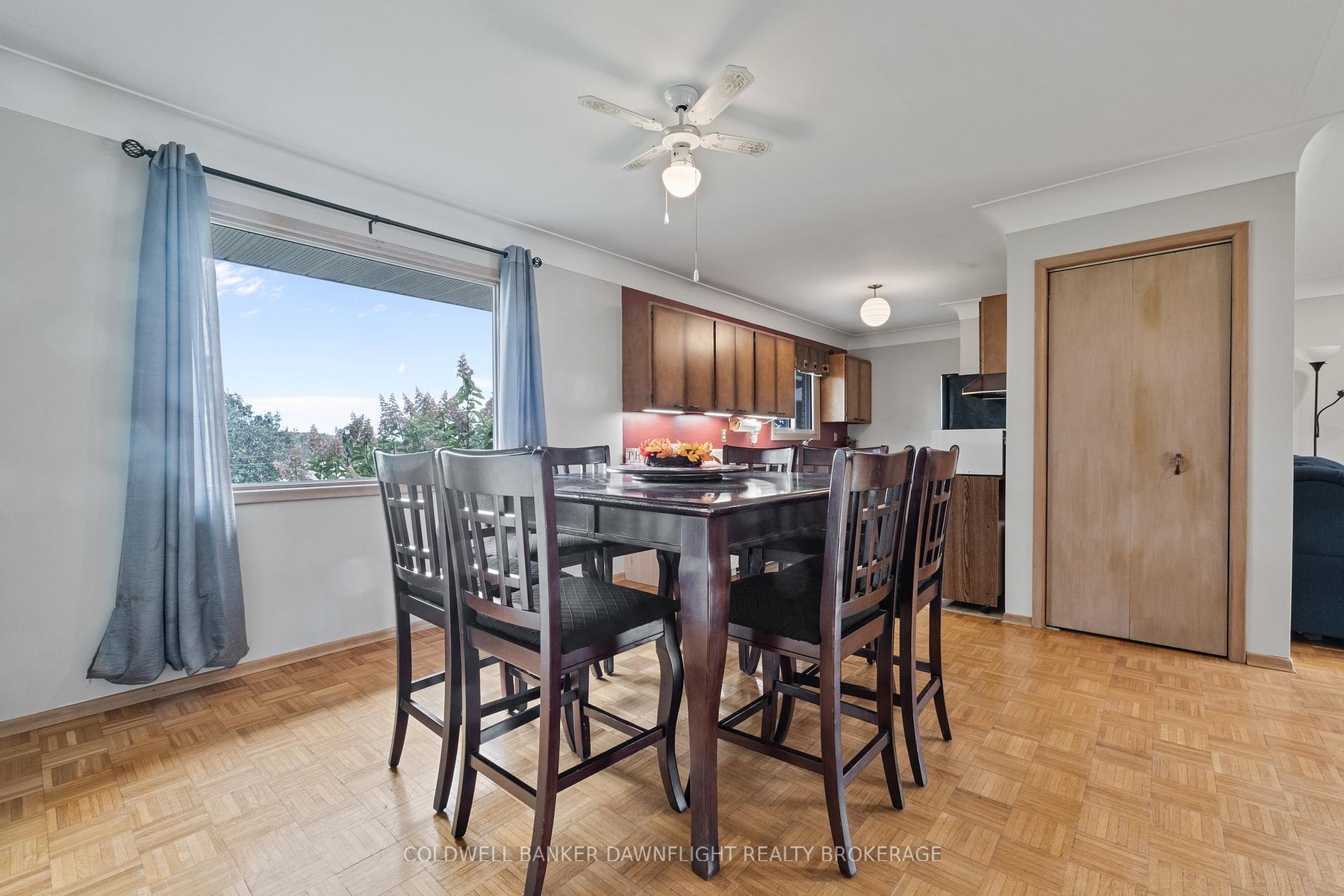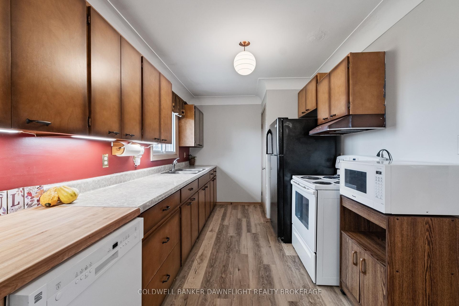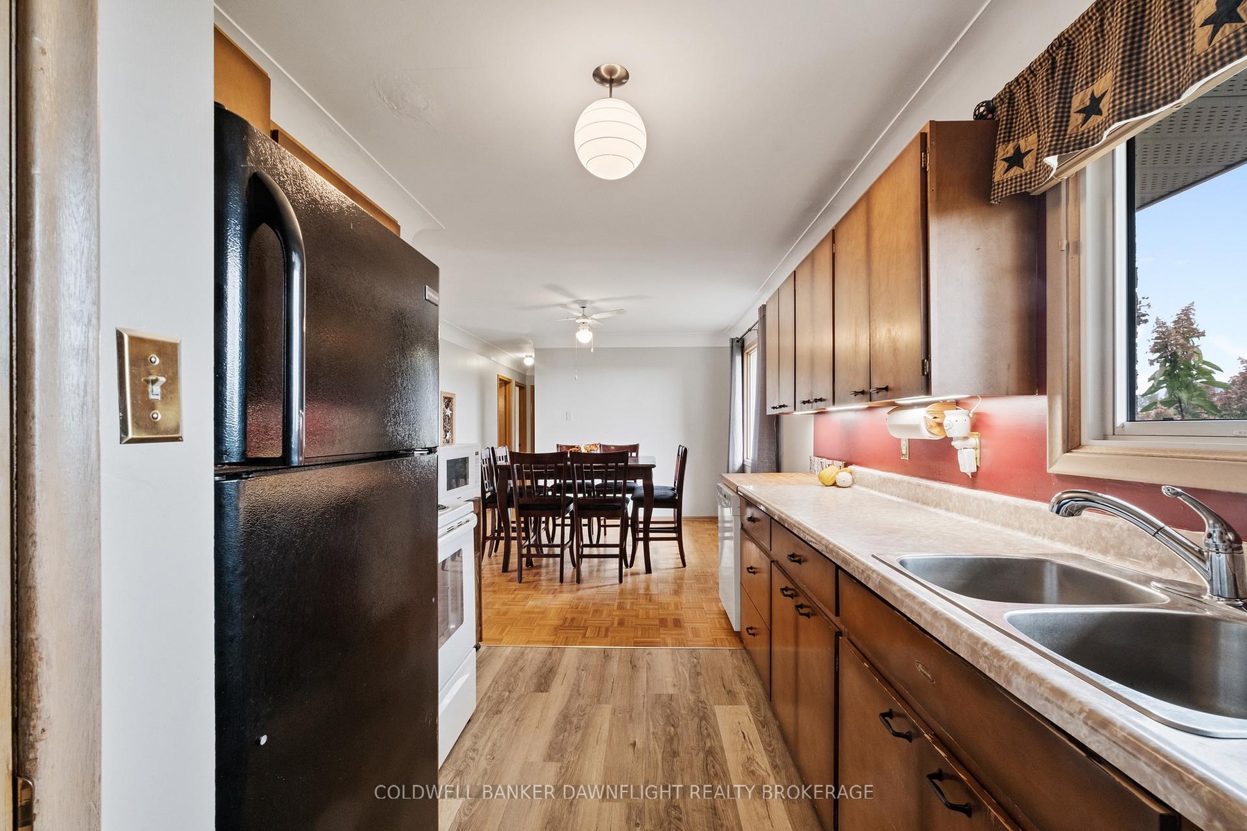Welcome to this charming home that perfectly blends classic style with modern updates. Located on a spacious lot, this property offers multiple parking plus a covered carport. The recently installed steel roof ensures lasting durability and peace of mind. Inside, the main floor features an open-concept layout, seamlessly connecting the living and dining areas, perfect for entertaining or relaxing with family. The efficient galley kitchen provides functional space for cooking and meal prep. Upstairs, three bright bedrooms feature hardwood floors throughout, with the primary bedroom showcasing a partial walk-in closet. A convenient pantry closet above the stairs adds extra storage. The finished basement offers additional living space, including a spacious recreation room, a three-piece bathroom, laundry area, and a generous storage room. The natural gas stove provides most of the homes heat, complemented by a gas water heater and a 200-amp breaker panel for modern electrical needs. This move-in ready home is ideal for families looking for comfort, convenience, and a touch of character.