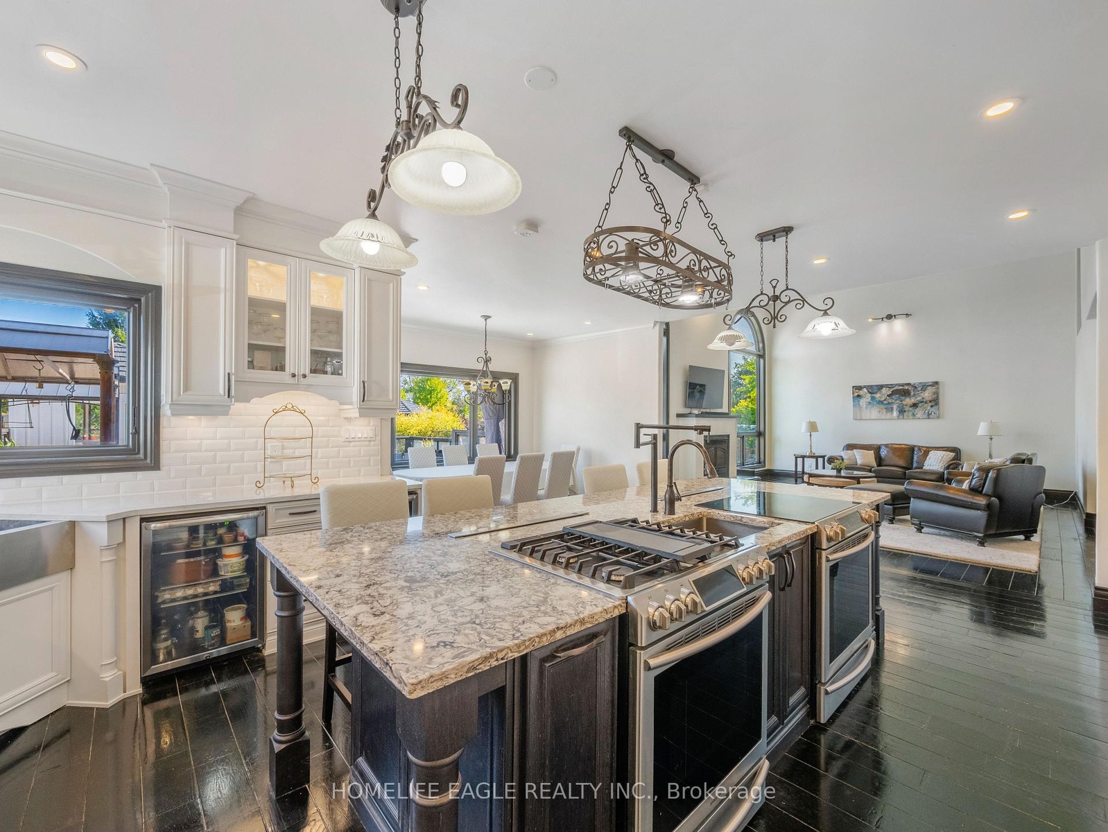 An Unparalleled Custom-Built Masterpiece Offering Over 7,380 Sq. Ft. Of Refined Luxury! Situated On A Premium 94 x 504 Ft Lot (1.08 Acres), This Grand Estate Makes An Unforgettable Impression With A Double-Height Foyer, Sweeping Dual Staircase, And Open-Air Cut-Through Wall That Fills The Space With Natural Light. Featuring 5+2 Bedrooms, 5 Bathrooms, Main Floor Guest Suite & Office, 9 Ft Ceilings On All Levels, 6 Inch Wide Barwood Hardwood Flooring, And Crown Moulding Throughout The Main And Upper Floors. The Breathtaking Family Room Boasts A 19 Ft Vaulted Ceiling And Oversized Arched Windows Framing Stunning Green Space Views. The Chefs Kitchen Is The Heart Of The Home, Showcasing Timeless White Cabinetry, Quartz Centre Island & Counters, And Top-Of-The-Line Appliances. A Bright Breakfast Area With Panoramic Windows And French Door Walkout Makes Indoor-Outdoor Living Effortless. The Primary Suite Offers A Tray Ceiling, Custom Walk-In Closet, And Spa-Like 5-Piece Ensuite With Double Sinks, Freestanding Tub, And Frameless Glass Shower. The Finished Basement Features A Massive Rec Room With Wet Bar, Additional Bedroom, Gym, 3-Piece Bath, Storage Room, And Cold Cellar. Step Into Your Private Backyard Oasis: A 1,000 Sq. Ft. Trex Deck, 26x40 Ft Heated Saltwater Pool With Pool Bar, And A 7x7 Ft Hot Tub In An Insulated Shed, All Surrounded By Lush Landscaping. Finished With A 3.5-Car Garage And An Extended Paved Driveway With Parking For 10, This Home Seamlessly Combines Luxury, Function, And Grand-Scale Entertaining.